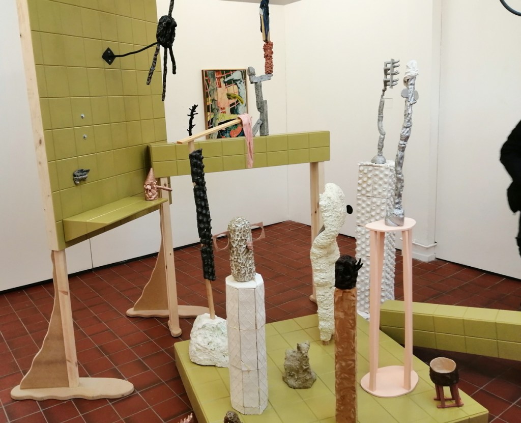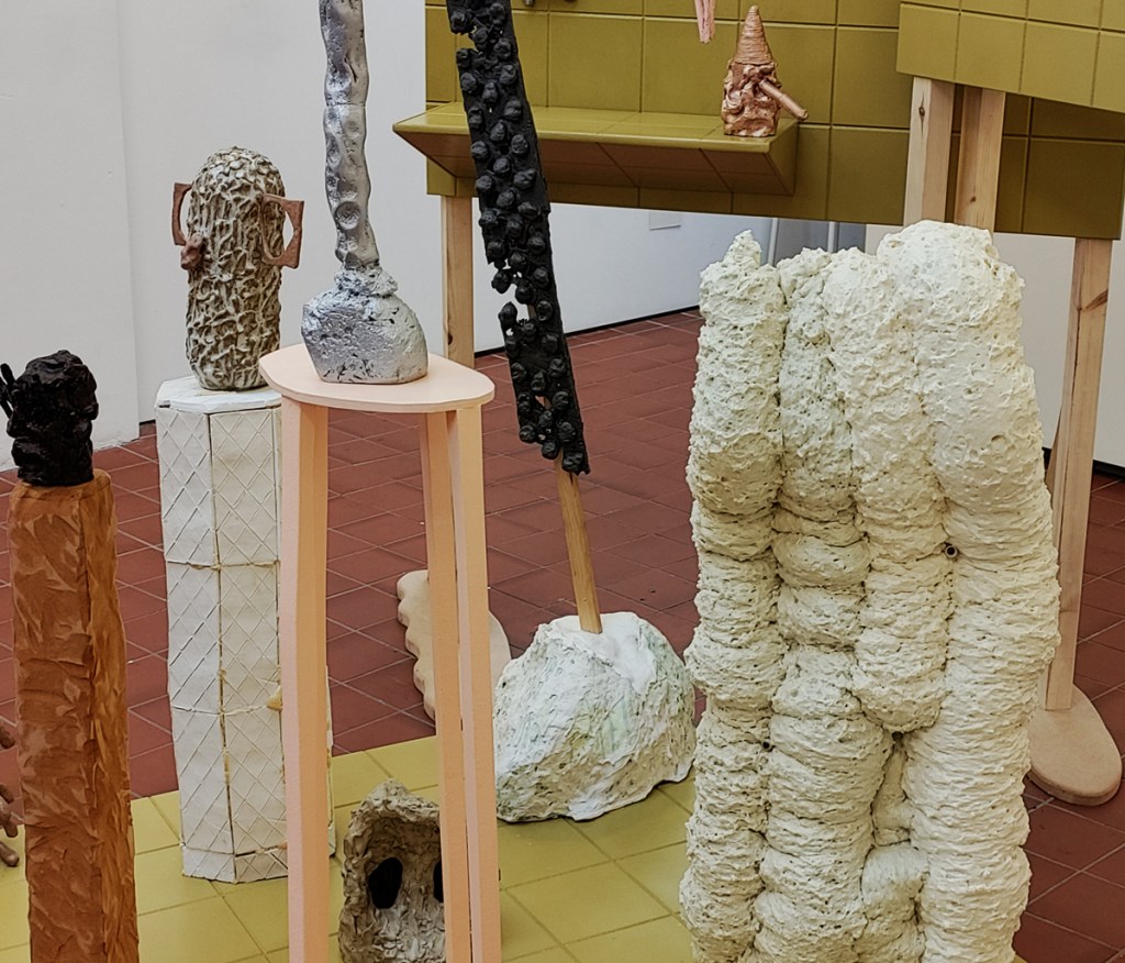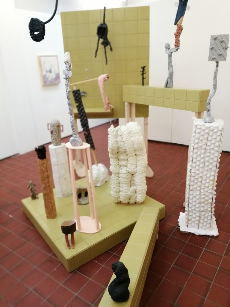 An installation of new assembled metal and ceramic sculpture, collage and painting inspired by the parable of the Golem – “Golem – a being constructed of inanimate material such as dust or earth that frequently ends up being uncontrollable and serving as a metaphor and a cautionary tale against the hubris of man thinking they can create life”.