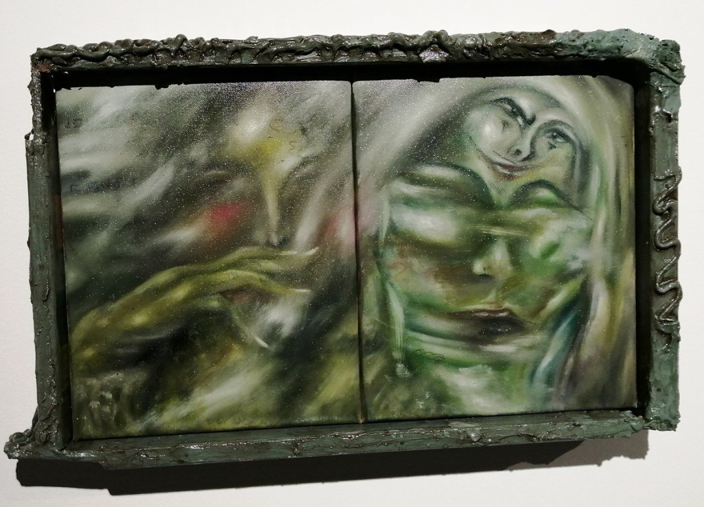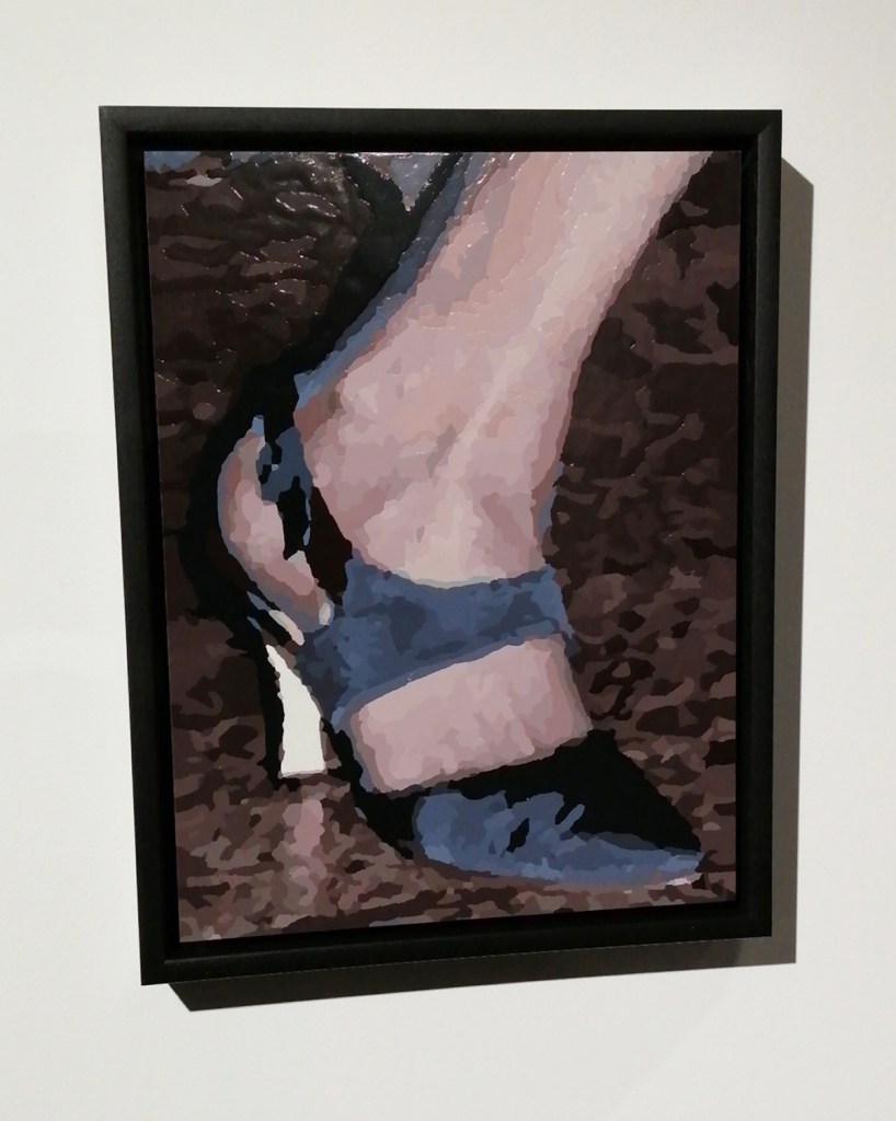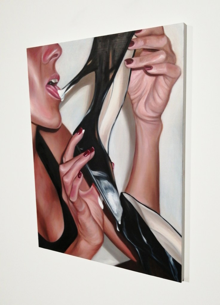 Yes, it is a slightly uncomfortable show in the best of ways, you are challenged as a viewer,(voyeur?). Each piece is given the luxury of space, of white wall, space to breathe, not that it feels like the paintings and pieces would impose on each other in a smaller space, once again the conversations between the works in here are good. No one piece is shouting above the others, there is no battle for attention, it is rather difficult (once again in the best possible way) to pick out a favourite, nothing in here is weak. Are these erotic pieces? they could be? Is it disgust? Does is depend on who ‘s looking or who’s being looked at? It feels very publicly intimate, it feels provoking, it pushes at buttons, at the preconceived notions. The pieces ask questions, Ideas around gender, around behaviour. There certainly a strong collective statement here, something to be devoured, a guilty pleasure? Is it pleasure? is it guilt? is it disgust? Are they wanting to disgust us? Is it disgustingly delicious? There is a collective strength here, each piece demands something, you can’t just politely look, the work demands more of us than just that.
