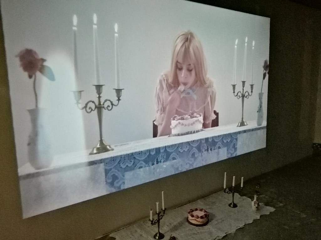 At the end of Věra Chytilová’s 1966 film Daisies the two central characters come across a banquet hall laden with expensive food and rich delicacies. Over the course of a few minutes, the two characters systematically devour the entire table; moving from seat to seat and engorging themselves on the platters of fine foods there. Accompanied by a regalia of grand trumpets, the two women end up frenziedly destroying or consuming every single thing in the bourgeois dining hall. They have decided that, since the world has been spoiled by its obsession with the materialistic and its oppression of women, they will be spoiled too.This scene is central to Guts Gallery’s new exhibition (It’s My Party) I Can Cry If I Want To; a group show of women artists exploring visual motifs around birthdays, hysteria and consumption. This show is a celebration of the ‘grotesque;’ it is a carnivalesque revelry in which women’s bodies are presented as transgressive, unbound and open-ended. Throughout the show, figures luxuriate in their unfixed, metamorphic states. Here, physical and emotional boundaries are destabilised and disrupted; bodies enter the arena of the ‘cosmic’ as they extend beyond their own limits through a process of transformation and consumption.
