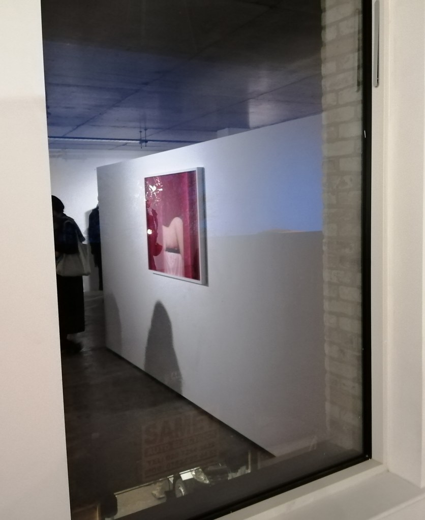 There’s an ambition in here, a boldness, a little bit more thought, an immediate impact as we walk in clutching the party bags handed to us at the door (tissues, in case we cry I assume). The space is big, the ceilings a conventional low, regulation office space, rather than purpose built gallery. I like the way they’ve used it or at least how the space and the rooms are used for this well curated well hung show. A show co-curated by artists Ellie Pennick and Ariane Heloise Hughes.