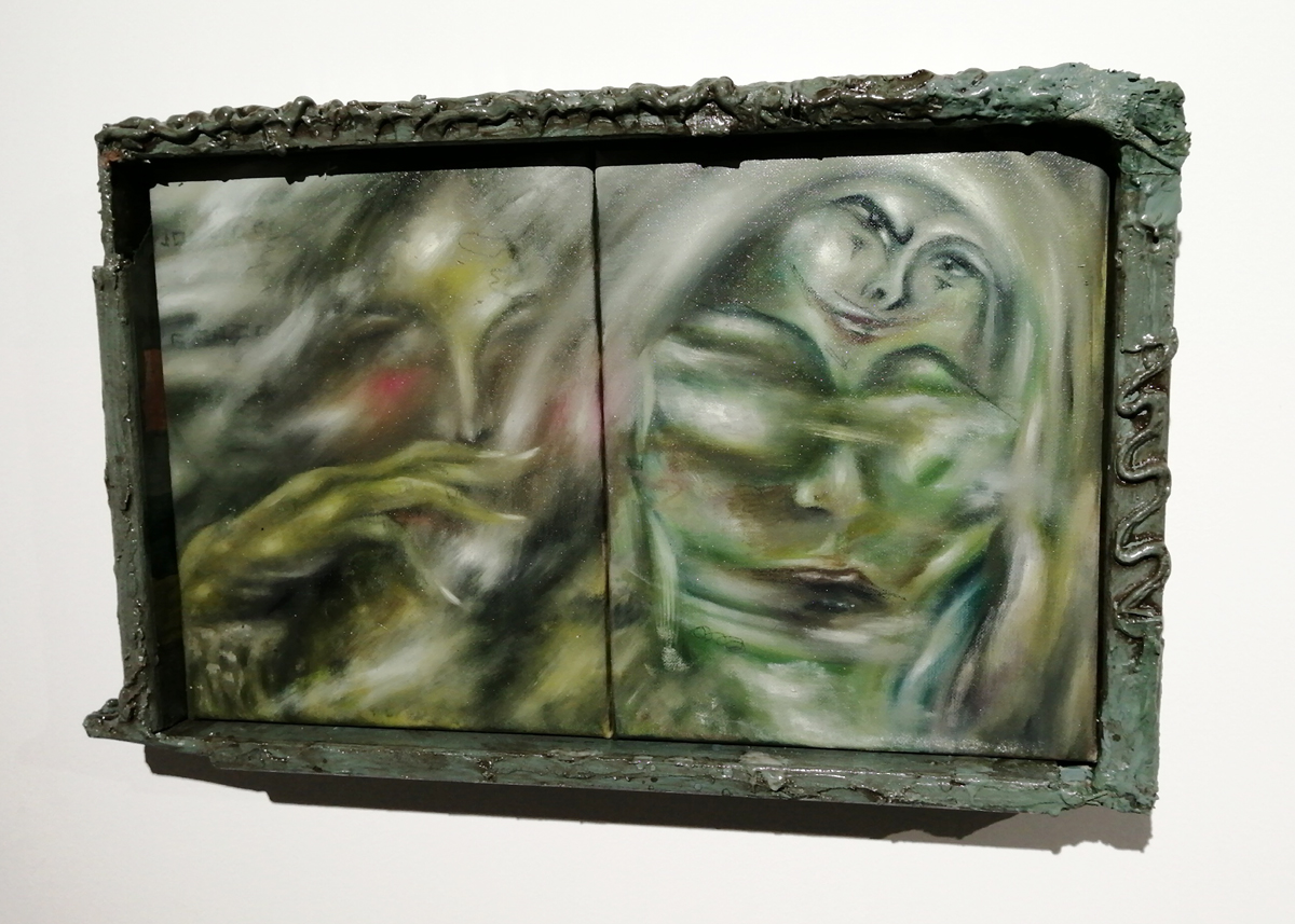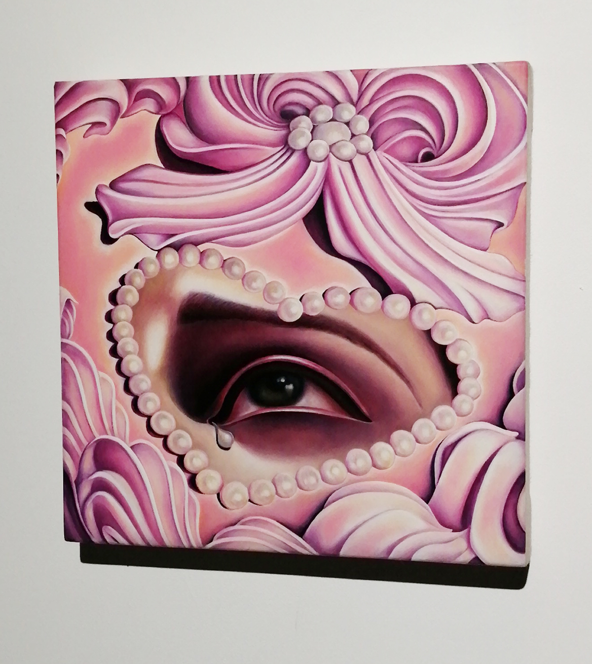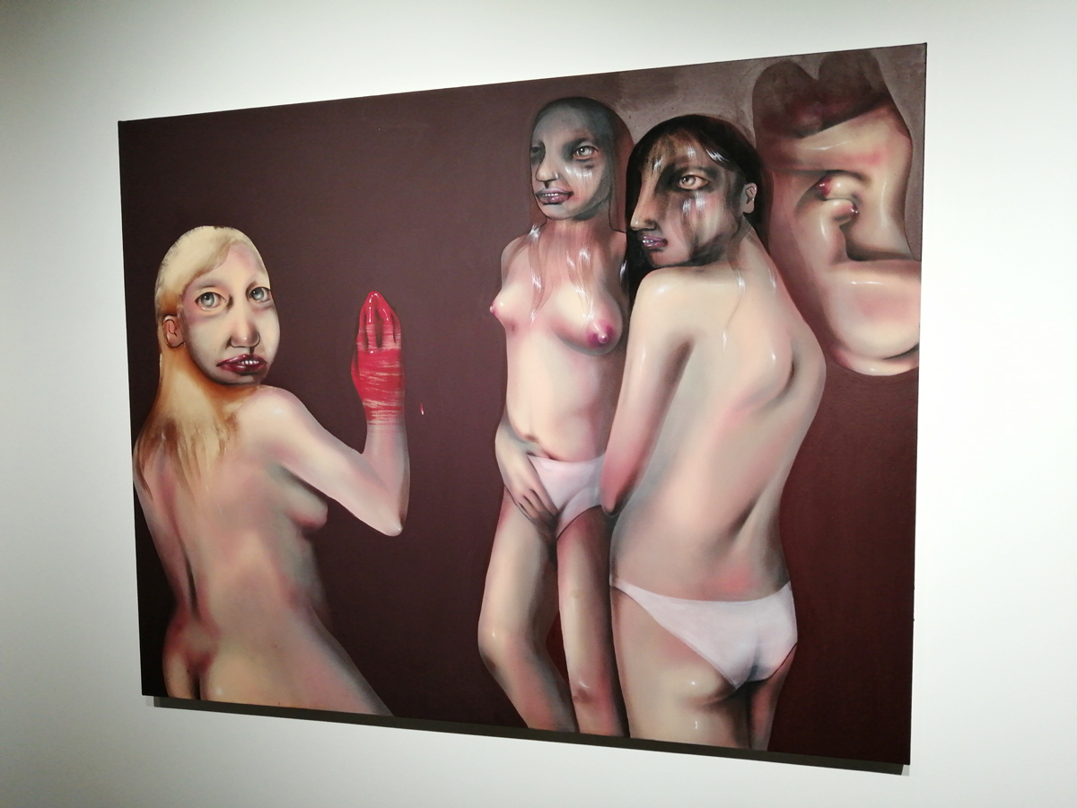 Yes, it is a slightly uncomfortable show in the best of ways, you are challenged as a viewer,(voyeur?). Each piece is given the luxury of space, of white wall, space to breathe, not that it feels like the paintings and pieces would impose on each other in a smaller space, once again the conversations between the works in here are good. No one piece is shouting above the others, there is no battle for attention, it is rather difficult (once again in the best possible way) to pick out a favourite, nothing in here is weak. Are these erotic pieces? they could be? Is it disgust? Does is depend on who ‘s looking or who’s being looked at? It feels very publicly intimate, it feels provoking, it pushes at buttons, at the preconceived notions. The pieces ask questions, Ideas around gender, around behaviour. There certainly a strong collective statement here, something to be devoured, a guilty pleasure? Is it pleasure? is it guilt? is it disgust? Are they wanting to disgust us? Is it disgustingly delicious? There is a collective strength here, each piece demands something, you can’t just politely look, the work demands more of us than just that.
