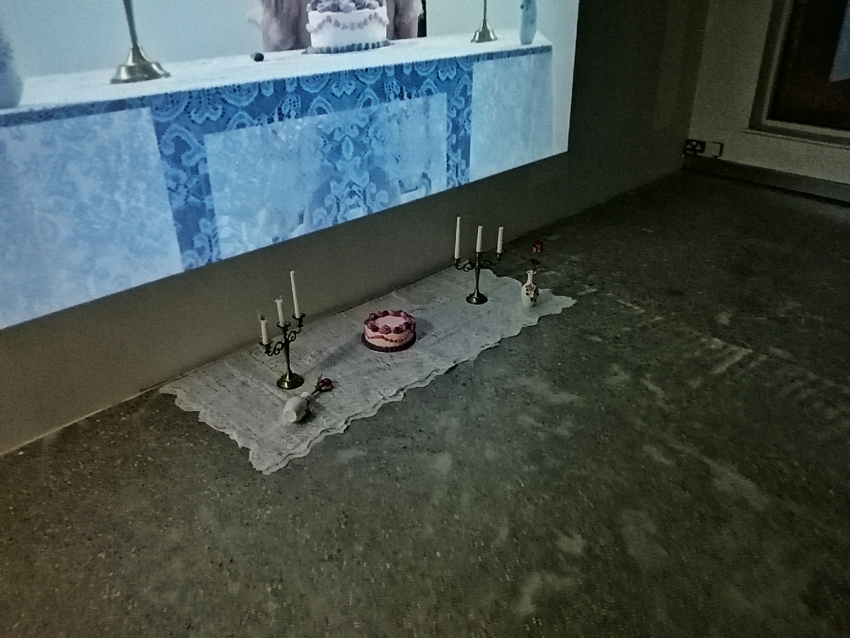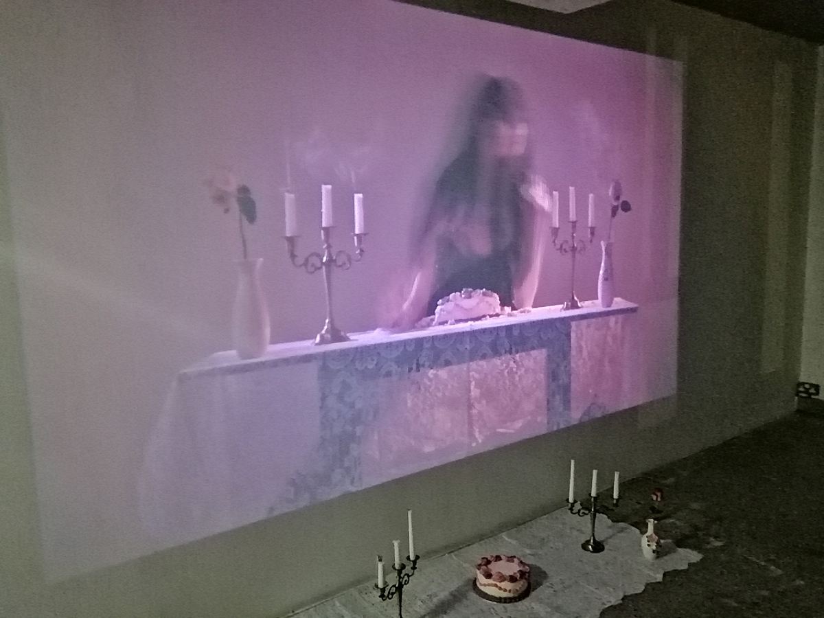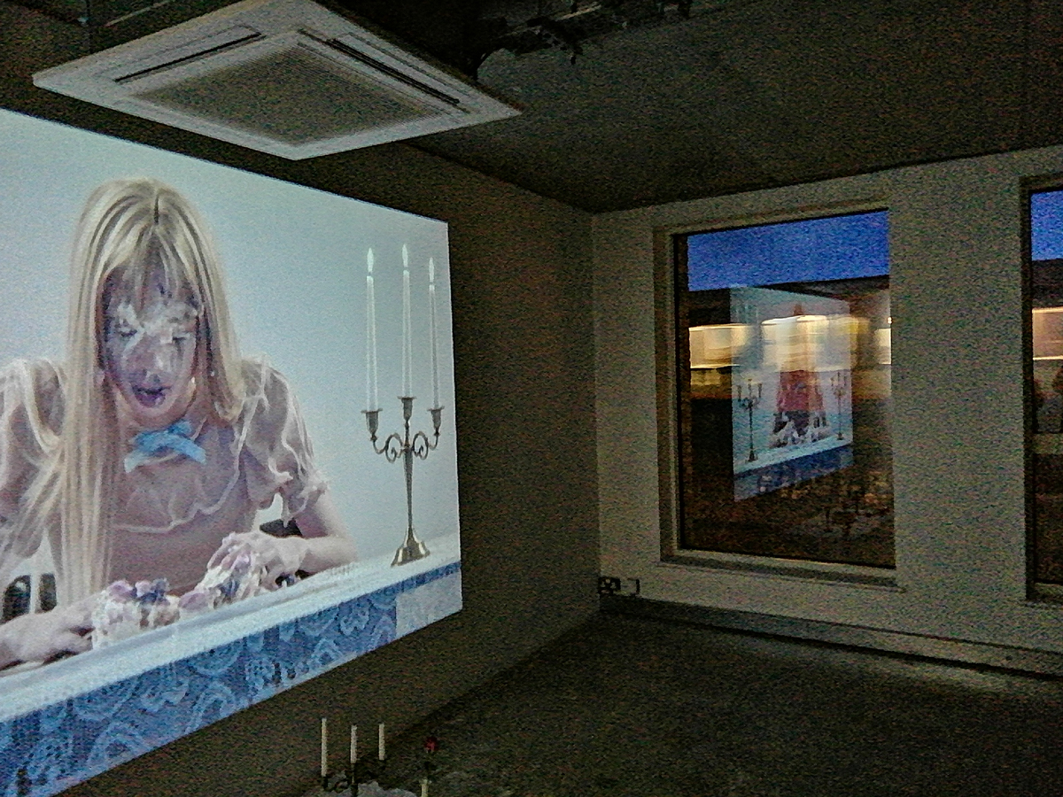 There’s a simply brilliant film in a darkened side room that really does hold the viewer’s fascination, would we like a piece of that cake? – Actually there a train line that runs right outside, and right at the level of the gallery’s big windows, you do hope the passengers are catching a glimpse, that would surely add to the show – and no, I have no idea who made the film or who is performing, and yes i have just tried exploring the gallery’s website – it is an excellent bit of film making though and it is presented so well in the larger than life dark of the space with the actual cake there in the floor in the room in front of us all. That film really is deliciously grotesque, or is it beautifully erotic? And is it uncomfortable to say so? You do almost lust after a handful of cake, is that wrong?