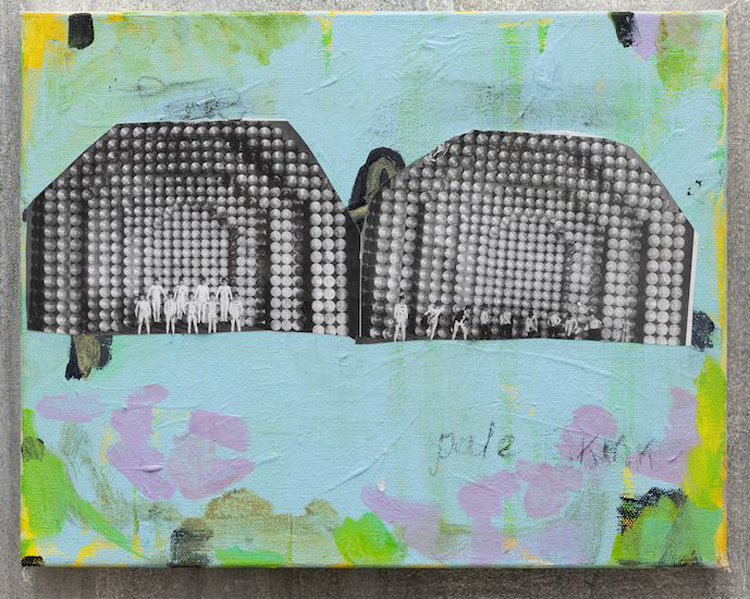 Each painting is intimately connected to Beerman herself and to each other work; elements are attached and reattached, moved from one painting to another, but always leaving something behind. Beerman compares her work to fly paper, as she says “they pick up on things that are going on around them.”. Beerman’s assemblages, which are all worked on simultaneously, are at once a collection of memory as they are a metaphysical transformation of material to painting. She sees her paintings as hyper-personal, often losing track of the boundary between painting and self, as a conversation between herself and her paintings as much as a conversation between the paintings themselves. Beerman playfully describes her paintings’ changing moods and personalities, noting that some days a painting can be feeling “shy” or “in love with another painting,” while two others could be “feuding.”