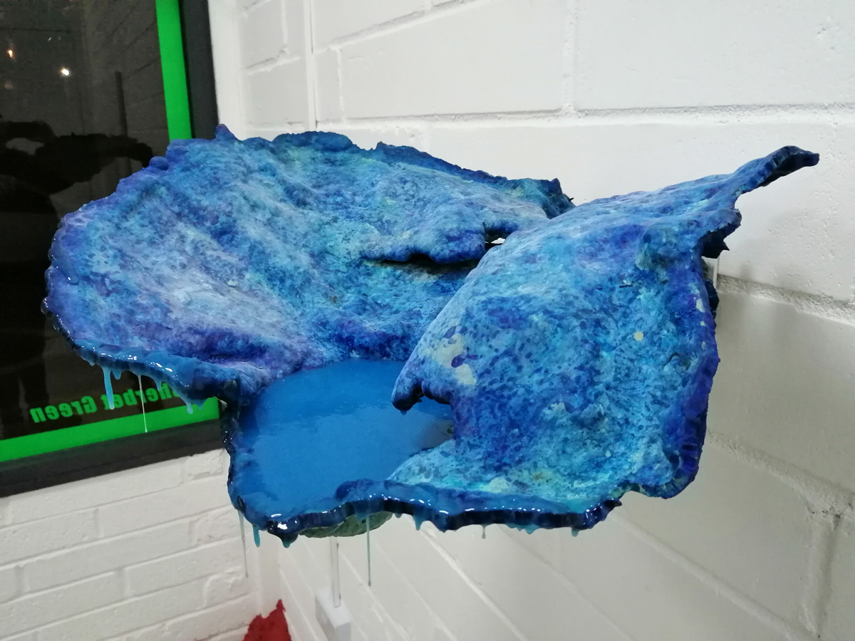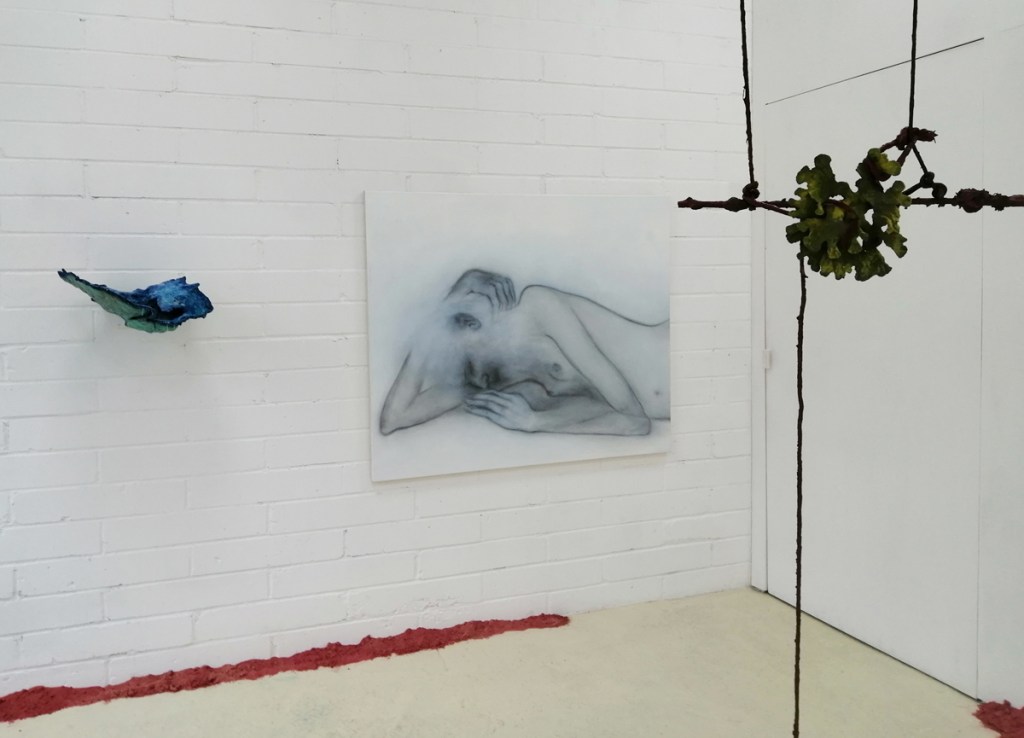The Sherbet Green advance publicity said something like “From the ether, the gentle uncanny. Glimpses seemingly through windows; angelic figures in a state of embrace; stalactites congealing on electric chorals: the phantasmagoric particles of life on earth. A never-ending history of surrealism, modernised and mechanised…..” – Nah, not really getting any of that. What I got was a conventionally hung, politely presented set of well, of what? There’s a couple of nice enough paintings, there’s something hanging there in the middle of it all, the red bits around the edges where the wall meets the floor pulls the room together in some way. I did go back a few days later, I really really wanted to get something more than a need to be polite and say “yeah it was alright”. It was alright, it was a decent enough show, but hey, all the on-line hype and the self-congratulation and the self-importance and the art school BS and the emperor’s clothing and well can I really be bothered with it all? Oh it isn’t you, it really is me, am I finally falling out of love with art shows and clapping with one hand? I have been back since that opening day. The show is alright,the art is alright, you do wonder what what a couple of the artists will l do next? A couple of names noted and yes. the art is a lot lot more rewarding than some of the things encountered in January of this still new year, in some of the shows not mentioned here but where’s the “wow”? Where’s the art gasp? I mean give me Sherbet Green over the “stuff” galleries like Maddox any day of the freezing cold January week and yes we should be celebrating places like Guts and that one over in Deptford but they are feeling like one set of gatekeepers replaced by yet another set and still I sit on all this and still don’t bother posting any of it and yes the Sherbet Green show is far more rewarding that most that I haven’t even bothered mentioning here and if we didn’t care then it wouldn’t be said in this piece, but I am starting to think that maybe I don’t care any more and I should just ignore it all completely like we have a number of other shows we’ve been to the first month of this still new year and oh I detest these art school attitudes and sudden conformity and by-the-book of it all. Maybe I really should just stop writing about all this art?