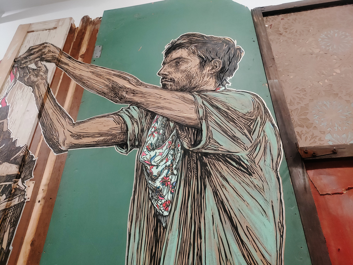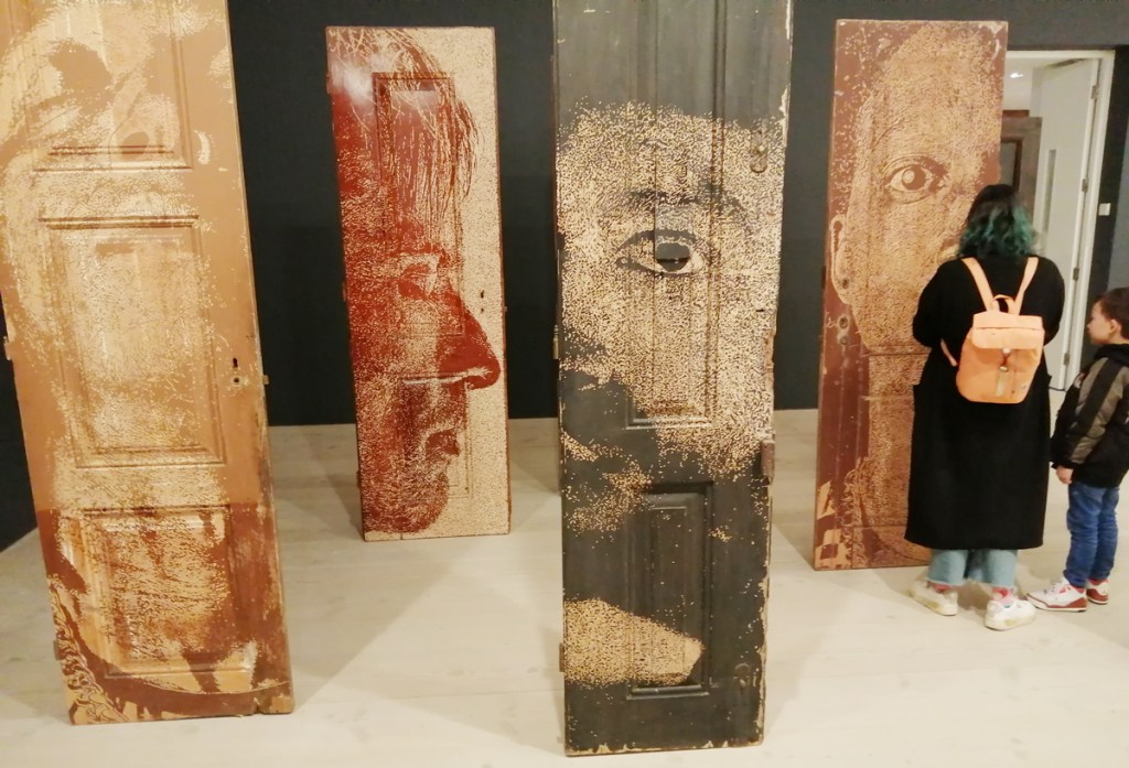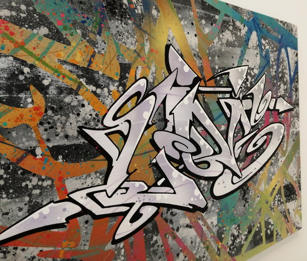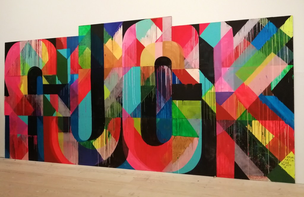And I love the energy and the quality of the marks made by Jason Revok, another 2022 piece (didn’t know his name was Jason!), I could spend hours just looking at just that one Revok piece, it looks like nothing yet there’s so so much there in those marks on the canvas and the way they’re made, the way the marks are placed. So many great pieces in here, so much to enjoy, to drink in, to celebrate, so let’s ignore the rooms at the end and the holes and the moaning about this or that not being here! This is a fine fine show, and yes, if you can afford it, then one not to be missed, feel like we’ve only scratch the surface with this review, let’s go round again, did I mention how good those VHILS doors are? or the Guerilla Girls? Or those Katsu Paintings? Damn good show, thanks Roger Gastman and team, a must see even if the bloody Clash feature way too damn much. (sw)