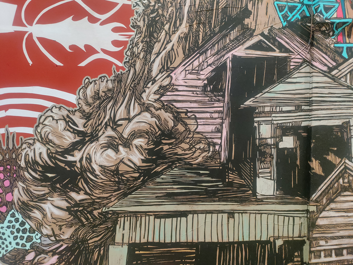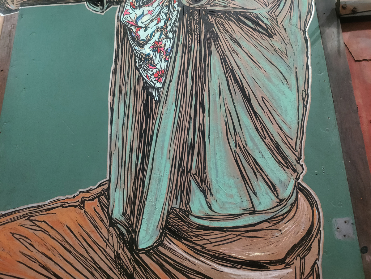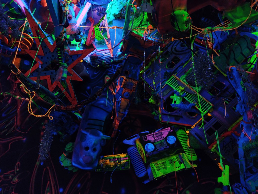 And I love the energy and the quality of the marks made by Jason Revok, another 2022 piece (didn’t know his name was Jason!), I could spend hours just looking at just that one Revok piece, it looks like nothing yet there’s so so much there in those marks on the canvas and the way they’re made, the way the marks are placed. So many great pieces in here, so much to enjoy, to drink in, to celebrate, so let’s ignore the rooms at the end and the holes and the moaning about this or that not being here! This is a fine fine show, and yes, if you can afford it, then one not to be missed, feel like we’ve only scratch the surface with this review, let’s go round again, did I mention how good those VHILS doors are? or the Guerilla Girls? Or those Katsu Paintings? Damn good show, thanks Roger Gastman and team, a must see even if the bloody Clash feature way too damn much. (sw)