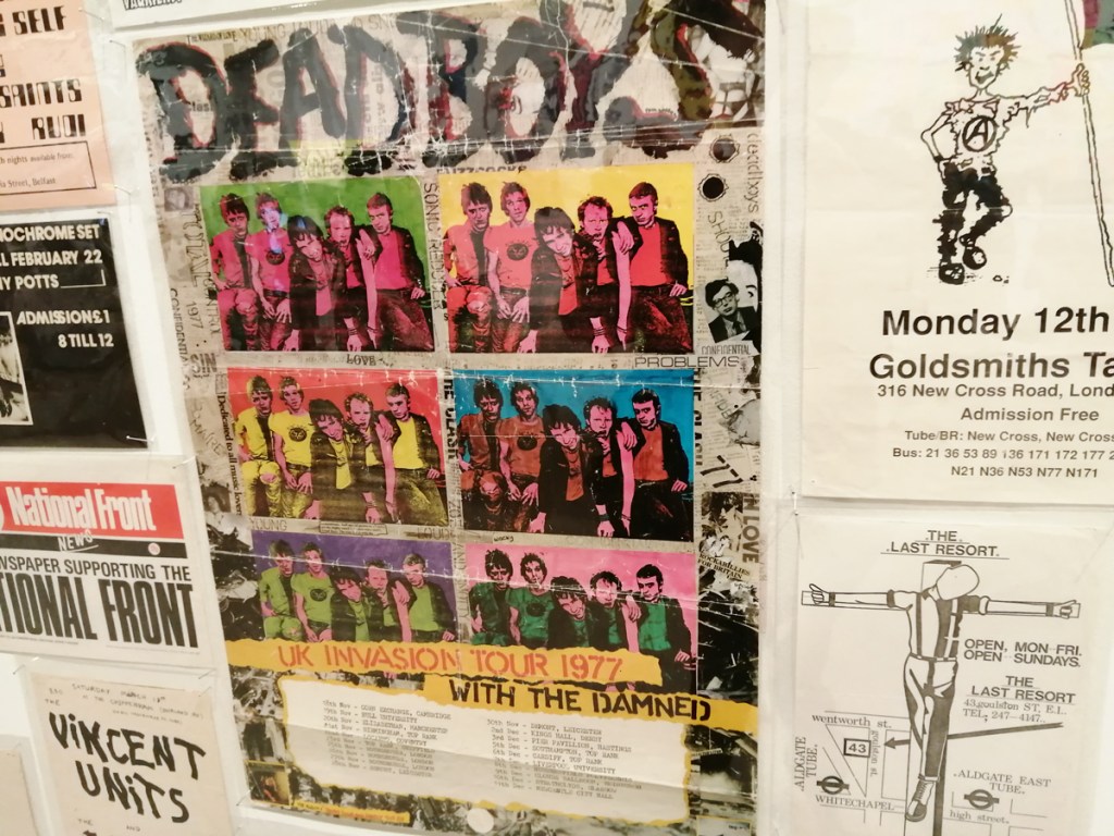 It is all a bit London centric of course, that and American, there was a lot going on back there in other cities, good to see some of the Birmingham/Wolverhampton history, it wasn’t just Covent Garden, talking of which, if you’re going to have “Clapton is God” on the gallery wall then you surely need “Astle is King”? Wolves fans won’t like it being said, but that was the most famous bit of graffiti in England back then – large letters on the bridge, over the canal, Netherton, heart of the Black Country, celebrating West Brom’s centre forward. Hey look, I swore I wouldn’t hole pick and go on about this or that not being in here, we’ll be asking where the Under Fives are next or about that time Vins and Eva went home and tagged the Eiffel Tower. And sure, there is a sad irony in the Vivienne Westwood shop bits being in here and not on the rather depressingly bland Kings Road itself now but let’s not moan like some boring old fart about how it was back there and you kids know nothing and I once saw the Pistols down the ‘undred club now then now then. Preposterous tales and rather like how it is in here, I might be hole picking but I do like this show lots and lots