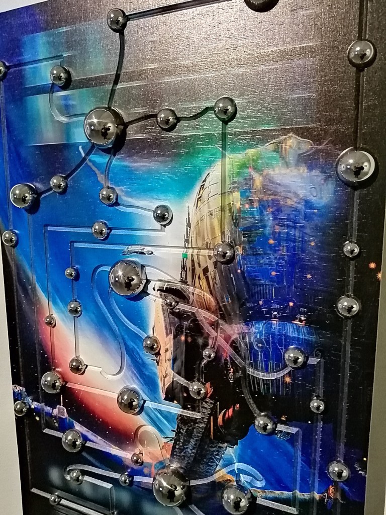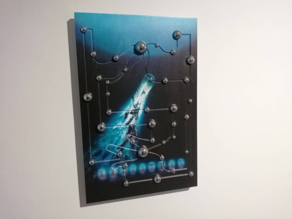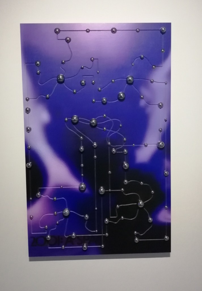 George Henry Longly, Microgravities at Nicoletti – Caught this one last weekend, been meaning to say something, something to do with an increasingly misguided loyalty to an increasingly fractured East London Art Scene and the feeling that it surely is still worth the time and effort taken to cover it? “Microgravities is a solo exhibition by George Henry Longly, in which the artist presents a new body of work including sculptures and video that explores life in space”, Nicoletti, is a more than decent art space, a good place to go see an art exhibition, the last art space on Vyner Street (blah blah, not again, blah blah, shut up about bloody Vyner Street!). The aforementioned sculptures are more richly-coloured wall-based, 3d paintings or 3d pieces as much as they’re sculptures, there’s some playing about with mirrors and reflections on the floor. The gallery space is used well actually, that moon reflected on the grey gallery floor works rather well, a mirror in the middle of a large piece on the Gallery’s back wall (they always use the reflections and the shadows well in this space). The pieces on the wall are, if I overheard it correctly, referencing various blockbuster Science Fiction films that mean very little to me, there’s an impressively big version of a patch that I do believe is designed for and being used on the the International Space Station, quite a thing if I heard that bit right, something to think about it when next it goes over – the on-line tracker says it flies over Hackney at 4am this coming Saturday morning, it really is something quite spectacular when you see it up there, and if you point it out to a passer by they look at you in disbelief, “nah mate, that’s just a plane, what are you on?”.