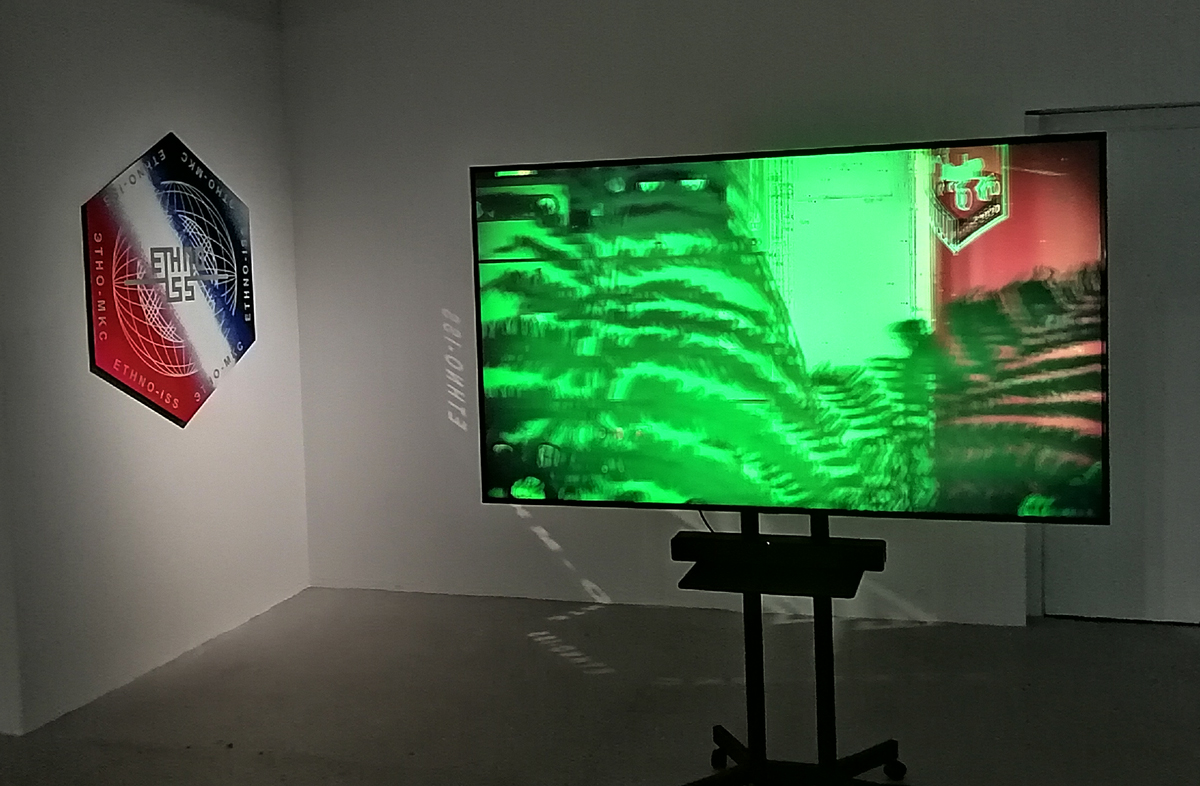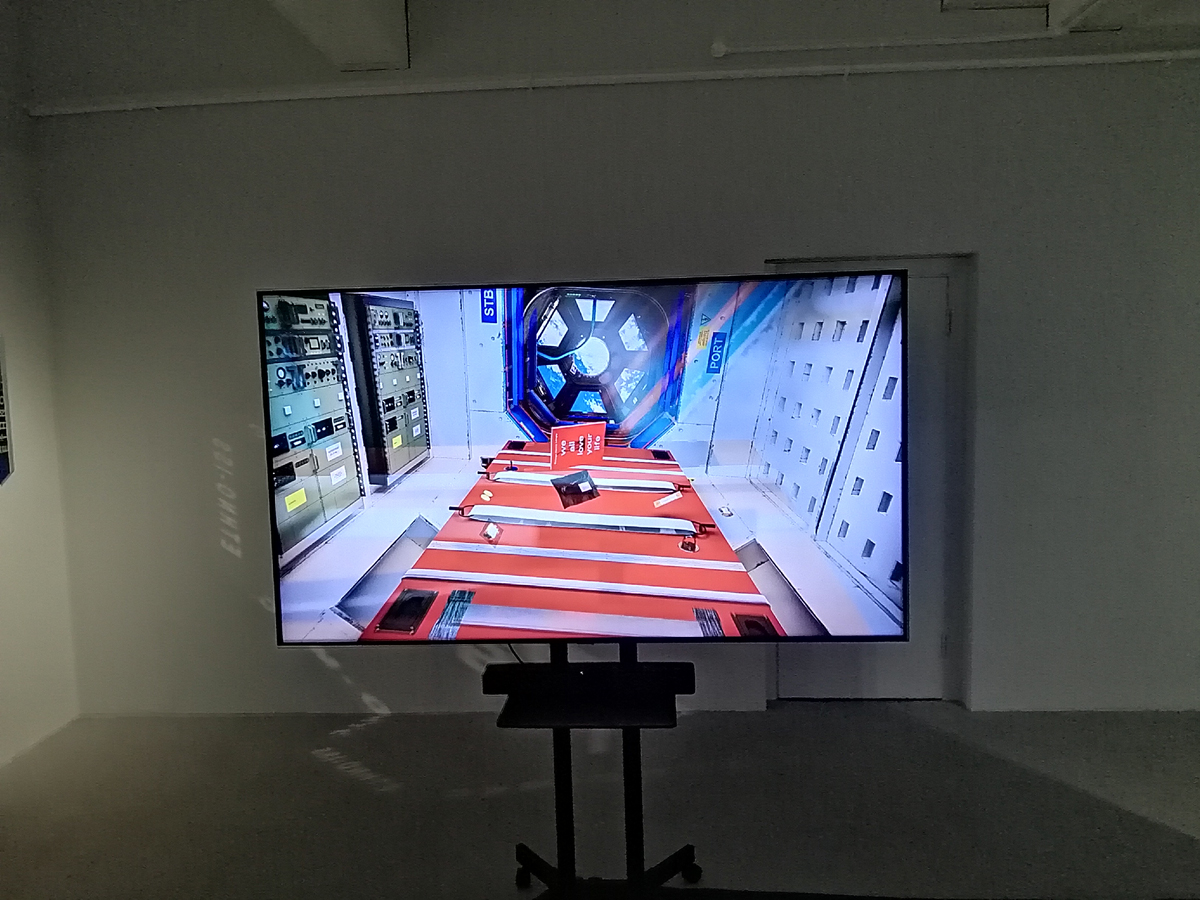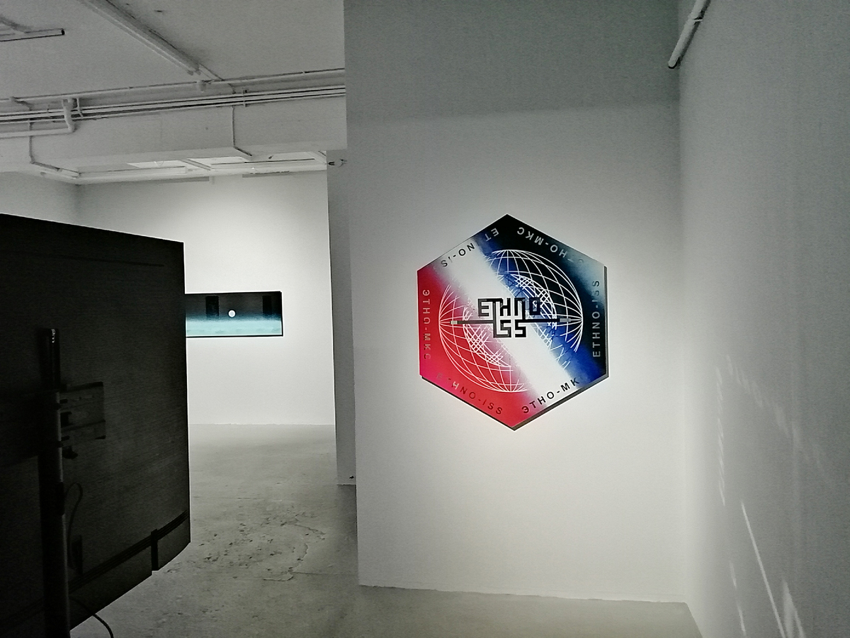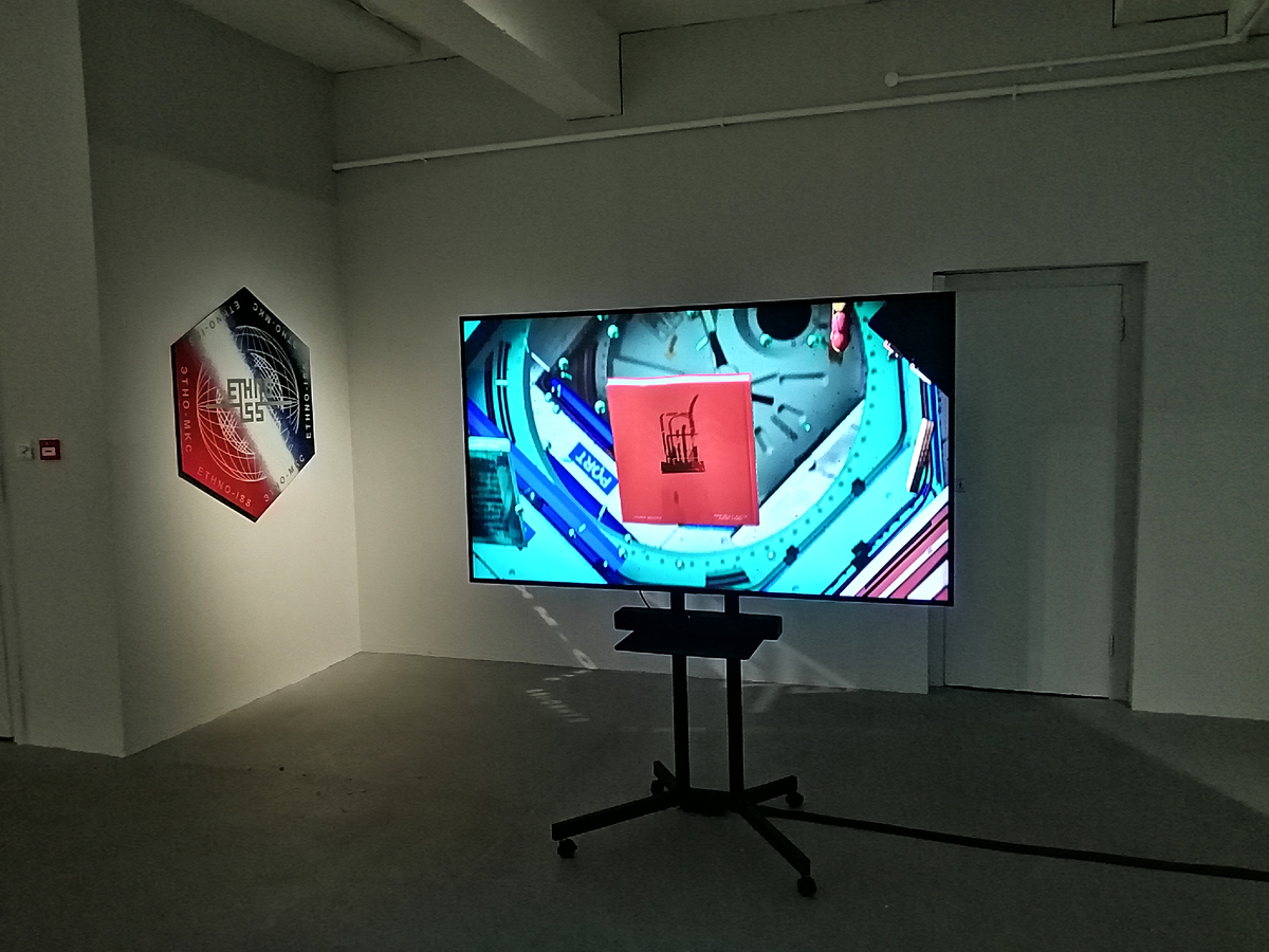 George Henry Longly, Microgravities at Nicoletti – Caught this one last weekend, been meaning to say something, something to do with an increasingly misguided loyalty to an increasingly fractured East London Art Scene and the feeling that it surely is still worth the time and effort taken to cover it? “Microgravities is a solo exhibition by George Henry Longly, in which the artist presents a new body of work including sculptures and video that explores life in space”, Nicoletti, is a more than decent art space, a good place to go see an art exhibition, the last art space on Vyner Street (blah blah, not again, blah blah, shut up about bloody Vyner Street!). The aforementioned sculptures are more richly-coloured wall-based, 3d paintings or 3d pieces as much as they’re sculptures, there’s some playing about with mirrors and reflections on the floor. The gallery space is used well actually, that moon reflected on the grey gallery floor works rather well, a mirror in the middle of a large piece on the Gallery’s back wall (they always use the reflections and the shadows well in this space). The pieces on the wall are, if I overheard it correctly, referencing various blockbuster Science Fiction films that mean very little to me, there’s an impressively big version of a patch that I do believe is designed for and being used on the the International Space Station, quite a thing if I heard that bit right, something to think about it when next it goes over – the on-line tracker says it flies over Hackney at 4am this coming Saturday morning, it really is something quite spectacular when you see it up there, and if you point it out to a passer by they look at you in disbelief, “nah mate, that’s just a plane, what are you on?”.