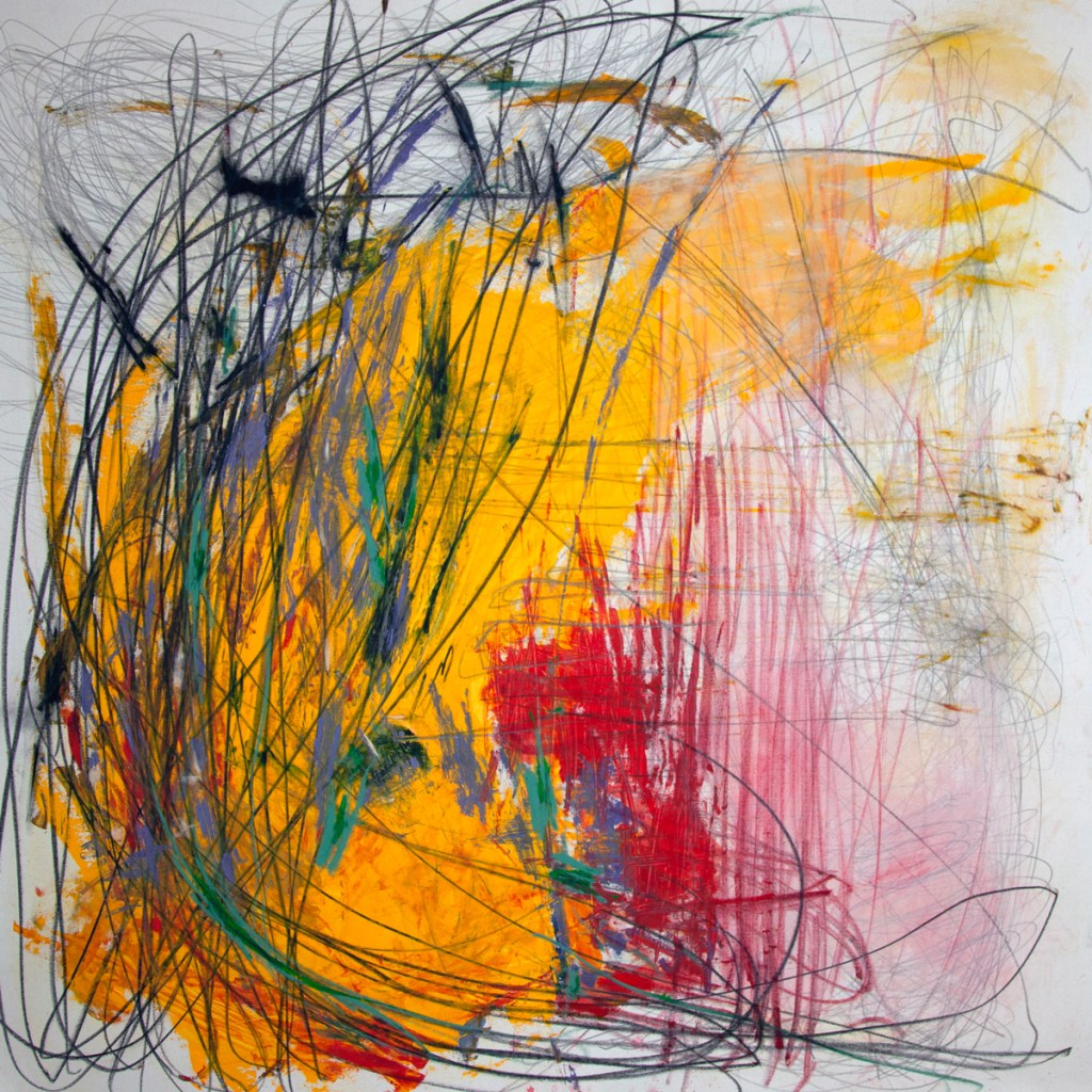 Melike is a rather exciting painter, a rather pro-active mixed media artist, born in Samsun, Turkey, in 1980, an artist now firmly based in Istanbul. We’ve been aware of Melike and her work since March 2021 when she first took part in one of our Cultivate online group shows (can’t recall if she contacted us first or if we found her, however it happened, since that first show,we’ve featured her painting, her photography, her drawing, performance or her mixed media composition in a number of group shows. Indeed we’ve invited Melike to take part in every single Cultivate group show since the first one she took part in some two years ago. We like the marks Melike makes, we like her commitment, the energy in her art, the way she makes her art, the mystery in her art, the movement, we like the sound we see in her bold marks, we like the space she occupies, the questions she throws out as an artist