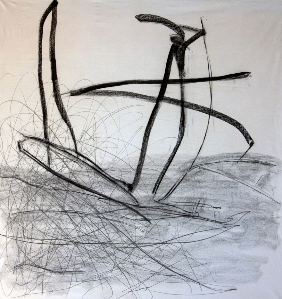 A multi-disciplinary artist driven by process, Stevenson continues her studied investigations into materials and supports in The Circling Deeps. Embracing oil for its soft, mud-like consistency and fleshy finish, she manoeuvres the paint with slashes and smudges, zigzagging across the canvas as if navigating through the ridges and banks of marsh creeks. The layers and palimpsests result in perspectival warps and twisting horizons, offering a perplexing terrain for the eye to roam. The artist applies these frenetic marks in the raw tones of Goya’s palette, with deep umbers, scarlets, violets, and phthalo blue. Buoyed by the visual and emotional vernacular encountered in London, Madrid, and Norfolk, Stevenson presents a dichotomy of hope and darkness, scratching the luminous surfaces of her resplendent and meandering landscapes.