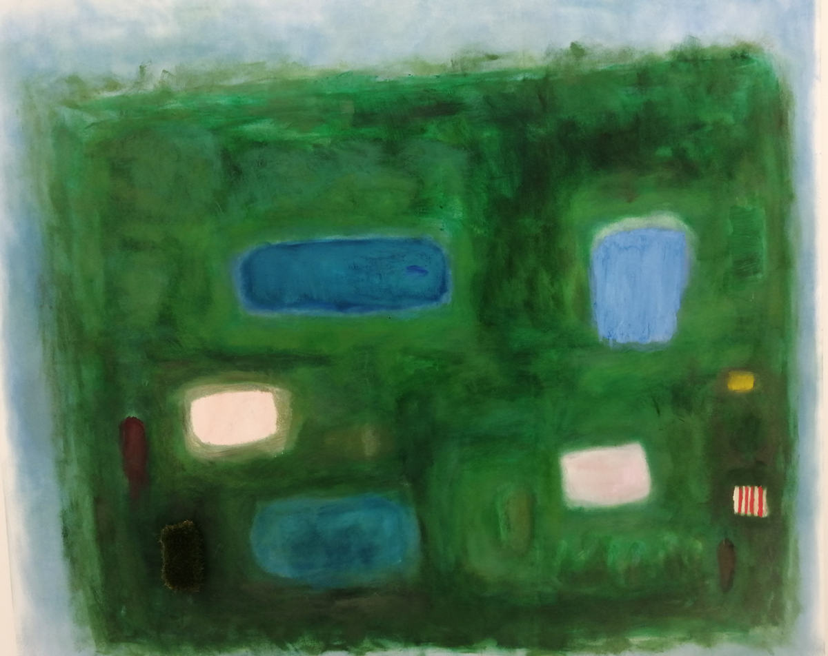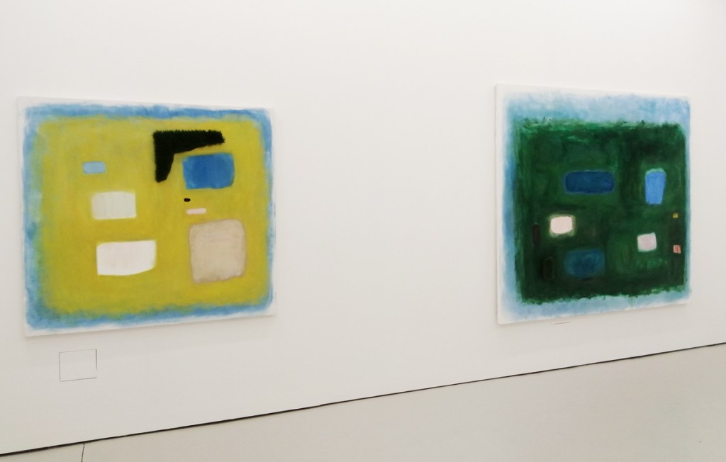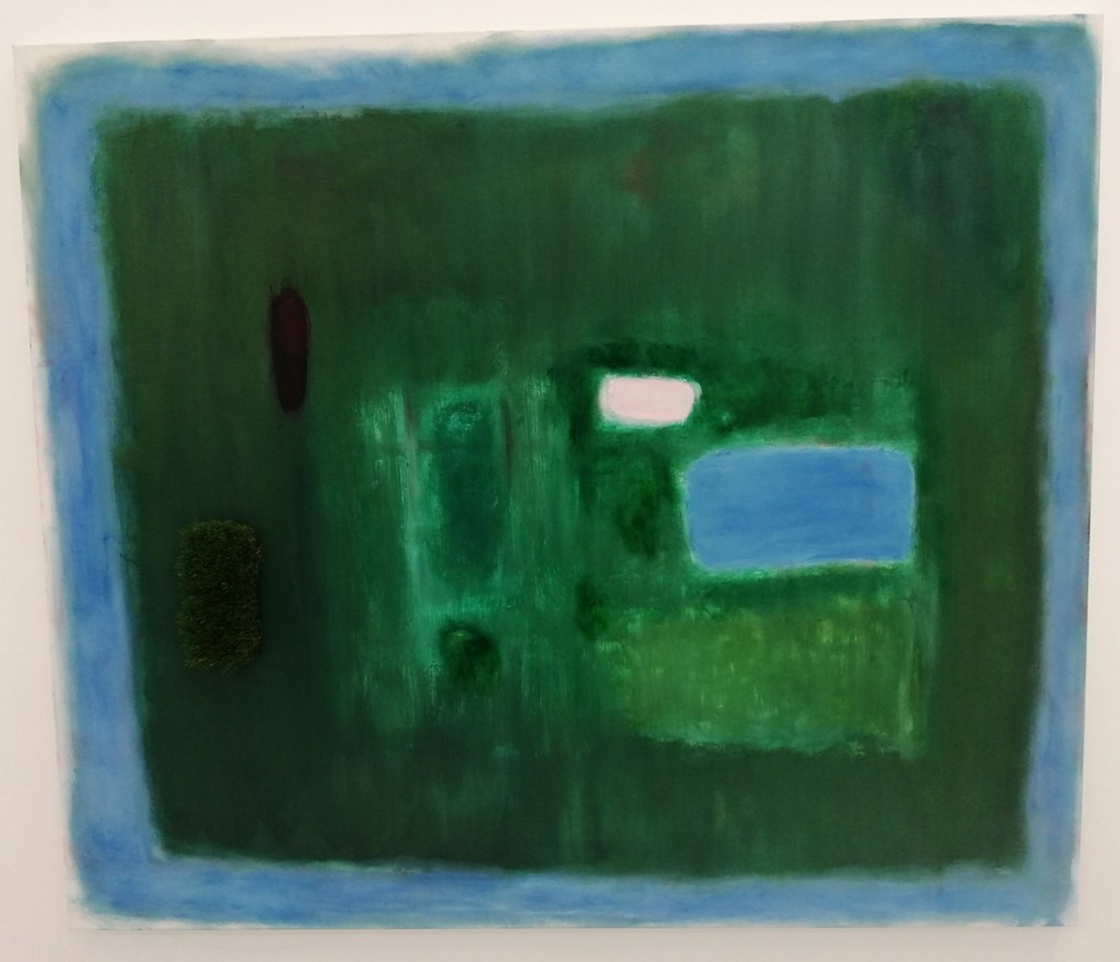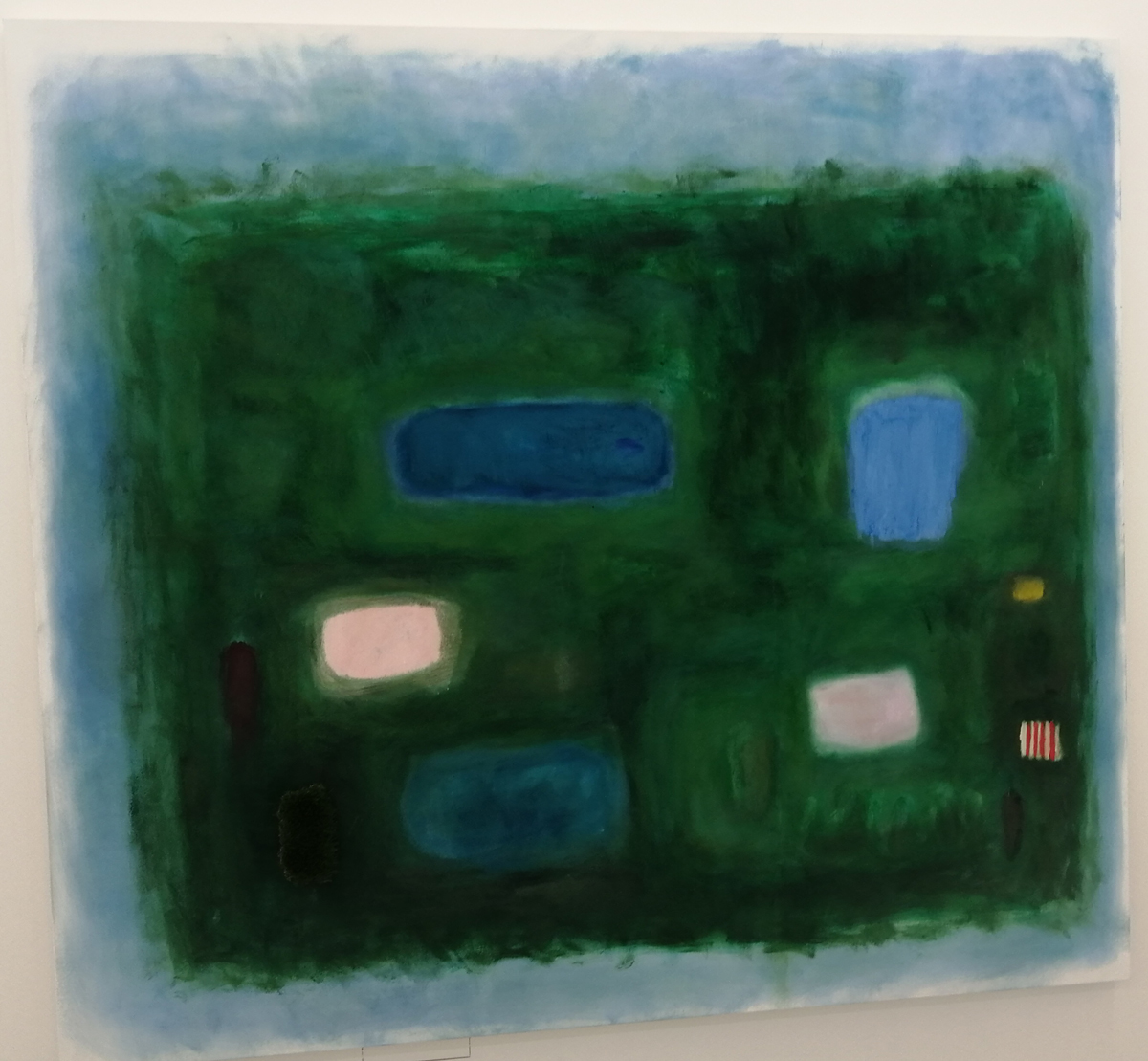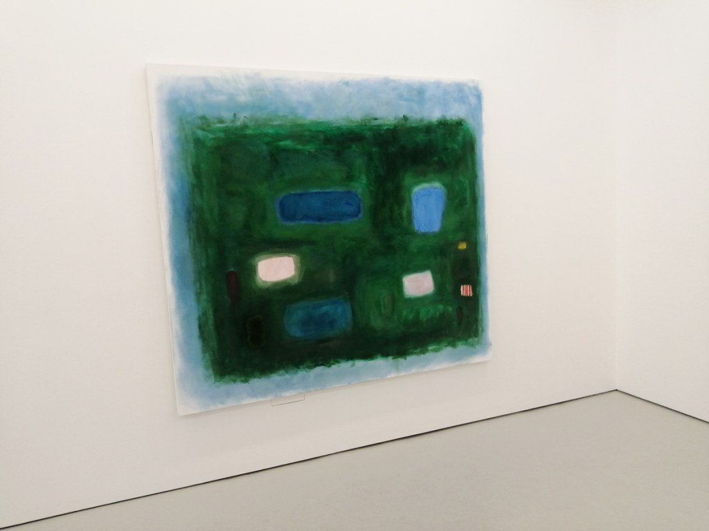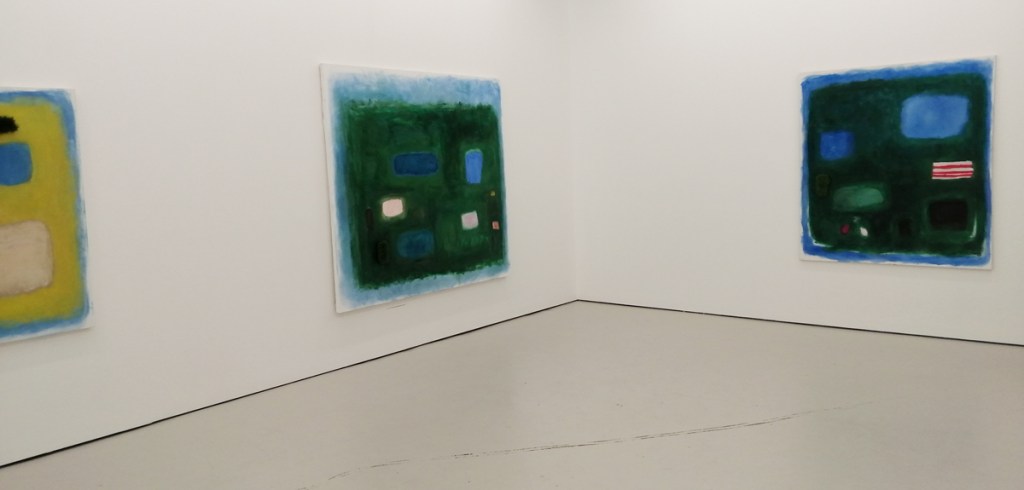 Juliette Sturlèse, born in 1989, is, in these terms, a relatively old school artist. Sturlèse is a proper painter, her paint is subtle, a touch sensual, kind of subdued and at the same time bright, playful maybe? That bit of artificial turf that you don’t really notice as first, the light-hearted mention of a mouse. The paintings are subtle, not sure how much of the “freshly cut summertime grass” or the “wet soil underfoot” (that the gallery statement talks of) I’m actually sensing, not sure if her “deftly manipulated colour and light to channel subconscious sensory experience” is really working for me? I’m really wanting to connect, really trying to engage with what are essentially gentle paintings, trying to find something in the greens, the greys, the pale pinks and blues, in the abstract forms that are kind of hinting at something like landscape. I don’t know? I do like it, I think I like it? I think I like these paintings. And I do like this space, I like the hang, the curation, the gallery and yes I would say Juliette Sturlèse’s paintings are more than worth your time, that the photos, neither ours here on this page or the gallery’s own (on their website), tell you little and do little her justice. It certainly is worth you going. I’m just not that excited, the work isn’t quite grabbing me personally, she isn’t quite igniting me. Yes, it does feel kind of nice in here surrounded by them, but nice is never really much in terms of art, nice isn’t really enough here is it? I am trying, I’m spinning around, and crossing the room, back and forth, I’m not sure if I’m really feeling that little mouse that was supposedly playfully running through the grass, not sure Juliette Sturlèse’s paintings are really doing that much for me? I’m not sure? i would say go though.
