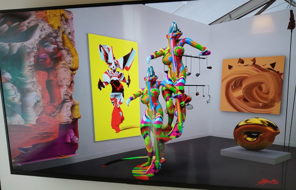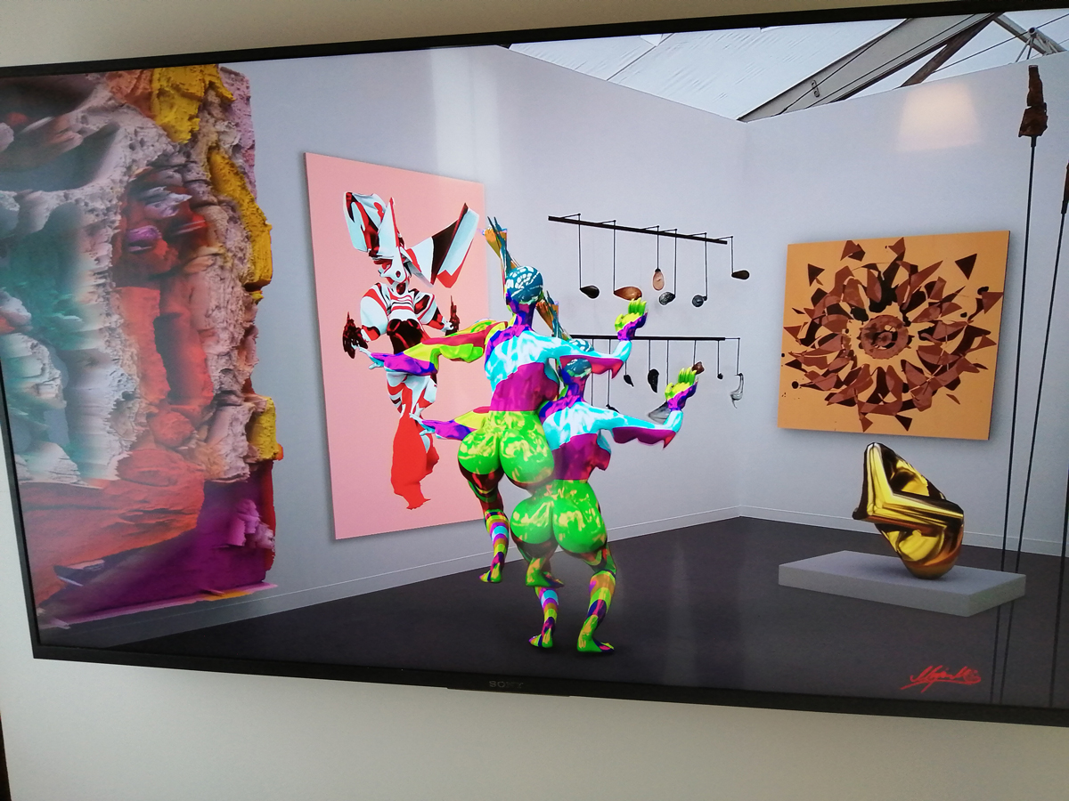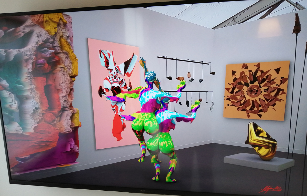 “Since 2016, the Iran-born digital artist Marjan Moghaddam has developed #Arthacks, a mixed-reality series expanding on the power and poetics of the glitch within the global art economy. Building on the artist’s decades-long practice that integrates world-building and digital embodiment, #Arthacks takes aim at the financial heart of the art world: its fairs. Devised in real time within the three-day framework of each fair, Moghaddam’s #Arthacks are made visible through augmented reality (AR) technologies. The technicoloured anthropomorphic beings disrupt the logics of the art world through their feminist and activist interventions”.