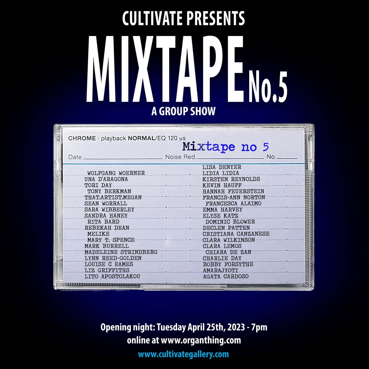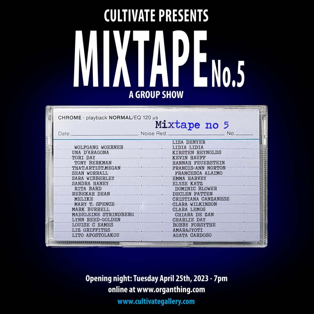 This one final Mixtape show will open this coming Tuesday evening, Tuesday 25th April, at 7pm (UK time), the exhibition will once again be hosted on Cultivate’s Sister website and home of Organ magazine, and as always, once an online show opens we don’t close it (youcan explore te previous 31 onlineshows via this page on the Organ website). Yes indeed, blowing our own trumpets again, Cultivate and Organ is created or curated by the same team.
