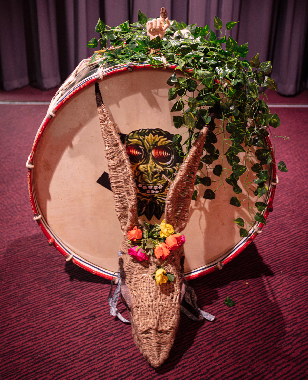 And then, with no real fanfare, no big introduction, and big band, an ensemble, a big base drum centre stage, flowers in hair, and then, with very little ceremony, we’re treated to a live performance of the excellent Wicker Man soundtrack, music performed by the specially-assembled Summerisle Stramash Ensemble featuring Jon and Bobbie Seagroatt (Comus), David Colohon (United Bible Studies), Alison O’Donnell (United Bible Studies/Mellow Candle), Jem Finer (Local Psycho/The Pogues/Longplayer), Joolie Woods (Current 93/The Mekons) and Alasdair Roberts, with vocals from the original soundtrack singer Lesley “Daisy” Mackie. The soundtrack itself has as much of a cult following as the film itself, tonight the pieces are performed with little fuss or bother, just the pieces, very little else is required, no talking, no introductions, no visuals save for a large backdrop image. We might have expected the film to be running in the background or some kind of performance but no, nothing like that was needed. The pieces are played with a wonderful spirit, they weren’t too tight, it feels right that they’re not “perfect”, not over rehearsed, that the songs and the pieces are played with a charm, that the excellently named Summerisle Stramash Ensemble kind of felt like a band does on the first night of a tour – it felt like a glorious labour of love, a joy, a privilege