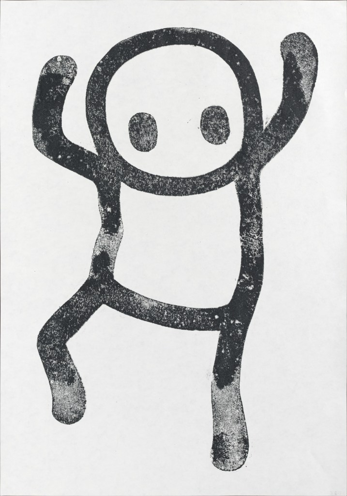 The auction, so we’re told “is a unique opportunity to purchase the only set of artist’s-proofs, made by the artist during the Stamp event at the Southbank Centre. Signed and numbered by Stik, each print is additionally marked with the studio insignia. The prints were made by stamping on hand-carved life-size rubber stamps, which were later destroyed. These six prints form part of an animation, which along with images of the prints made at the children’s workshop, were premiered at Glastonbury Festival in June 2023. They will be offered as a framed set with a low estimate of £15,000 at Christie’s in London as part of the Post-War and Contemporary Art Day Sale on Thursday 29 June”. Follow the auction here