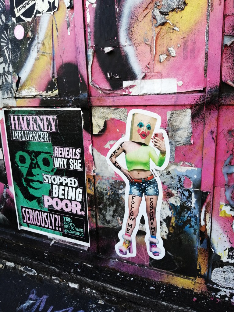 And just a little further up the street, around the corner and up the Hackney Road, past a Bag Lady and past Sherbet Green and the industrial estate where the rather rewarding Annka Kultys Gallery hides itself now, past that short lived space The Split gallery occupied until they took their bad attitude and their Instagram reels (as their only form of communication) to the Roman Road, up the Hackney Road to where once there was a gloriously large Stik guarding the entrance to the borough and where we now find one of those new builds and the once full-of-life artist studios all gone, replaced by one of those nightmarish Amazon shop things that people are sleepwalking into without any kind of a hint of a question. Up the Hackney Road and into Hoxton and Moosey’s fast expanding empire (so fast they don’t even mention this new month-long show or the space itself on their website).