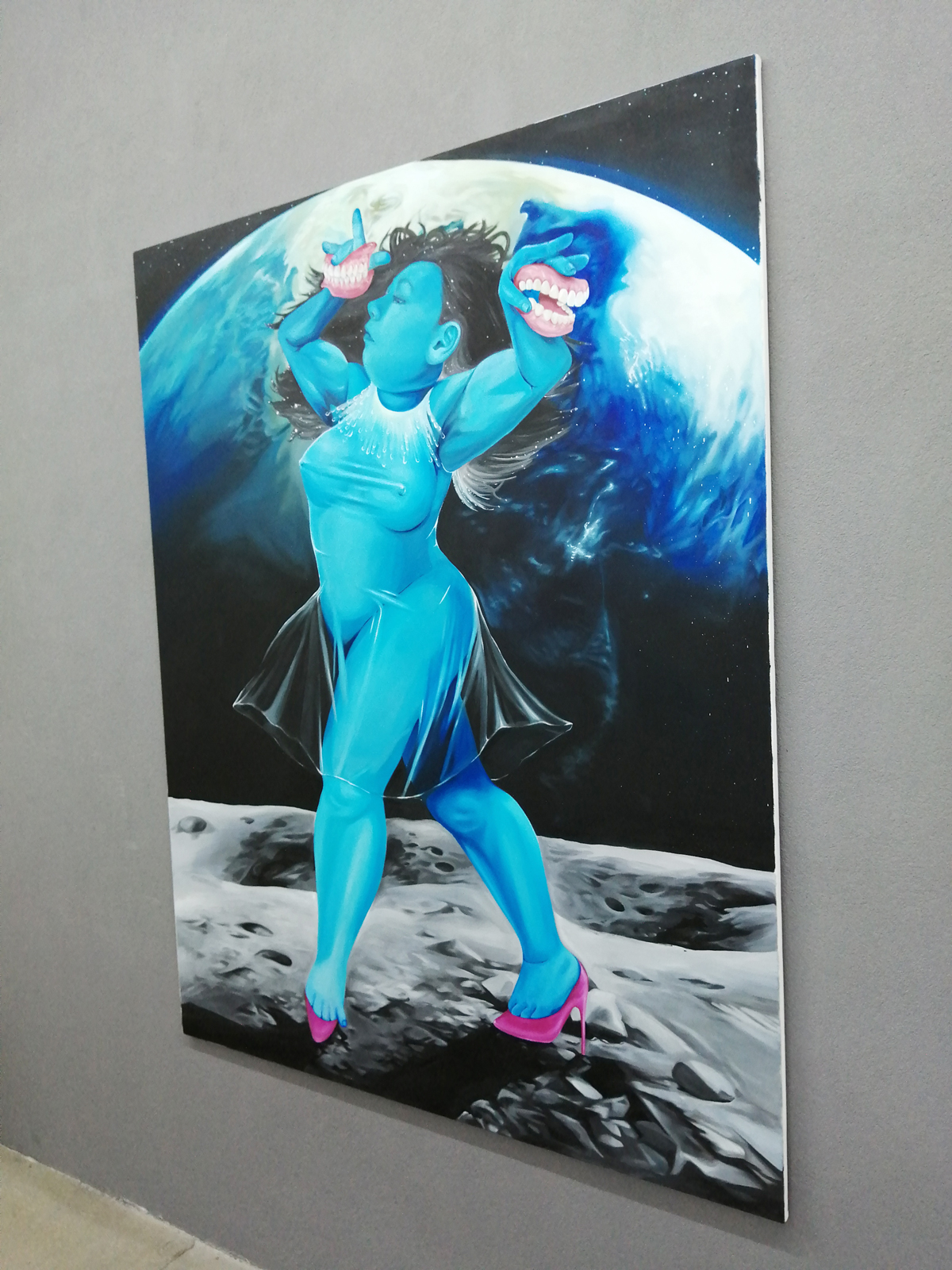 Moosey are an interest lot, a slick, very slice (over slick some might say) operation that started life (and still is found) in Norwich, put on a one off show or two in London (Yok was particularly good) before setting up a second home in Islington and now what looks like it might be a third space in Hoxton. The new space is big, a new-build space, all big windows and raw concrete, an almost brutalist interior, I like it. I like the space within the space, I like that they haven’t over-filled it for this (first?) show, this Nanhee Kim solo show that’s opening tonight, a show intriguingly called We Were All Once Virgins…