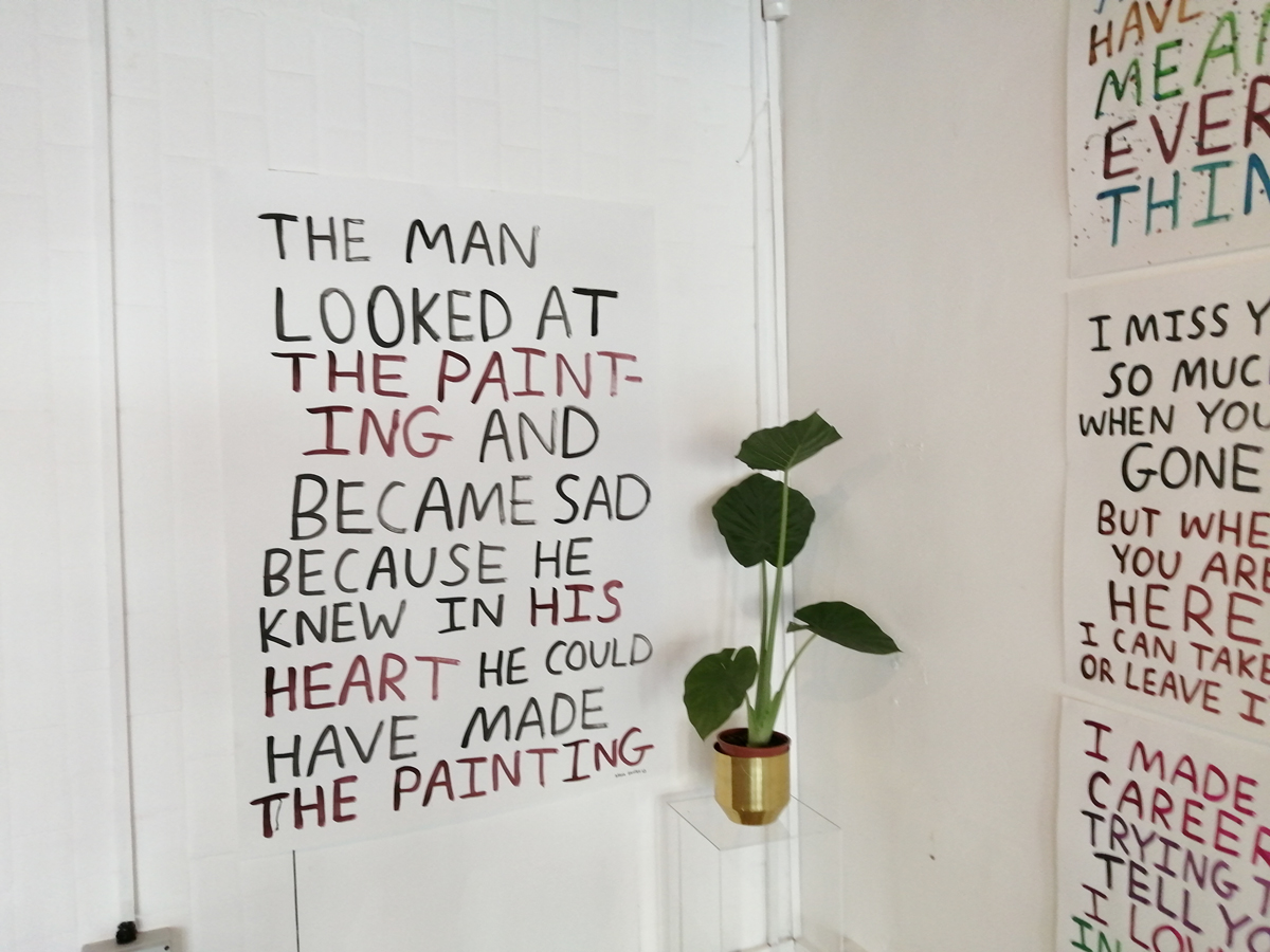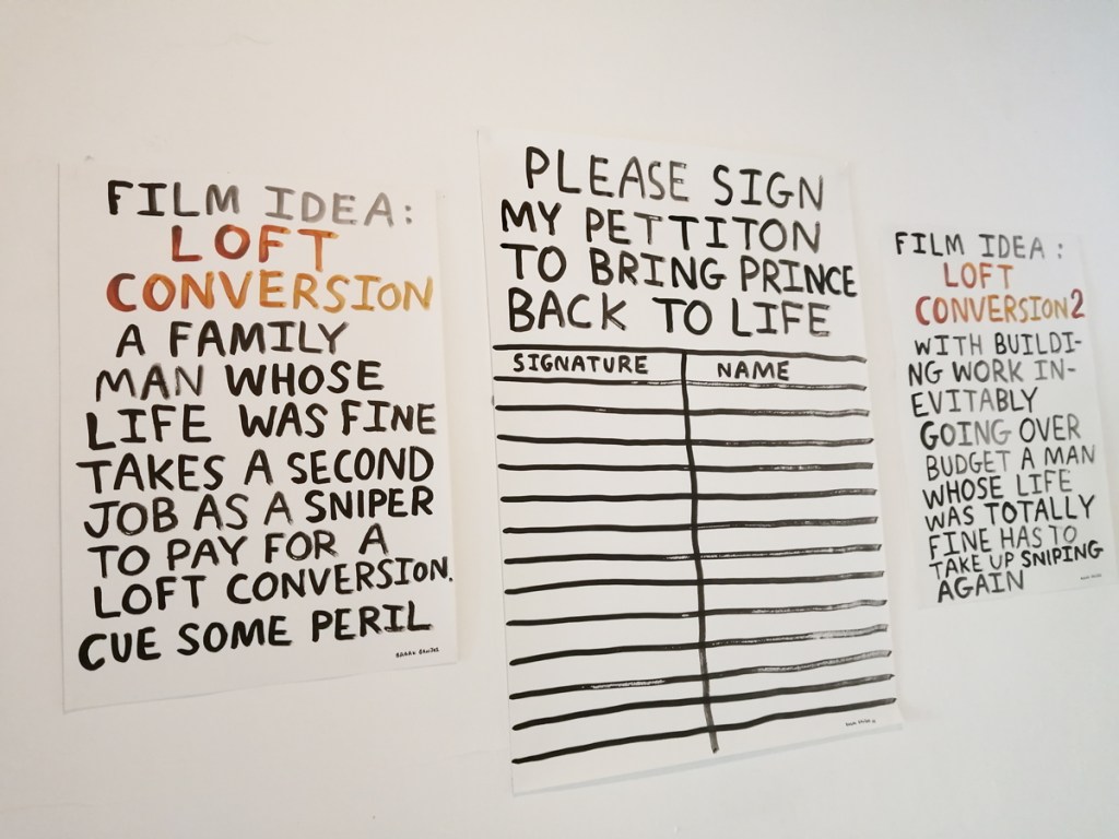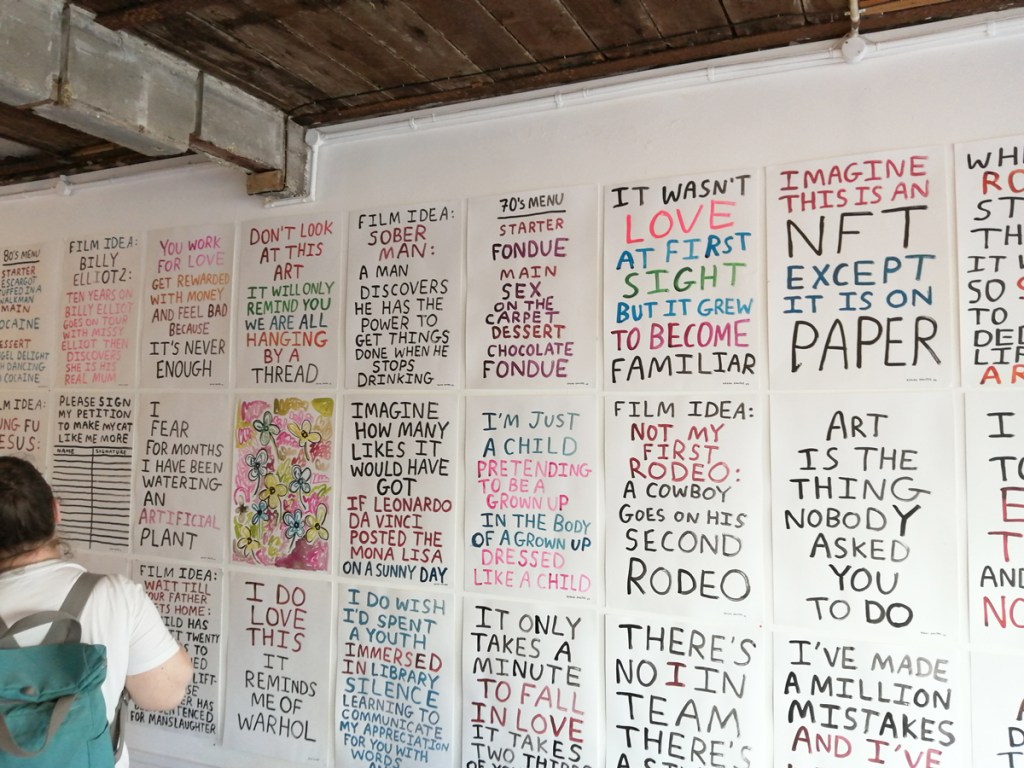 One Mare Street has just opened, there it is on the border of Hackney on the Cambridge Heath road to Bethnal Green, brilliant to see, let’s hope it lasts. The first show, a rather wordy Babak Ganjei show has already been and gone, a short sharp opening shot of a show. Babak Ganjei’s work is rather popular, busy opening night, I have to admit it doesn’t do that much for me, there is a lot of this wordy sloganny wit around, all yer misfortune tellers and what have you, I’m not going to lay into it, live and let live and if you want words then what’s these words worth? It just is really good to see the space coming to life, just good to see the show, and to feel the friendly enthusiasm coming out of the space when we walk in for a second time (something else sadly lacking in the now often rather aloof too-cool-for-you art-school-fuelled spaces that are currently to be found in and around the guts of Hackney. Looks like something good is maybe (hopefully) happening here. next up Ben Eine and Lucie Flynn and something called Entwined and the white outside walls of the space no longer being all white washed and crying out for colour. Watch this space, fingers crossed.