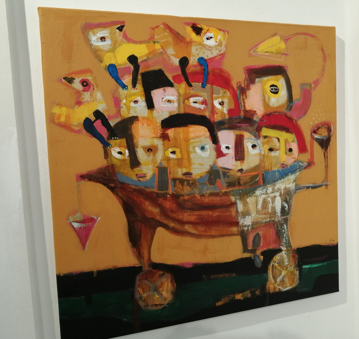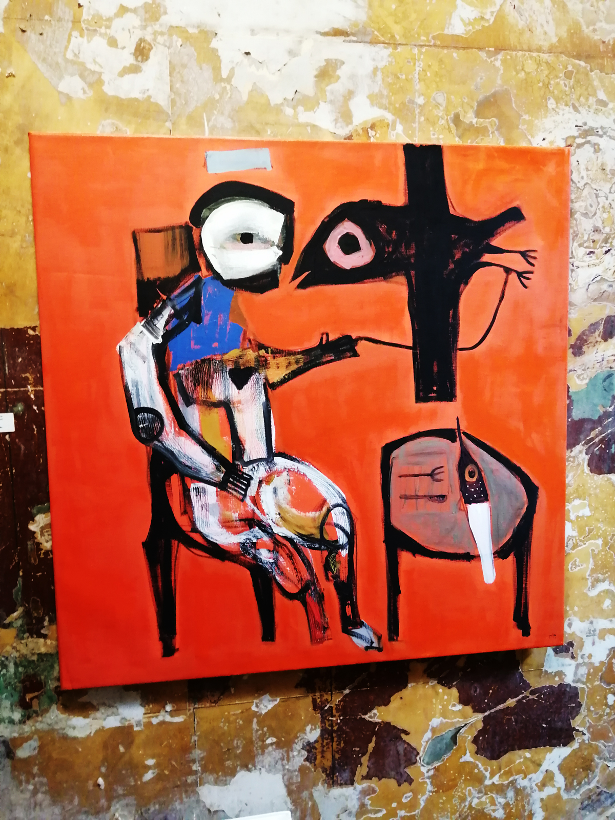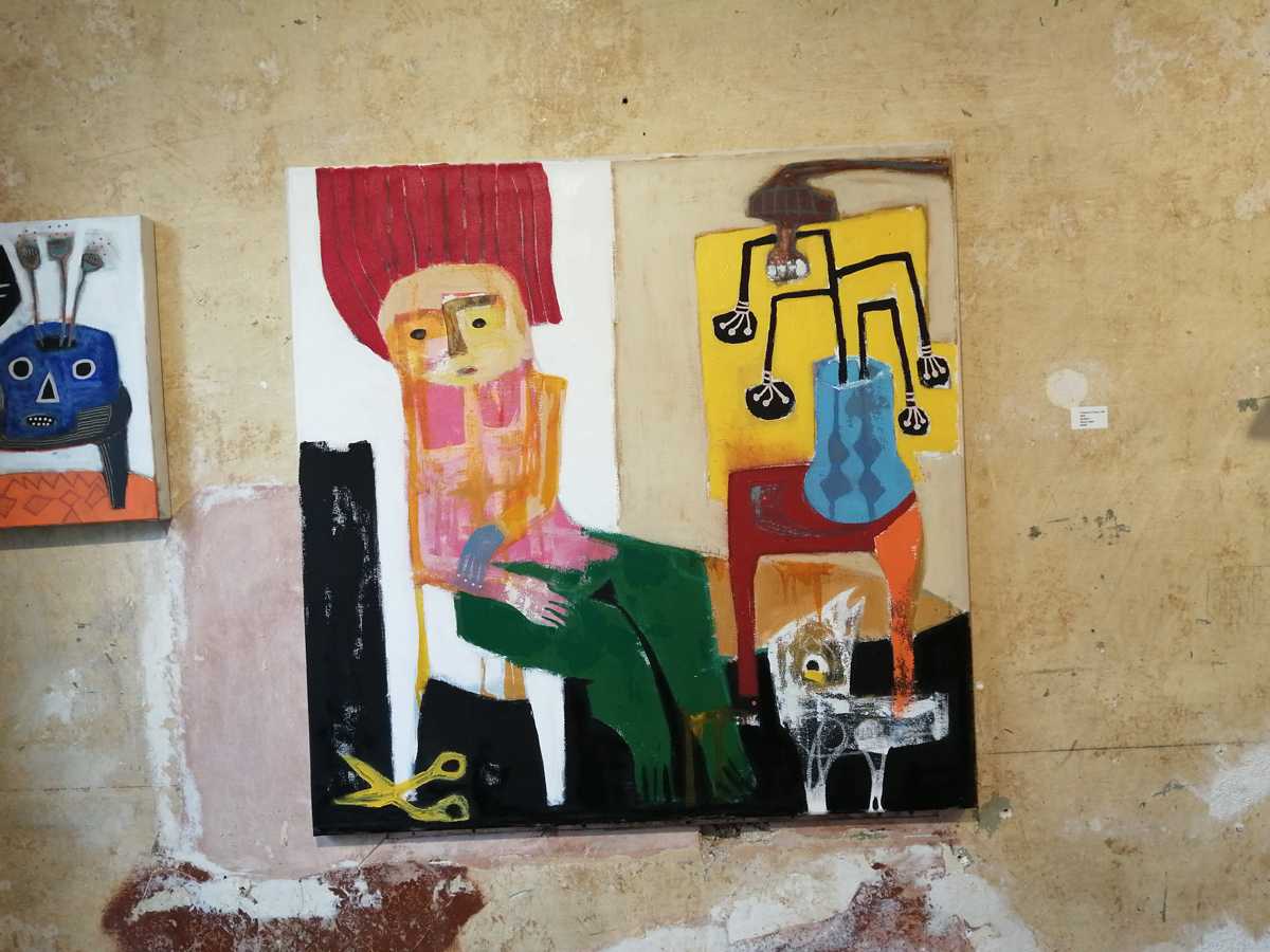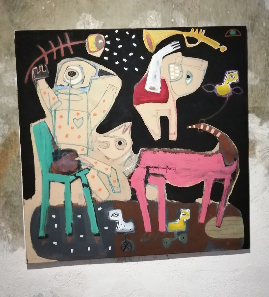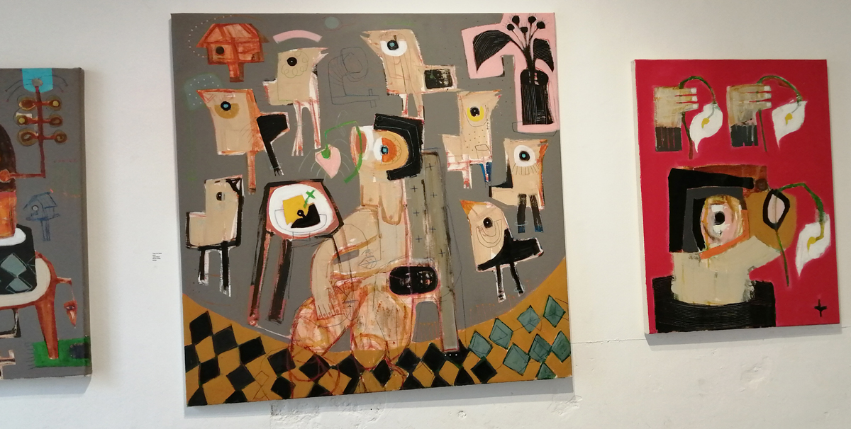 Semaan Khawam himself is introduced as the Birdman by his enthusiastic wine-offering supporters who insist I meet him, I never like meeting artists until I’ve met their work, next time though, next time ‘ll have far more that a handshake and this is great man, I’ve a million questions, then again, I really should ask the paintings themselves. I didn’t quite get the answers from this first encounter with the paintings and the strange bird sculptures (love the strange bird sculptures). Didn’t put my finger on any of it, these are clearly rather special pieces though – intriguing, as demanding as those finches and their mates the pigeons outside the studio here