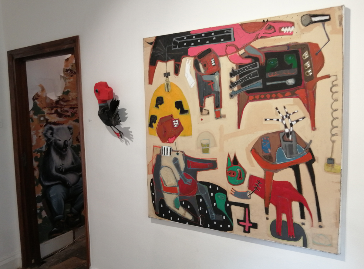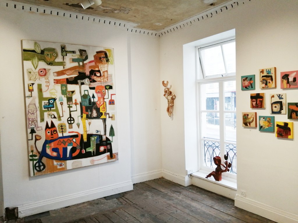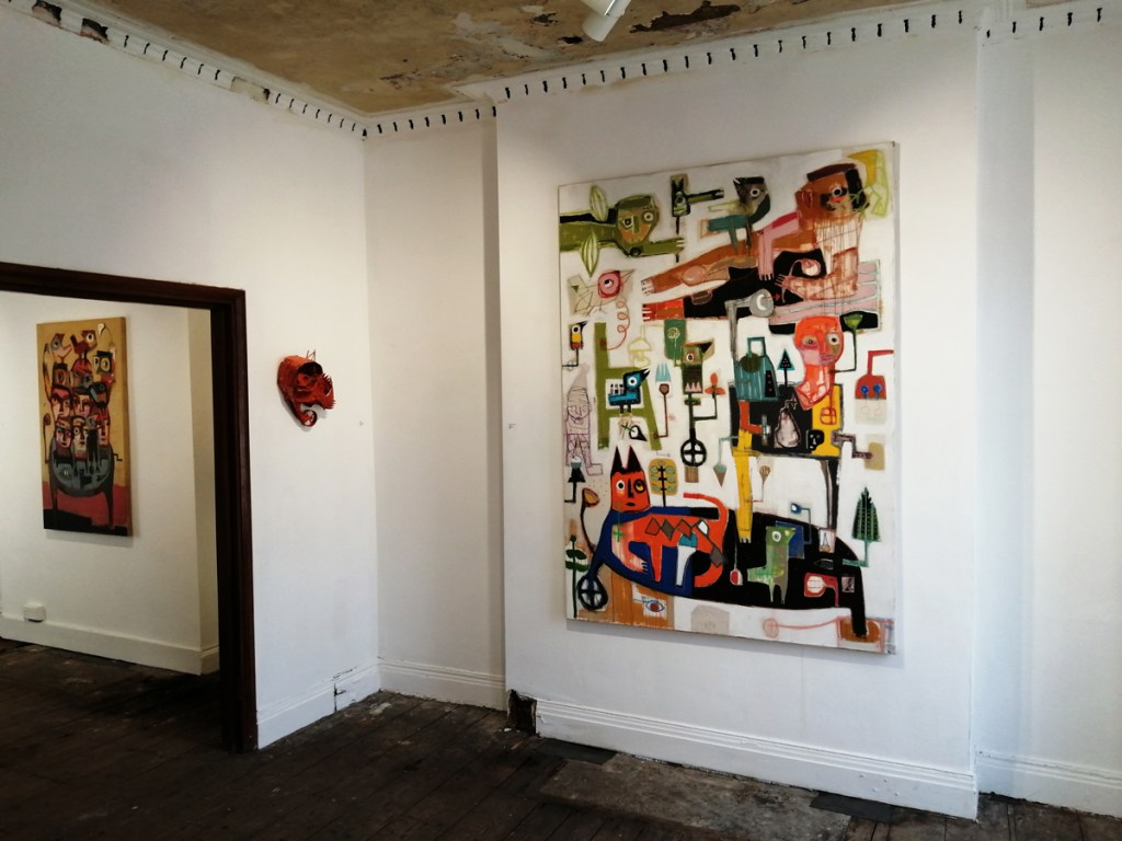 The Birdman’s show looked like it might be something worth the effort from the brief slice of an intriguing flavour offered via the online visuals, it didn’t disappoint in real life, there’s times when you walk in to a gallery and just know from the off. The paintings on the first of the two floors of the gallery immediately engage, they instantly delight (but no, we already established that was the wrong word), it really is more than just a delight, I mean these pieces are a delight, this show is something far more than that though, there’s immediately something very very real here, these are works that really matter.
