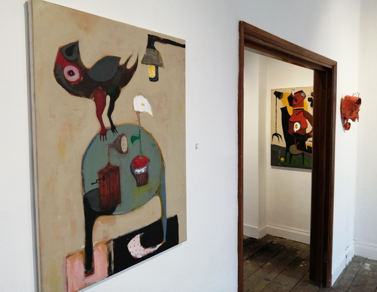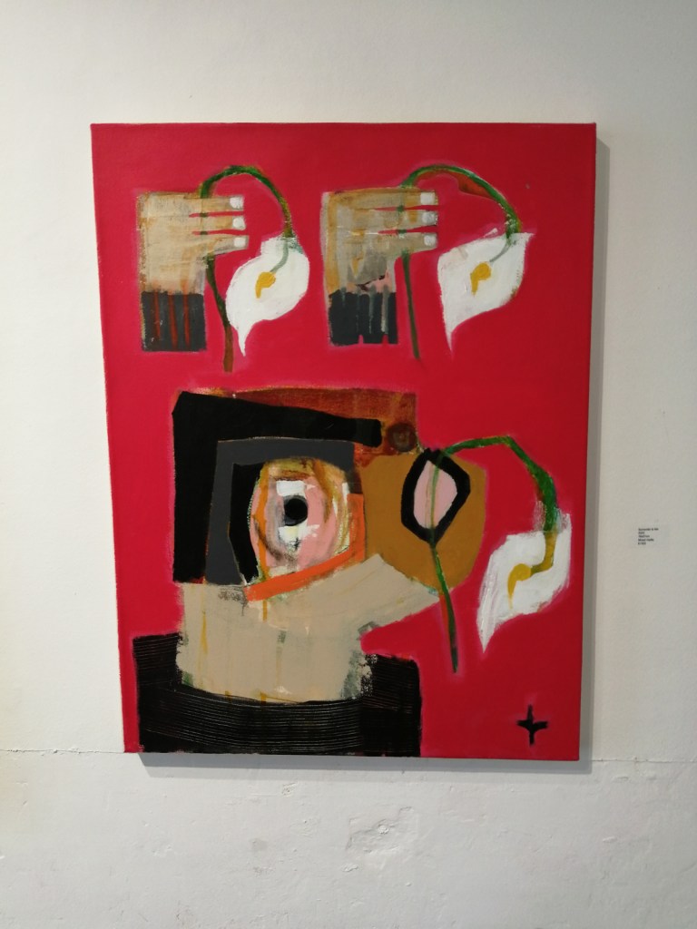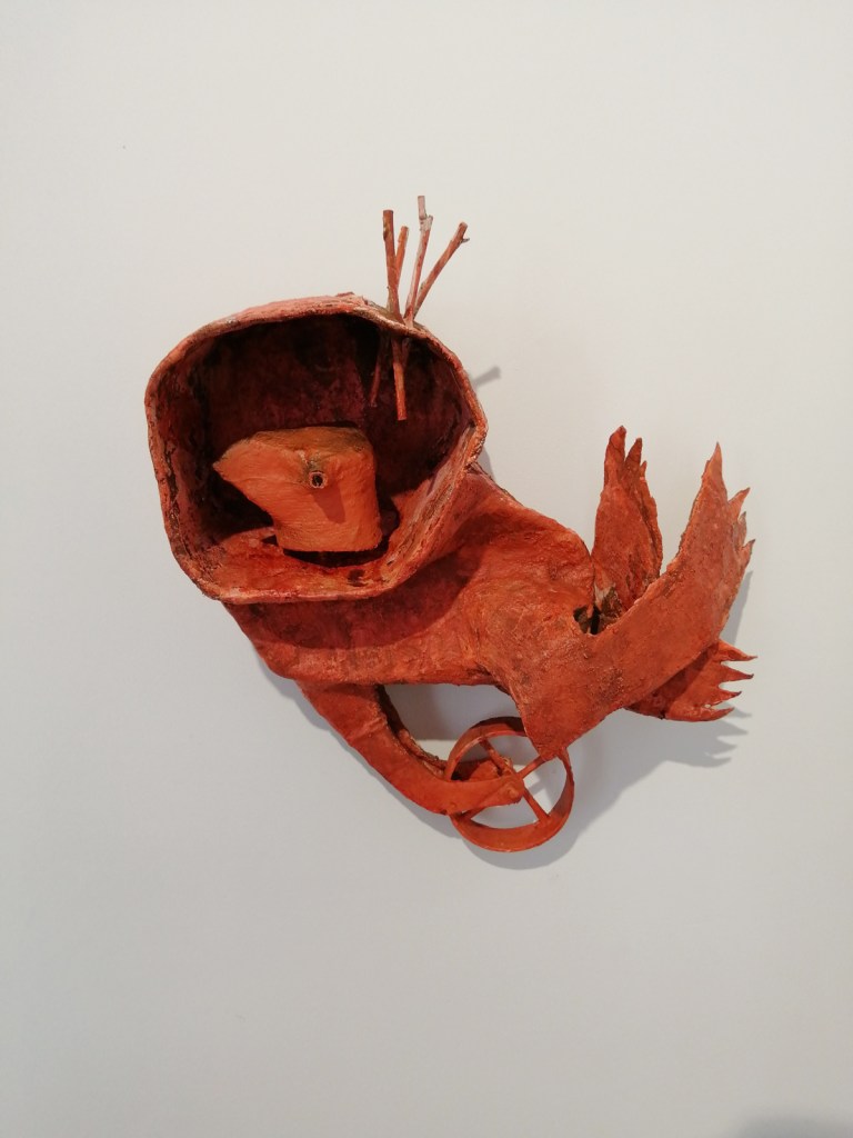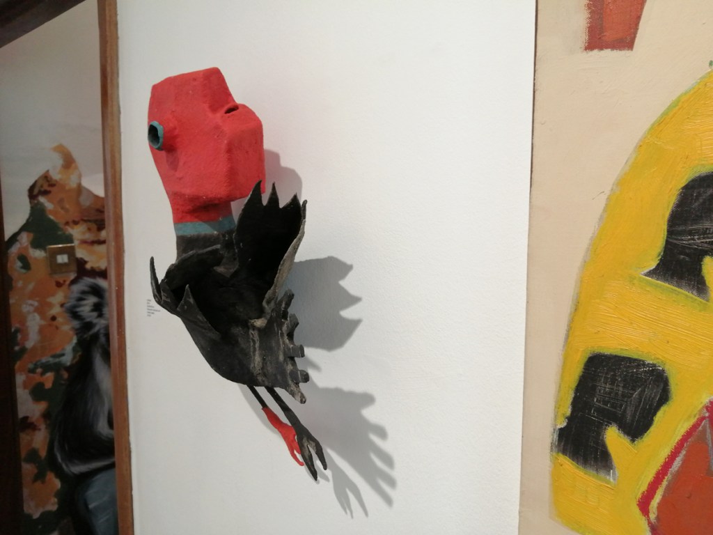 These are great paintings and sculptures, they’re not ‘nice’ – paintings of birds could so easily be nice, or twee, there’s something here I can’t quite put a finger on, something almost spiritual? Whatever it is, there’s certainly a spirit, a warmth. Is it a warmth? An undercurrent of darkness? No, that isn’t it either but these are excellent pieces and this is a fine fine collection of work, every single piece that’s hung so well over the two exciting floors. Love it! Love everything about it, love the birds, the beaks, the shapes, the muted colours, the rich rich reds, I love the sculptures, I love that they can’t quite be read, that nothing is obvious, that you have to search the pieces, that they question you the viewer as you try to question them. I like the commitment to the art here…