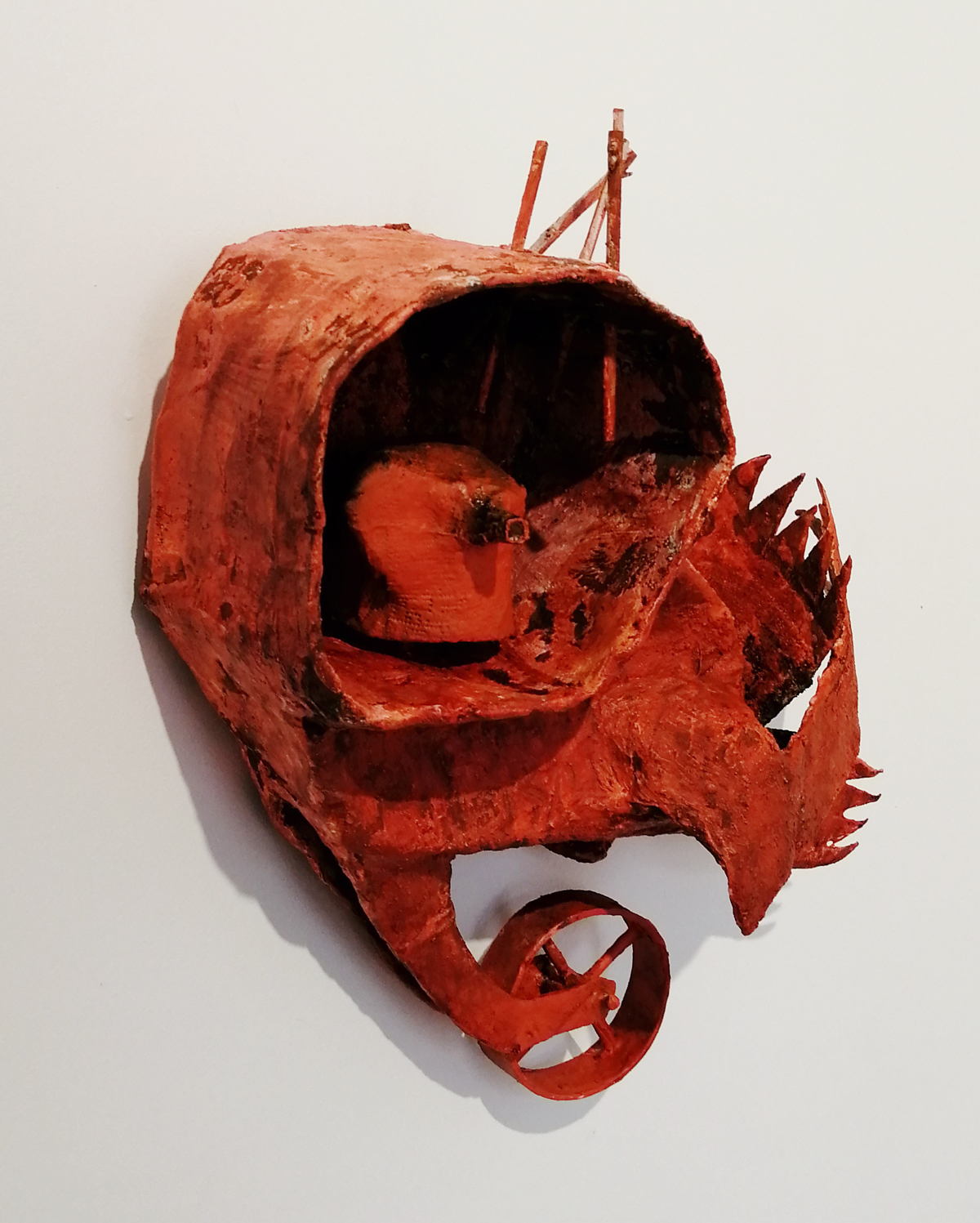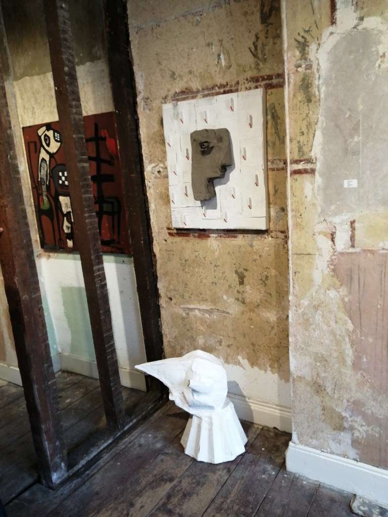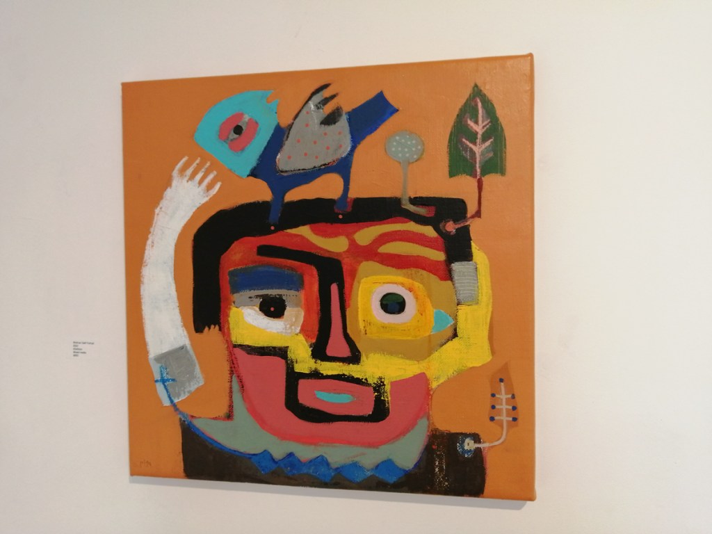 These are great paintings and sculptures, they’re not ‘nice’ – paintings of birds could so easily be nice, or twee, there’s something here I can’t quite put a finger on, something almost spiritual? Whatever it is, there’s certainly a spirit, a warmth. Is it a warmth? An undercurrent of darkness? No, that isn’t it either but these are excellent pieces and this is a fine fine collection of work, every single piece that’s hung so well over the two exciting floors. Love it! Love everything about it, love the birds, the beaks, the shapes, the muted colours, the rich rich reds, I love the sculptures, I love that they can’t quite be read, that nothing is obvious, that you have to search the pieces, that they question you the viewer as you try to question them. I like the commitment to the art here…