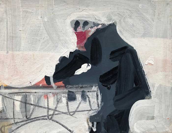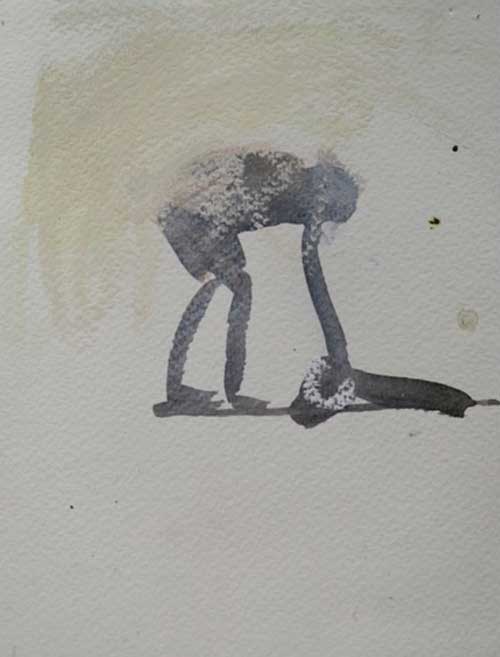 I draw people in supermarkets, on beaches, in streets and restaurants. The speed of observation transforms the figures to become more vulnerable or predatory through abbreviation and distortion. In the studio I use these drawings for bigger works, several at once, working on the floor so I can see them from all sides.