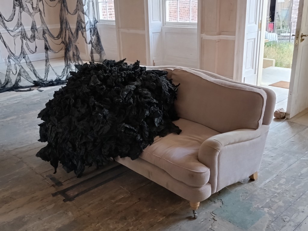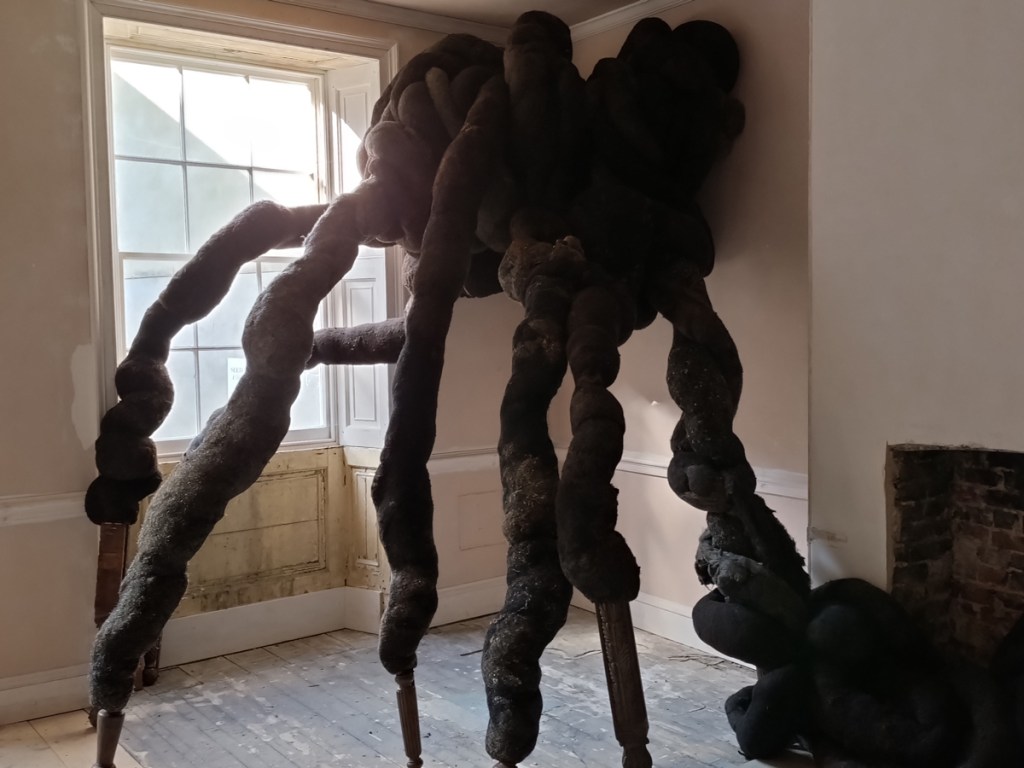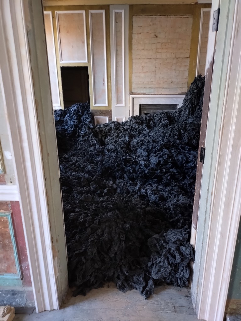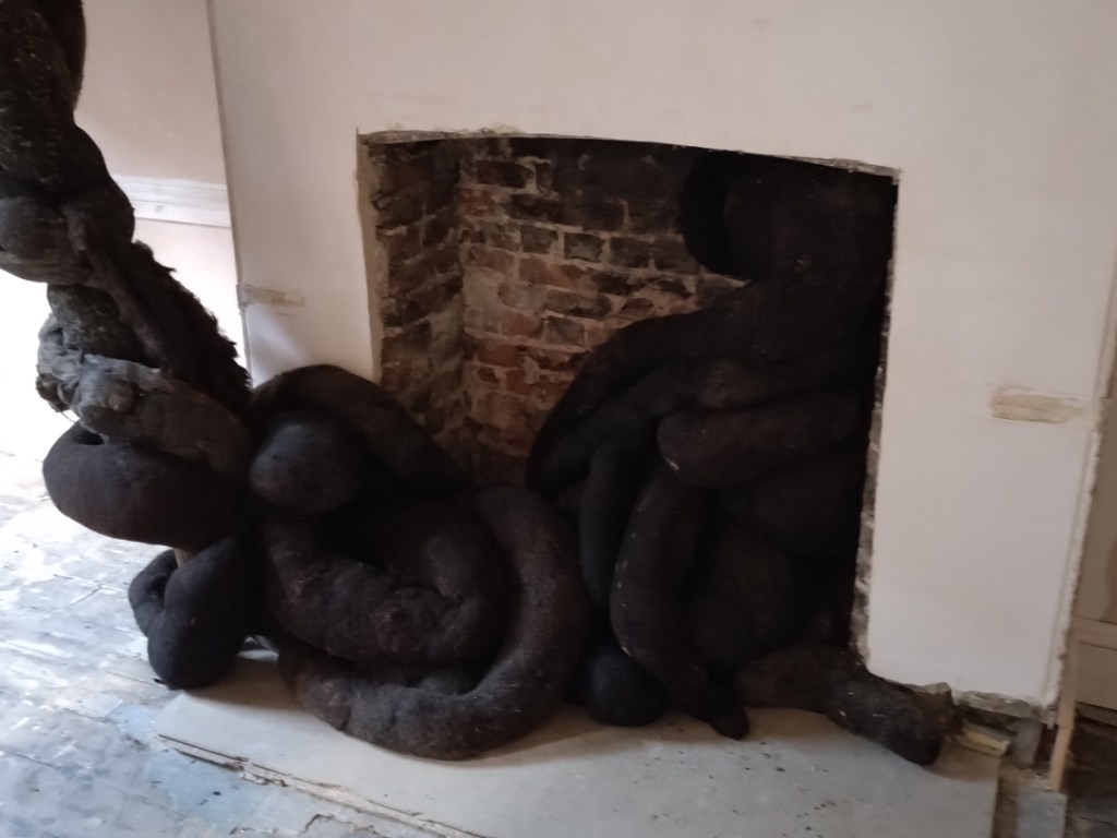 “Monumental yet incomprehensible creations ooze down walls and staircases, bulging shapes engulf furniture and spill out of crevices – where children once may have played hide and seek in their Georgian family home, or where former prisoners were given shelter during the building’s time as a women’s refuge”.