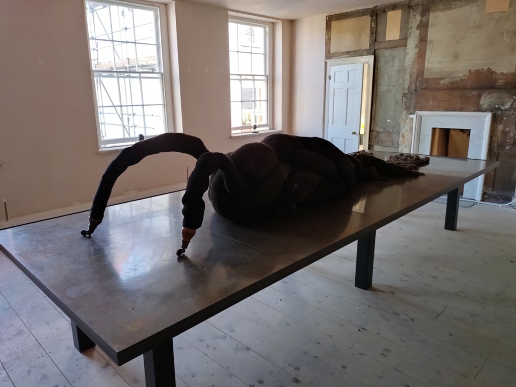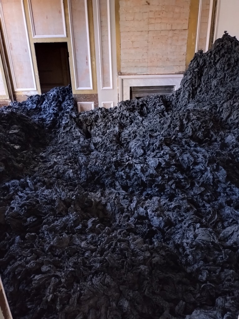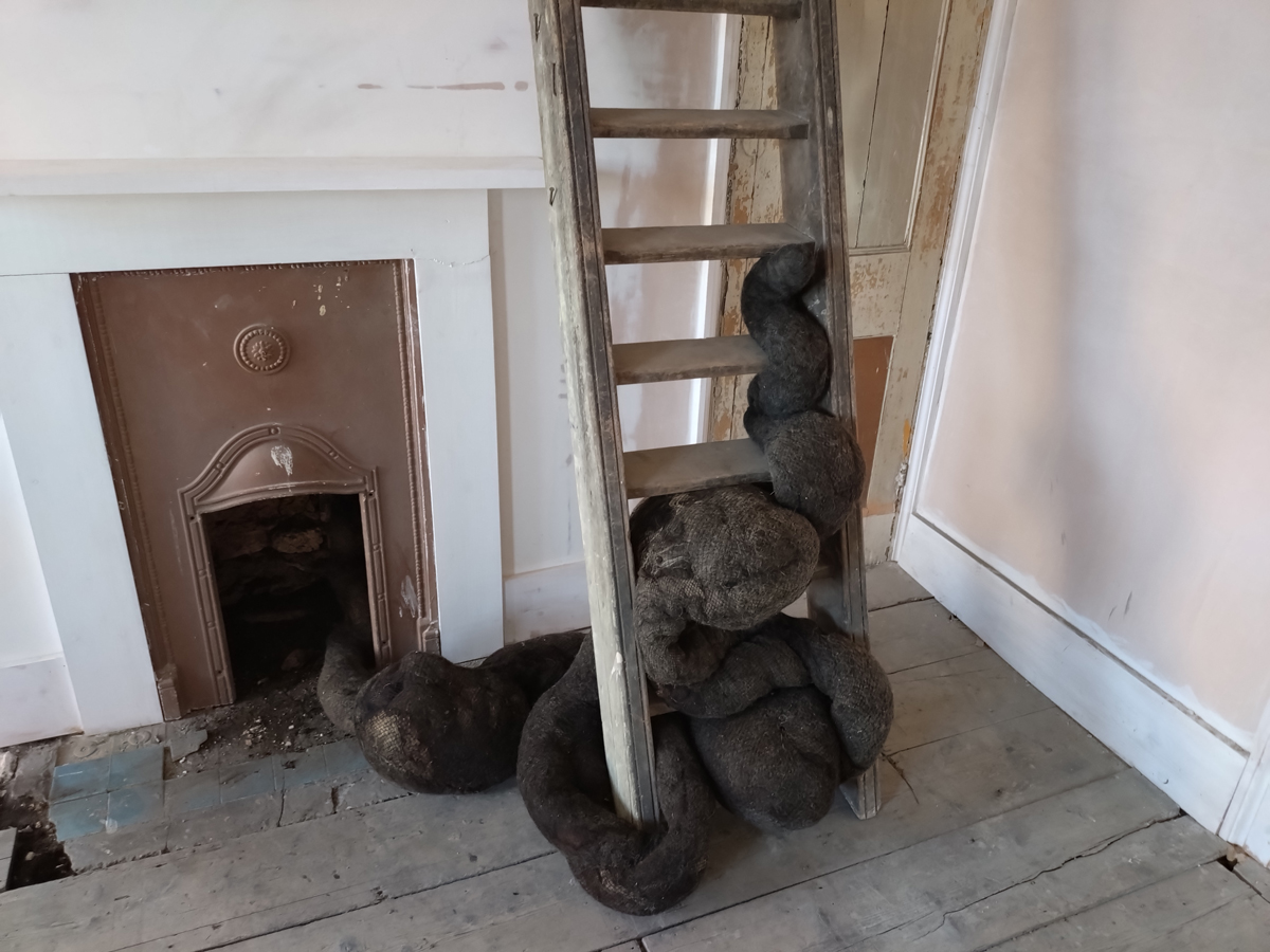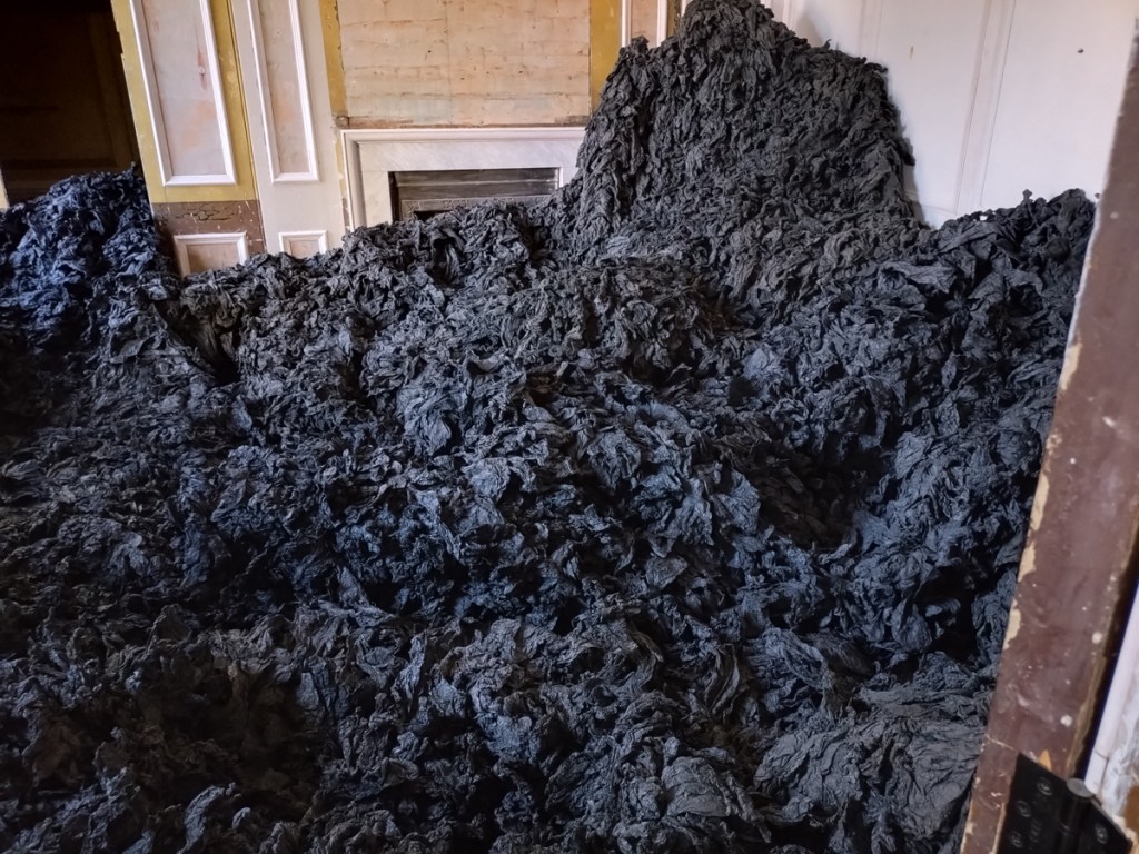 “Monumental yet incomprehensible creations ooze down walls and staircases, bulging shapes engulf furniture and spill out of crevices – where children once may have played hide and seek in their Georgian family home, or where former prisoners were given shelter during the building’s time as a women’s refuge”.