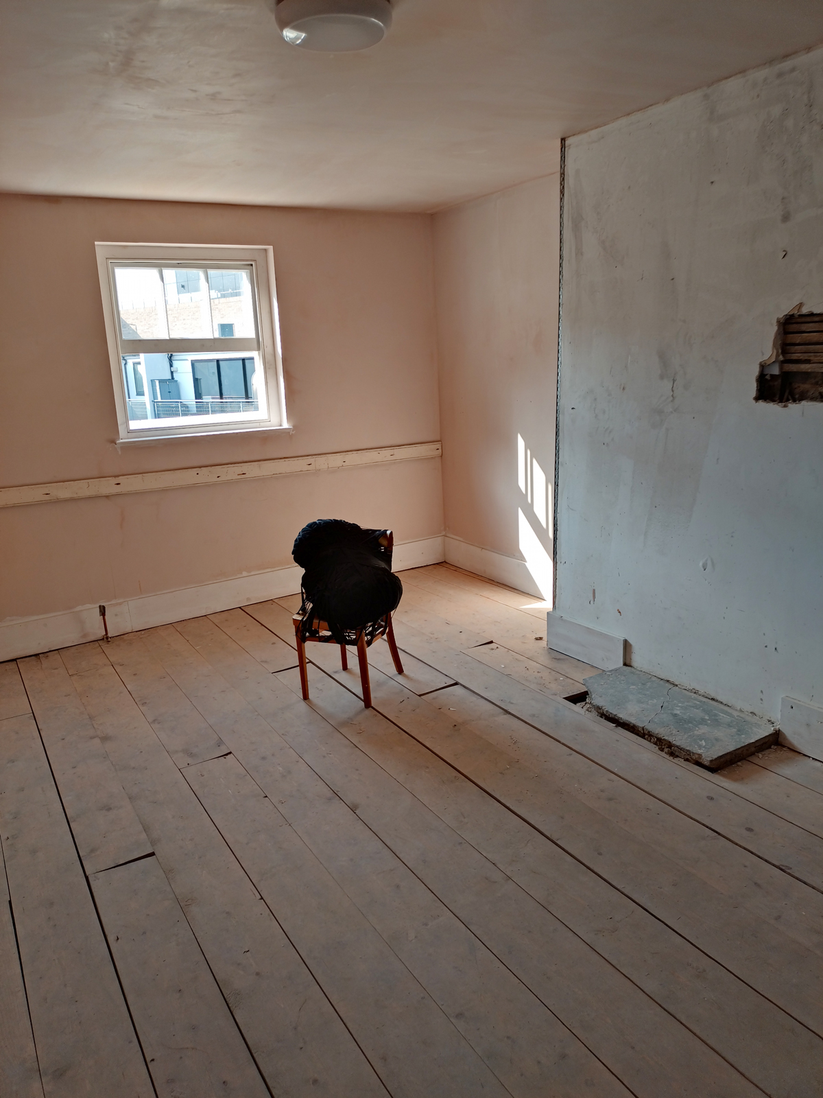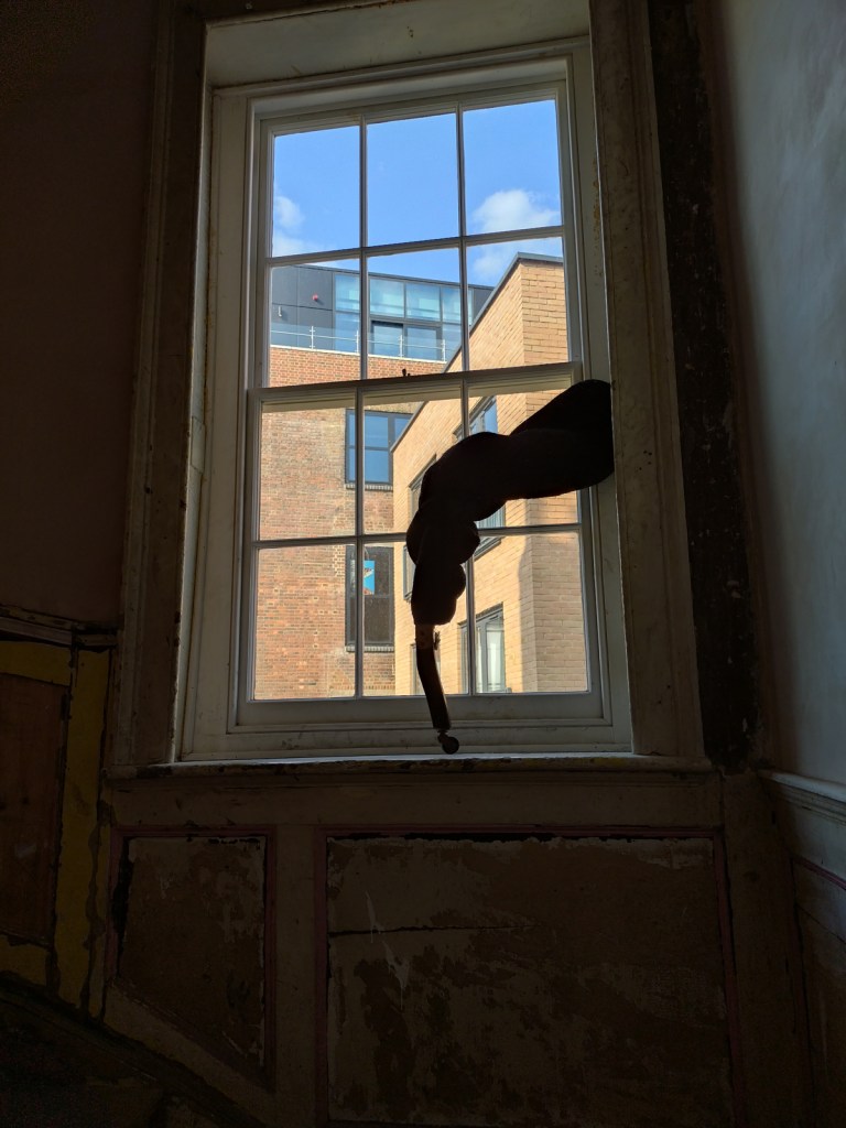 We Are For The Dark is a site responsive intervention by contemporary artists Kate McDonnell and Nicola Turner. “Their assemblages, sculptures and installations retrace invisible memories left by generations of former inhabitants at one of Hackney’s oldest buildings”. We have written about That House a number of times over the Summer, there’s been some excellent exhibitions and events in the born again space in recent months, not everything has been, in terms of the shows that have happened in here, not everything has been has been right, not every show has been worth covering but more than enough of it has been. The Summer has been positive at 195 Mare Street (and we still have most of September and the big wall painting before the space closes for that restoration work to start)