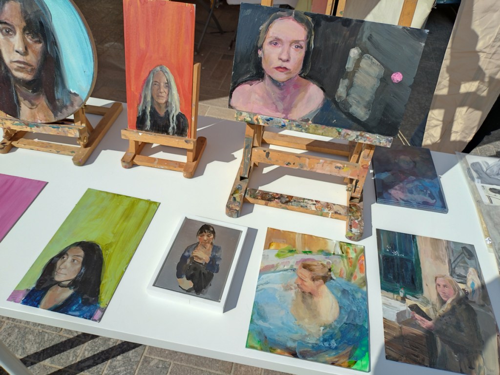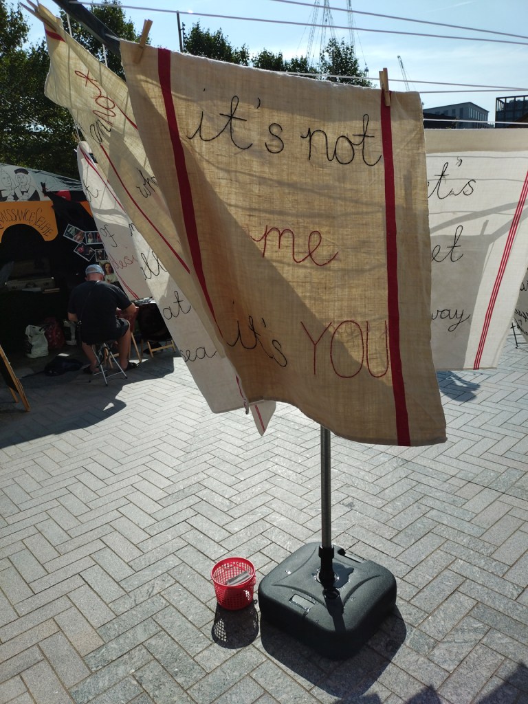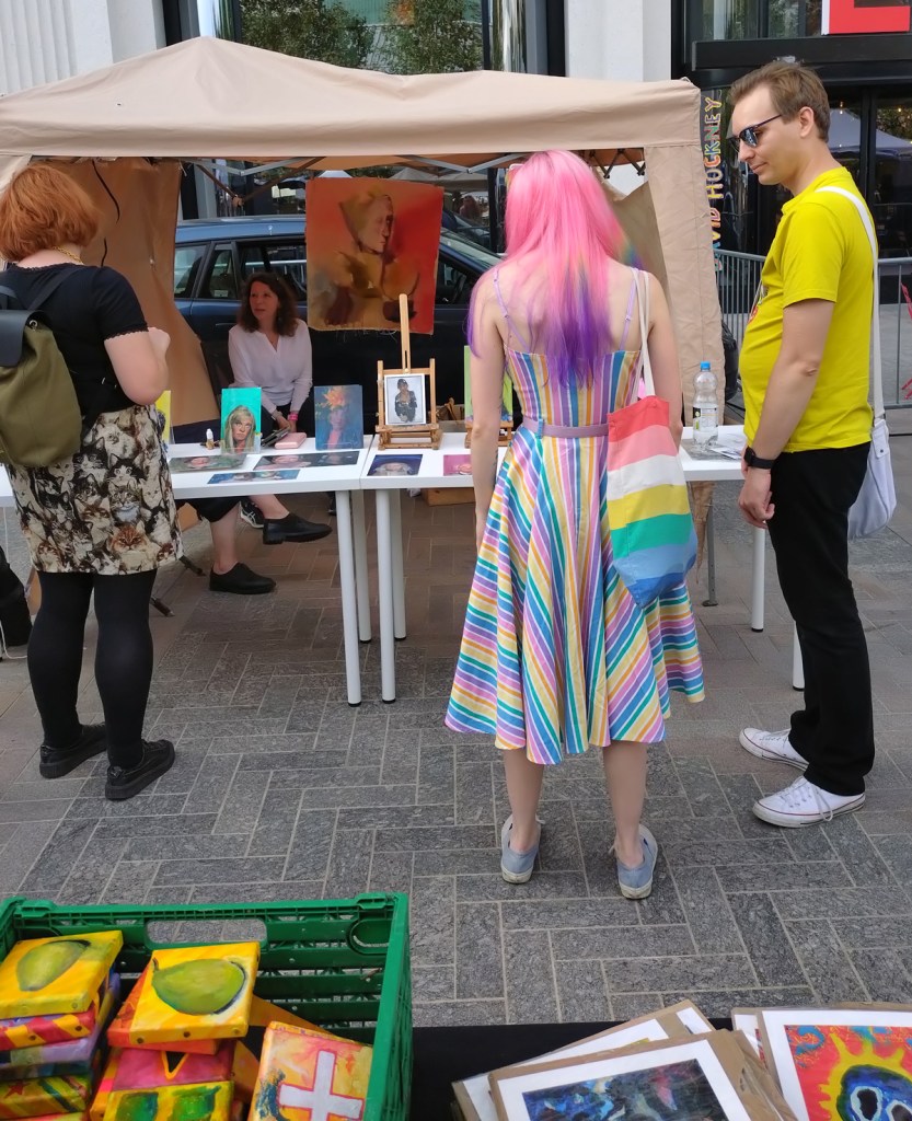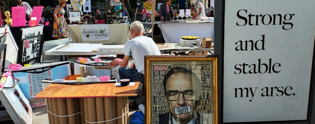 Upfront disclosure, of course, those of you who know me, know I was once again one of artists invited to participate (being invited is something never to be taken for granted as an artist) so it is impossible to write an objective review, I was standing in my “car boot”  from midday until the wind blew us all over just short of closing time at around 6pm and while I could see the work of the artists nearest to me and I could see those passing by and what they had in their hands (and thankfully I wasn’t too far from the bar), I have no idea what was going on over there or what the big cheer that suddenly erupted to my left was about, I have no idea about the art on the other side of the square or who was doing what out of earshot, I hardly ever get to explore the fair, there were artists on the bill who’s work I just didn’t get to see all day!