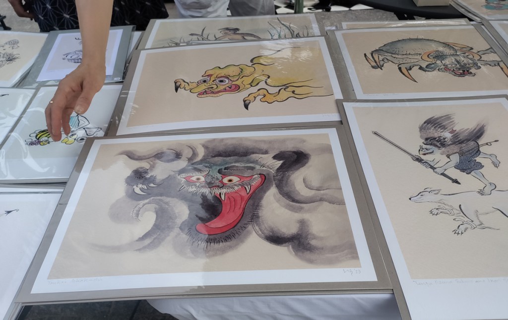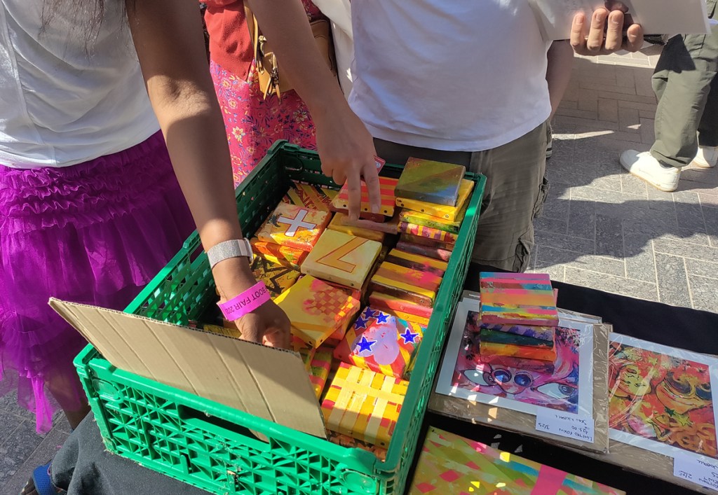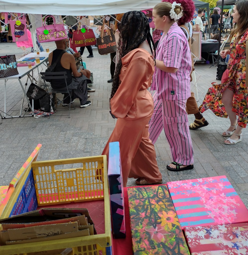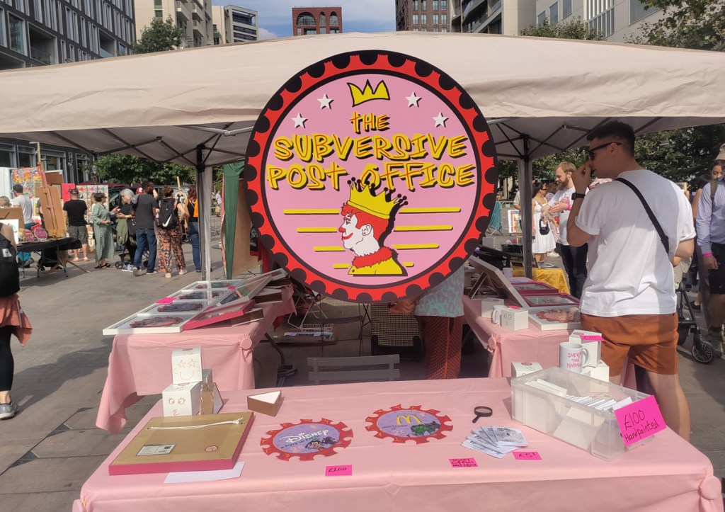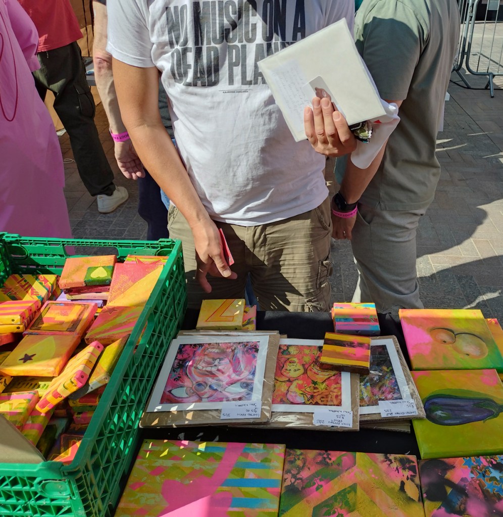 Of course things are different now, it isn’t 2008 down Brick Lane and most of the participating artists have been pushed out of London now, there’s new-builds everywhere, we’re surrounded by new towers and as artists most of us, it we were around back then, are a million miles away from the Art Car Boot Fairs back at the start of the century. Of course it isn’t the same, of course it has evolved, it has to evolve, we’re in some kind of futurist square that was pretty much a wasteland playground when the Art Car Boot Fair first came into being, it is hard to find a soul here in Kings Cross where once railway engines took on coal and later we danced in shells of warehouses until the sun came up, but this is London now and plush squares with gallons of coffee surrounded by shiny towers that house heaven knows who or what? Of course the Art Car Boot Fair is different now, how could it not be? Those who moan about it not being the same are chasing something we just can’t have in 2023, but what we do have is, in a different way, almost nearly as good, is kind almost as valid and more importantly, right here and happening right now rather than just being a thing of history.