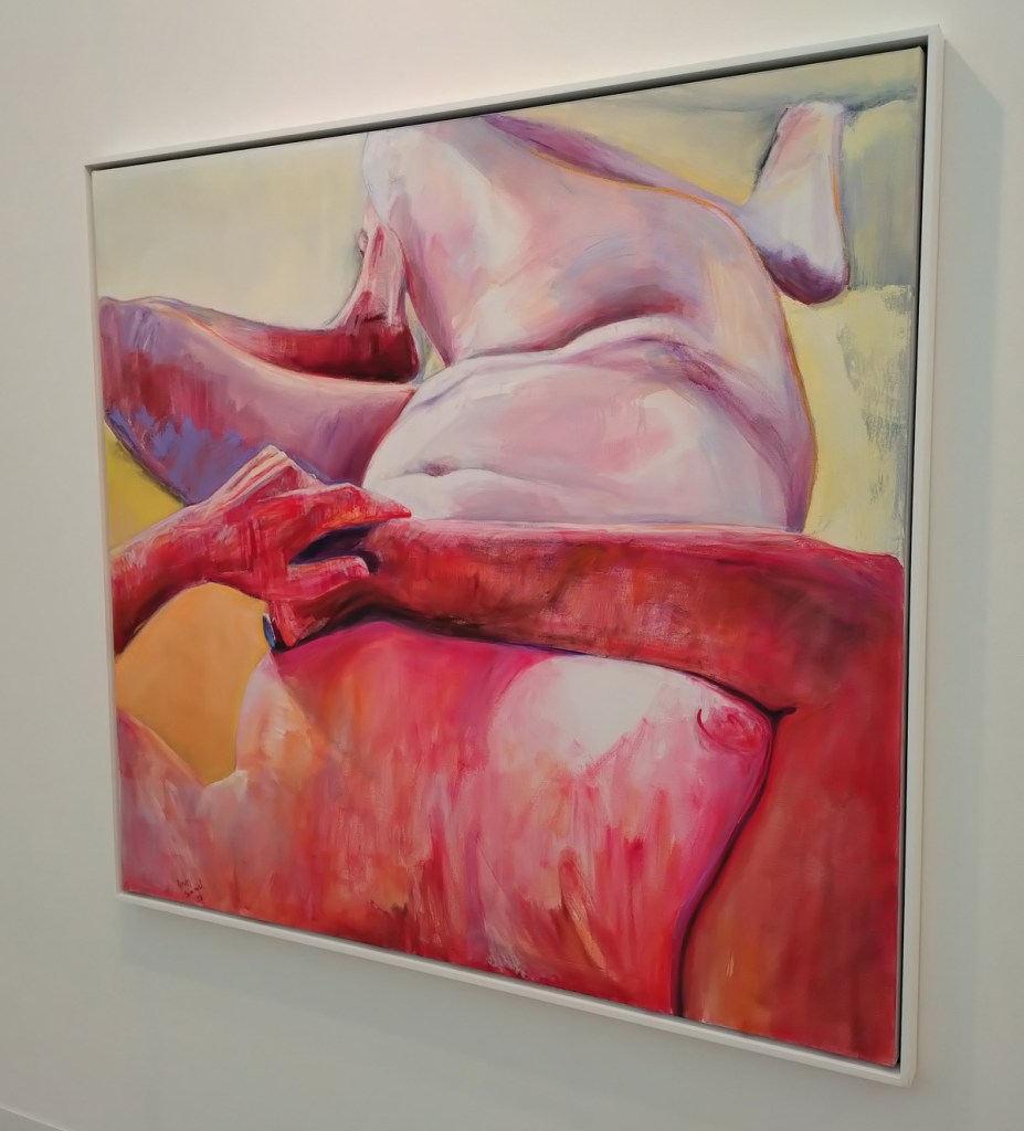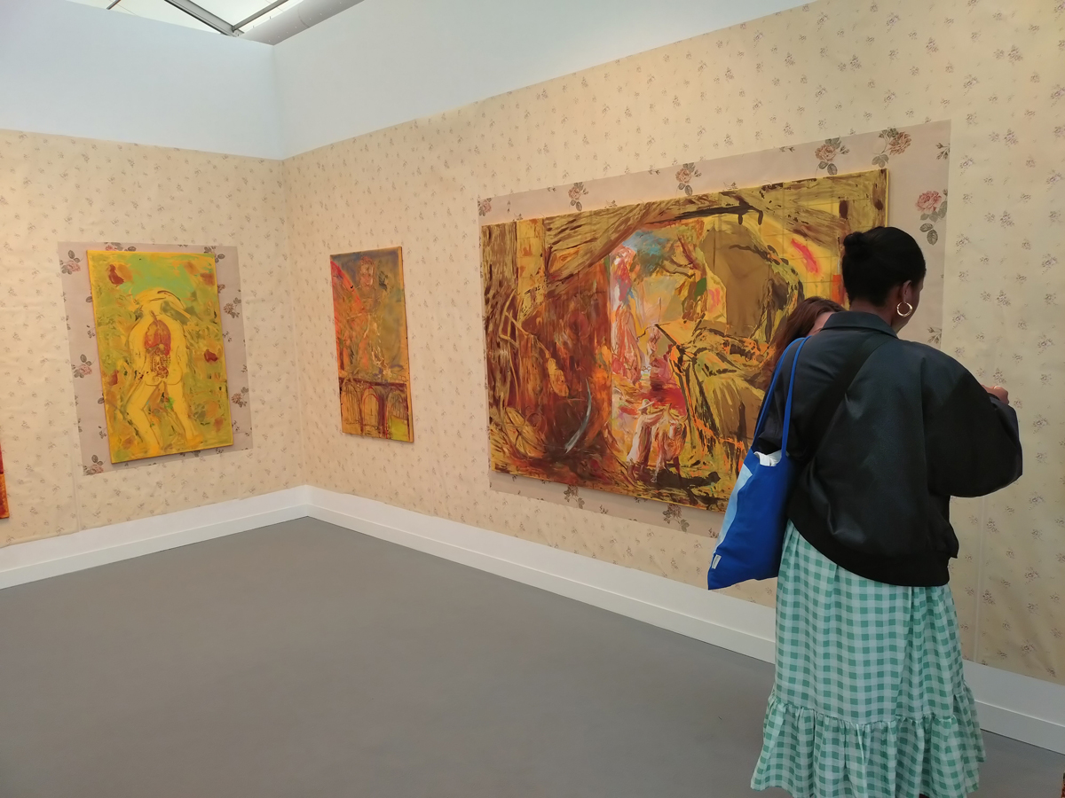 London’s The Sunday Painter gallery space looks good again, well the sculptures do, really enjoyed Berlin-based German artist Fabian Knecht‘s rather progressive wall hanging pieces presented by Alexander Levi Gallery, now they did have a bit of a much need bite to them. There goes another Harland Miller book cover, they seem to excite some people, don’t do a lot for me but hey, spent quite a bit of time with big Hannah Quinlan and Rosie Hastings paintings presented by London’s Acadia Missa. Joan Semmel‘s No Strings was a highlight, always good to see a Tracey Emin painting in the flesh, Celia Paul‘s Seated Painter is a beautifully confident piece (gawd, that sounds patronising of me, but there is something strong about that painting), Vivian Greven‘s wall of stylish lime flavoured paintings is refreshing for a moment and there’s a strong Cassi Namoda painting that makes me want to know more about Cassi Namoda. East London’s Emalin gallery seem a little restrained this year which kind of sums up Frieze. And there go some Boring Things On Walls and well, um…. yes.