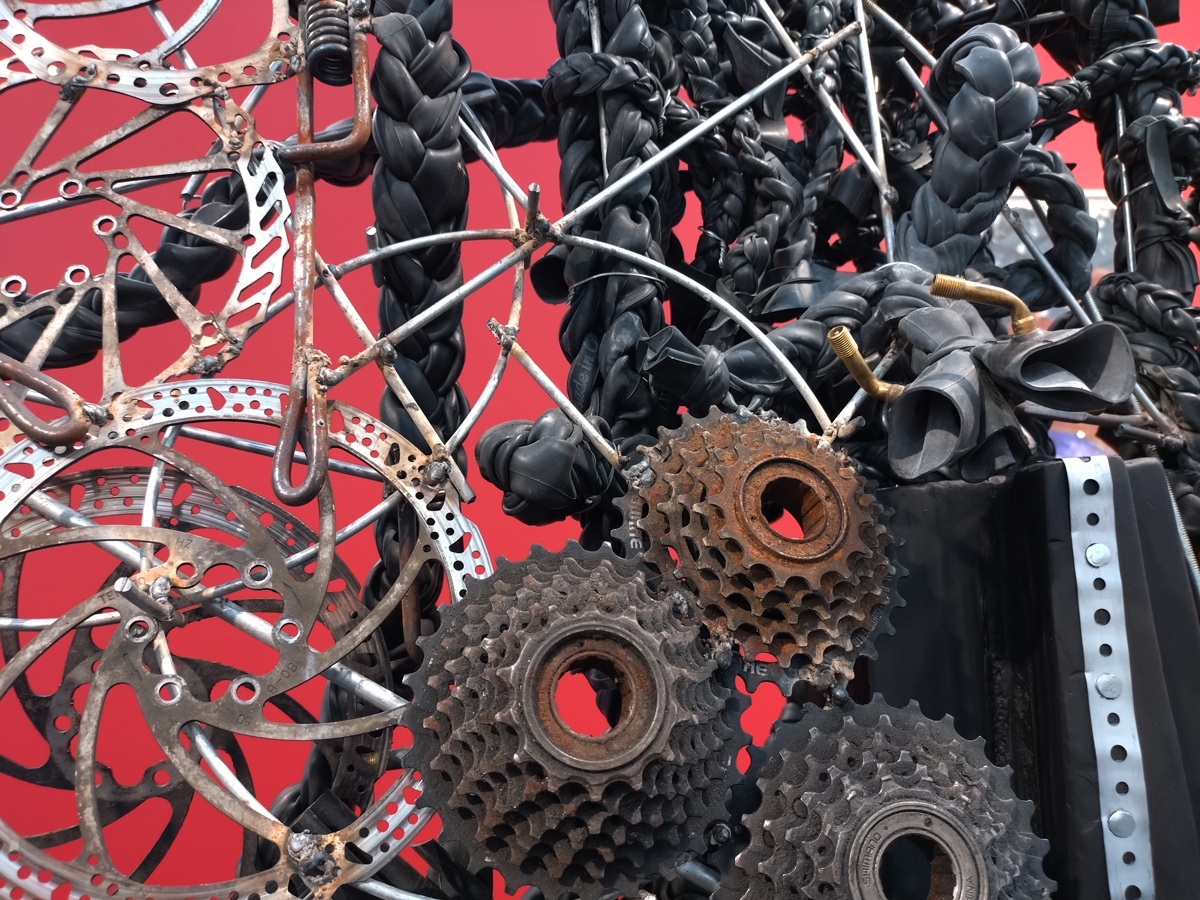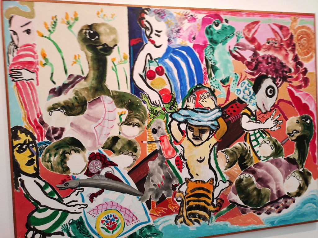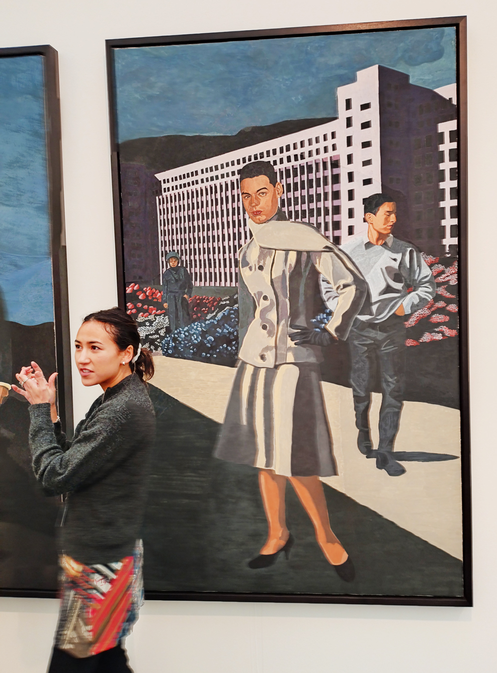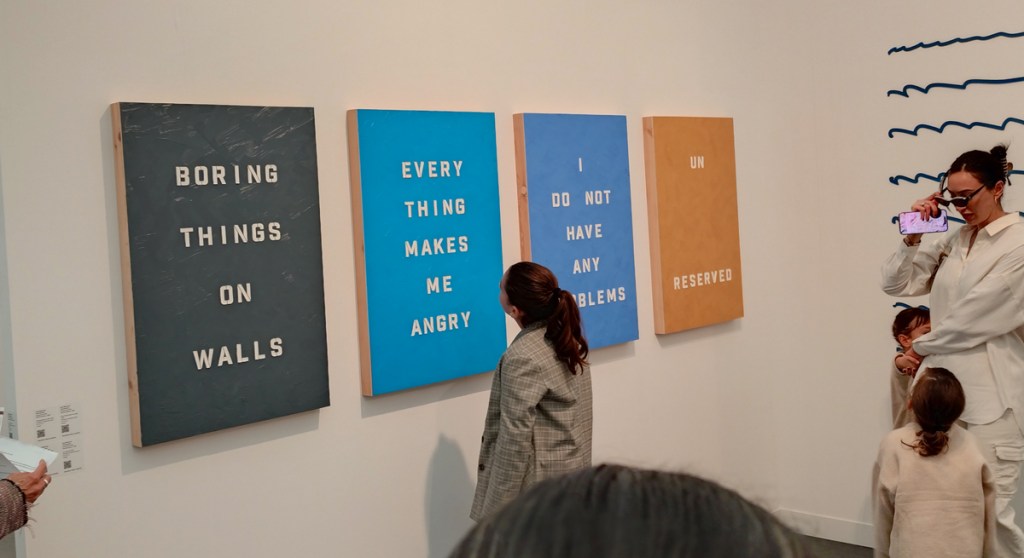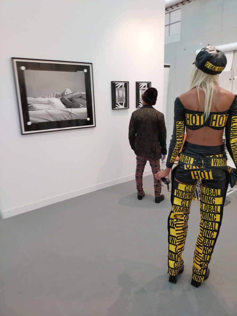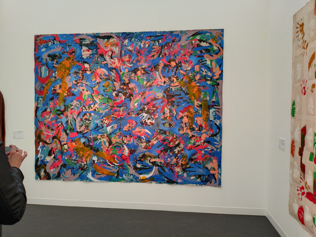 And so Damien Hirst’s big flower paintings were the first thing everyone encountered once we’d got through the security check (and had our water taken off us. You can’t take water in, there’s plenty inside said security woman, there wasn’t any water anywhere unless you were prepared to pay the outrageous prices in the eating areas. We did notice the water dispensers, but hey, they took our bottles away, what were we to dispense into?). So Hirst is the first thing you see in the Gagosian big dog spot by the entry and well, you just can’t trust anything he does can you? I mean, did he paint them? Does it really matter if he did or not? Does anyone care besides the guy who lives in Dubai and wants to add some HIrst flowers to his penis sized collection of Ferraris that he never drives or the big fat kettles he never takes out of his safe? I expected more from Gagosian and that did kind of set the tone as we headed off scanning here there and everywhere looking for that one thing that would set the day off, that one piece of art, that wow, that rush of excitement that never ever actually arrived this time…