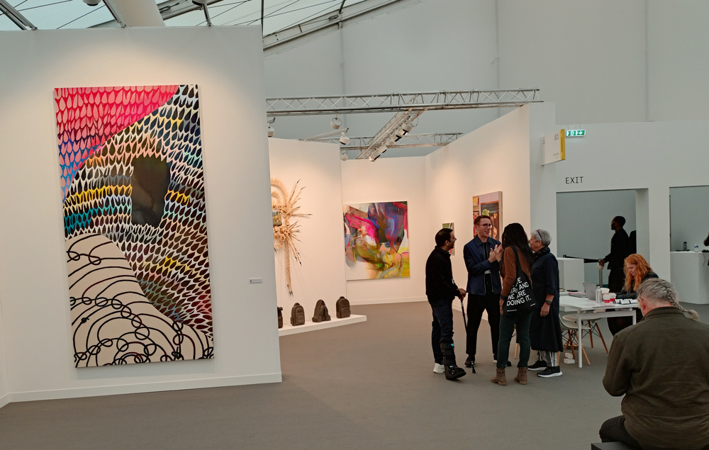 May I just take a moment? May we take a breath rather than rush it all out? May I take a day to reflect? Frieze London 2023, what to make of it all? The day after the morning after the night before now and we’re still kind of processing it all. Cork Street was a bit full on last Thursday night, the Cork Street Party was very very (very) busy, lots and lots of people, lots of art, not sure about the art? Who were all those people? What have the last few days actually been about? What to make of our Thursday spent at what was ultimately a rather conservative and probably a slightly disappointing Frieze? We do look forward to Frieze, to Frieze week and all that goes with it, we know what Frieze is, we know what it stands for, they don’t hide it, there is no pretence and it is usually around about this point in our yearly review that I make some kind of cynical quip about going behind enemy lines. We have been covering Frieze for quite a few years now (this is the fair’s twentieth year), people do always asks why we do? They are right to ask, we are more about the smaller spaces, the alternatives, the artist-led shows and it does feel like going into their territory rather than remaining on our ground but this is not a time to glibly talk about going behind enemy lines, not this year, not with all that is happening to the ordinary people on all sides over in Gaza right now. Not that you’d know it in here, this really is a (sometimes very obscene) bubble, there are no wars happening in Frieze world, there is no climate crisis, cost of living? Not our problem, we’re alright jack, on with the party, let the poor people deal with the real world, am I important enough to be allowed to buy one of those rather unremarkable Damien Hirst flower paintings