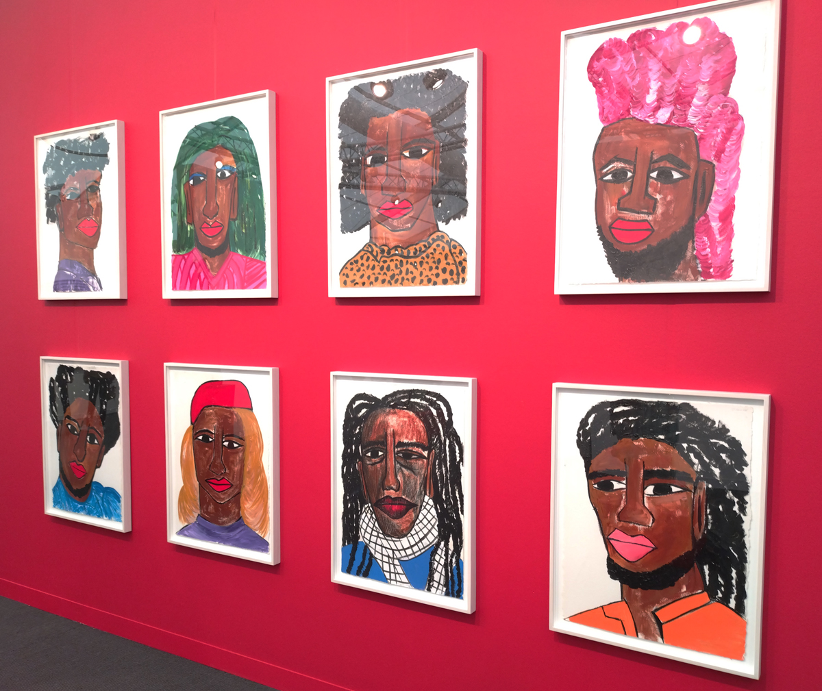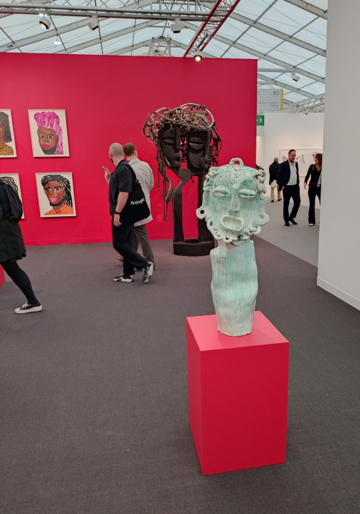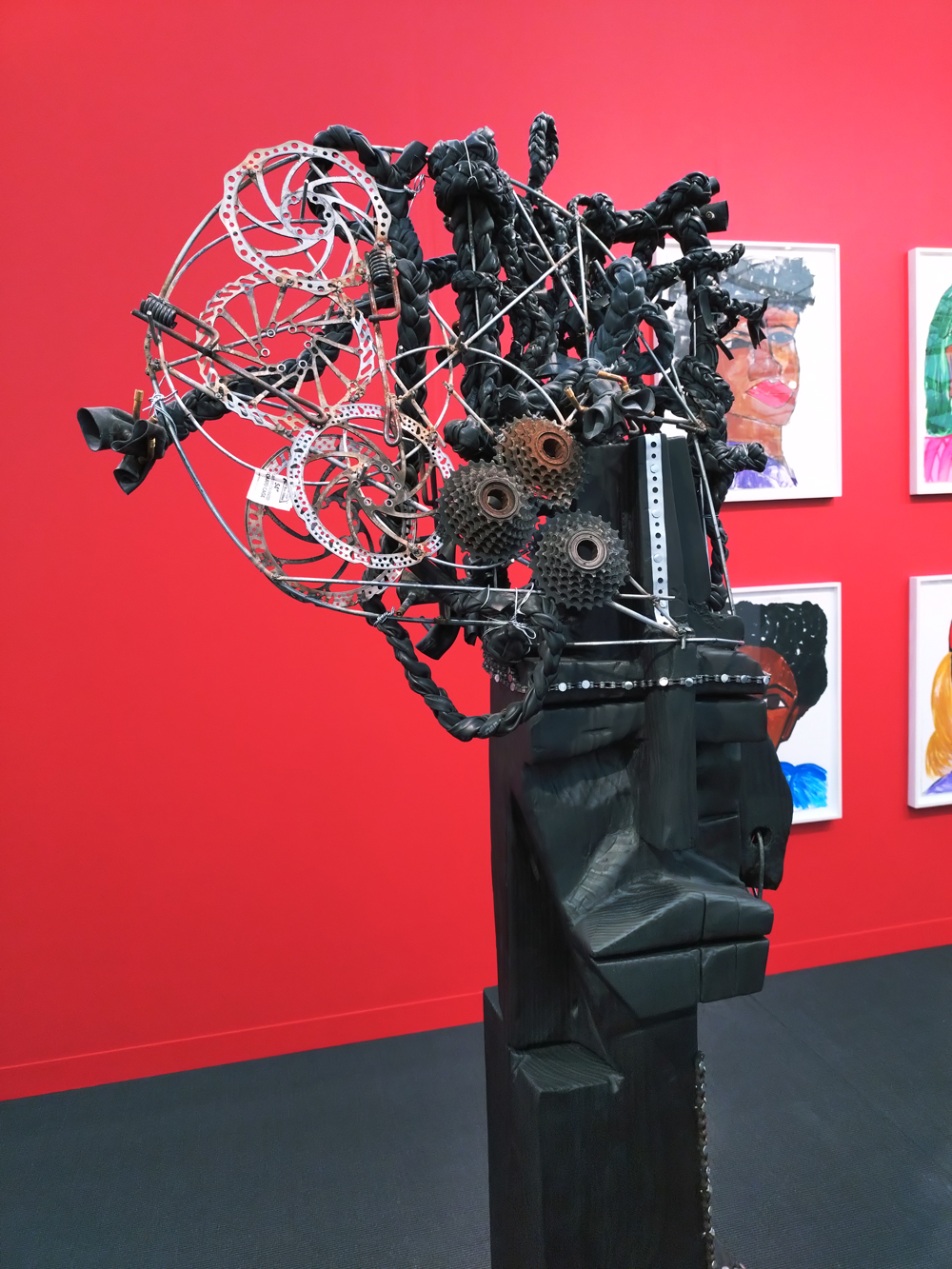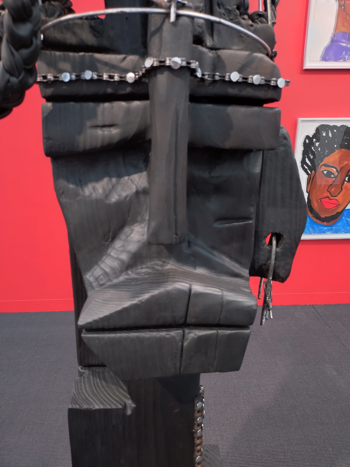 Not sure what those snails crawling over someone train set scenery was about? Must admit a pile of Warhol boxes is still a thrill, oh how I want to touch that Brillo pad box. Stephen Freedman Gallery’s richly red presentation of Ugandan lesbian artist Leilah Babirye is a powerful highlight (Stephen Freedman provided the highlight last year with Jeffrey Gibson and wasn’t it the same gallery who brought us the brilliant Deborah Roberts pieces in 2021?). “Babirye’s multidisciplinary practice transforms everyday materials into objects that address issues surrounding identity, sexuality and human rights. In this body of work, the artist imagines creating a community of queer Ugandans”.