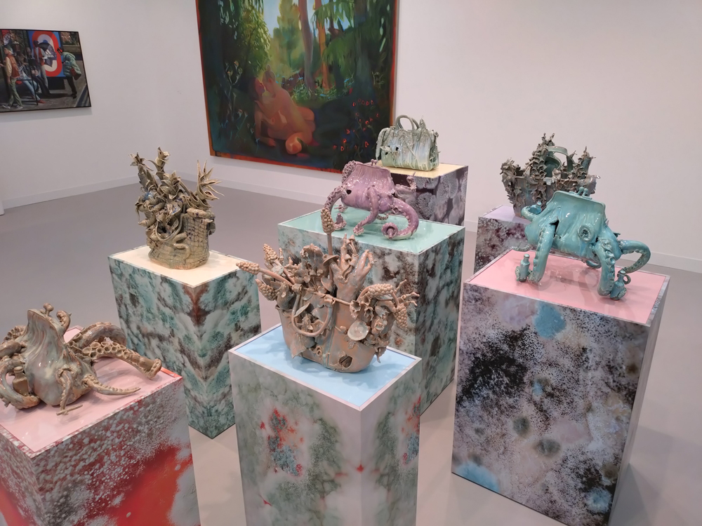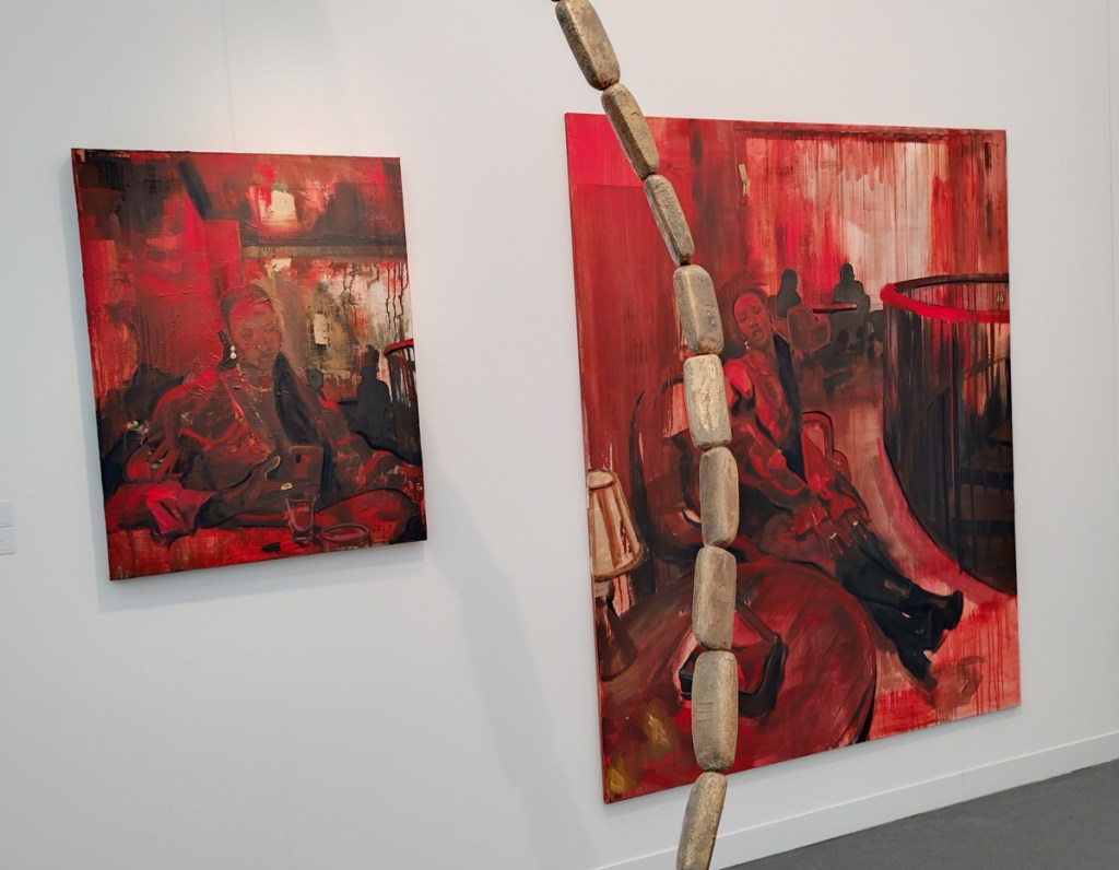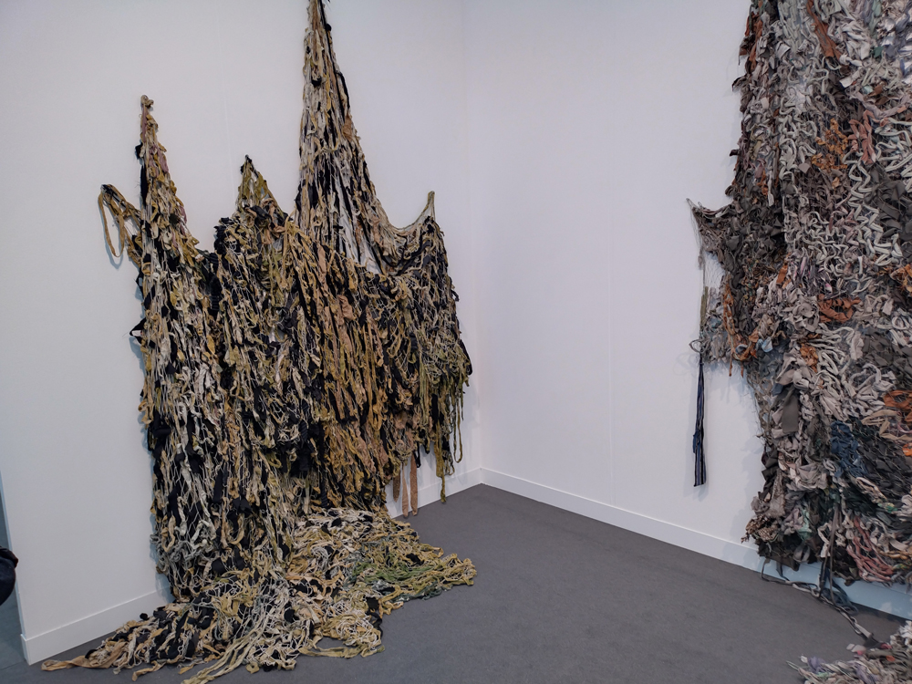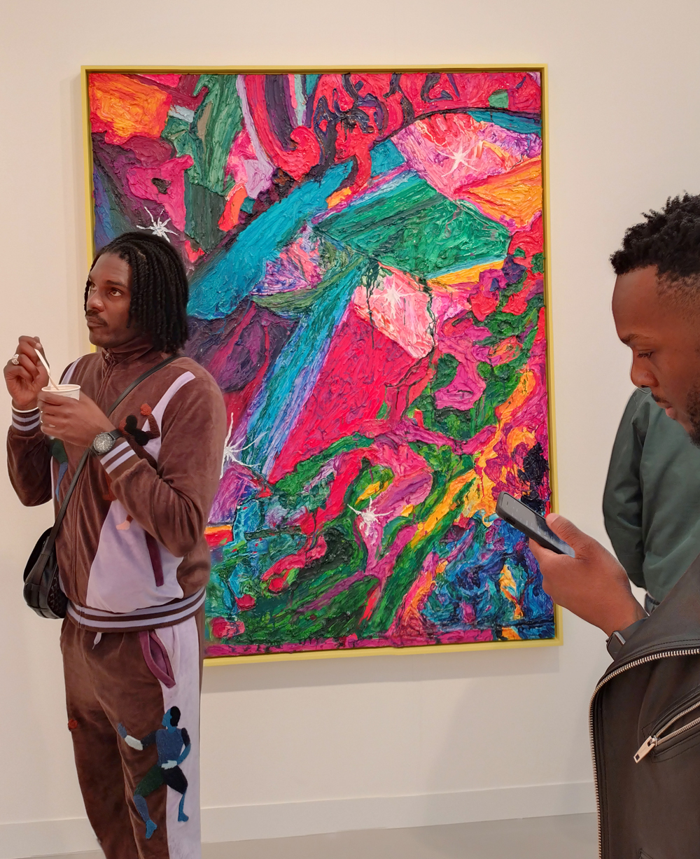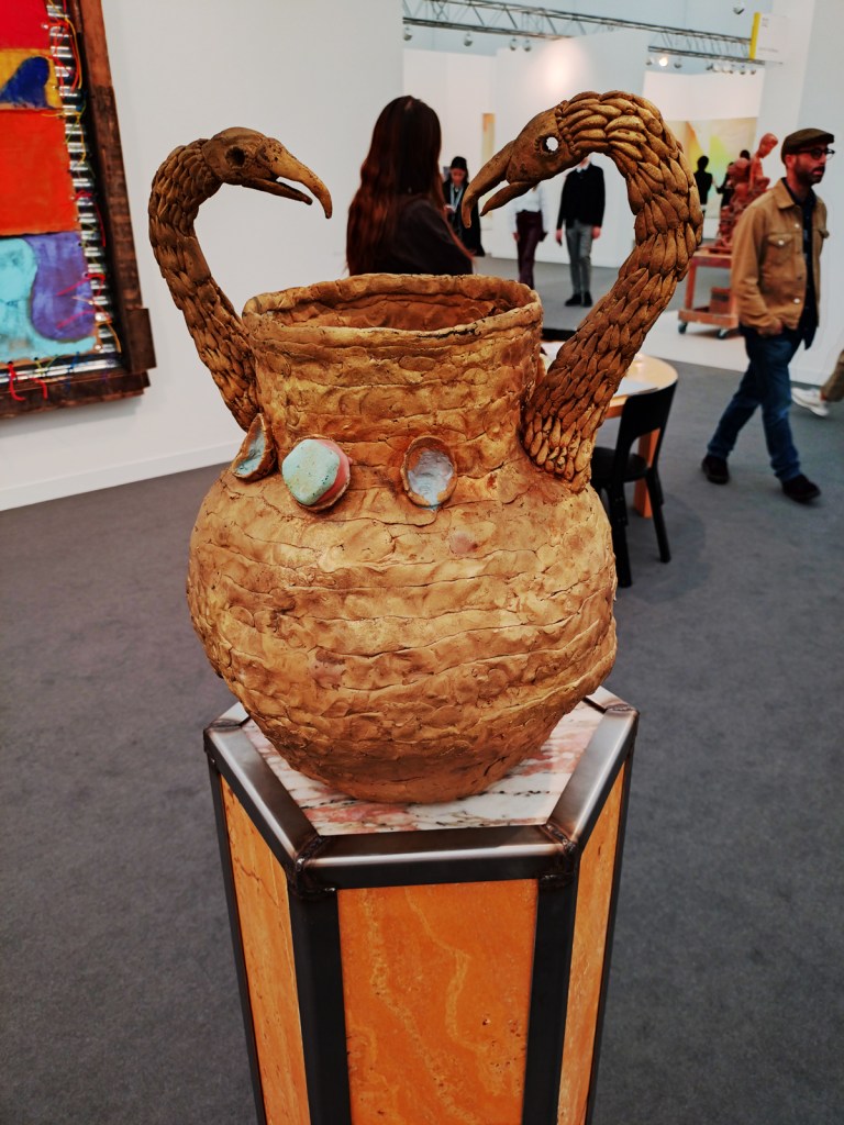 Not sure what those snails crawling over someone train set scenery was about? Must admit a pile of Warhol boxes is still a thrill, oh how I want to touch that Brillo pad box. Stephen Freedman Gallery’s richly red presentation of Ugandan lesbian artist Leilah Babirye is a powerful highlight (Stephen Freedman provided the highlight last year with Jeffrey Gibson and wasn’t it the same gallery who brought us the brilliant Deborah Roberts pieces in 2021?). “Babirye’s multidisciplinary practice transforms everyday materials into objects that address issues surrounding identity, sexuality and human rights. In this body of work, the artist imagines creating a community of queer Ugandans”.