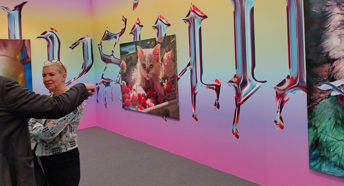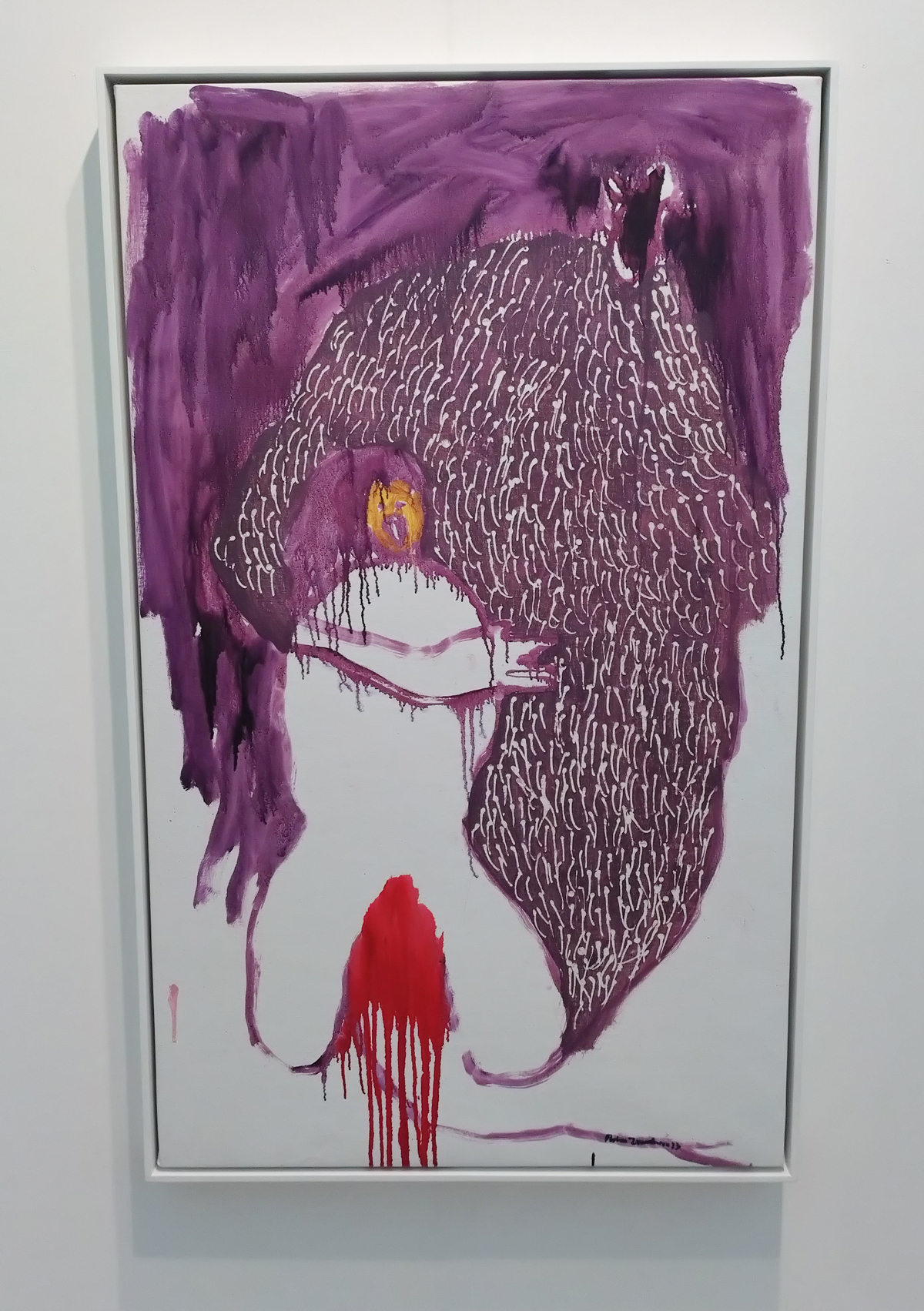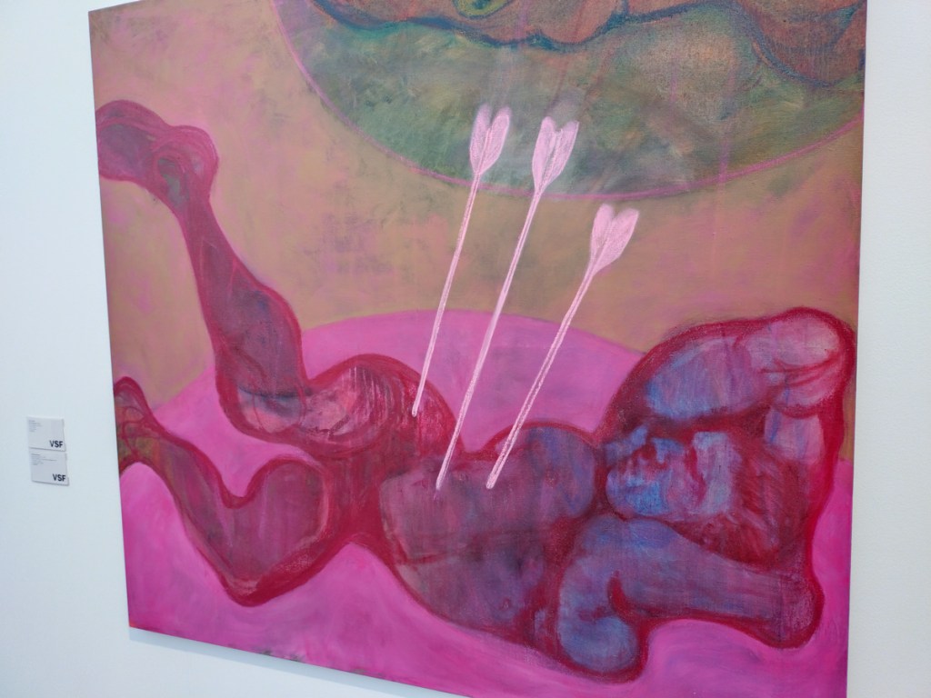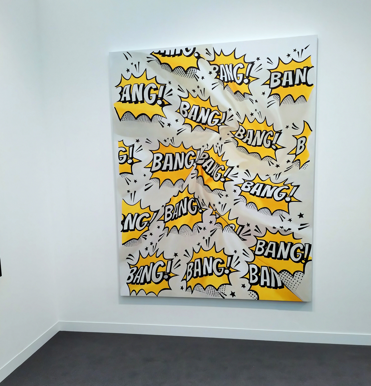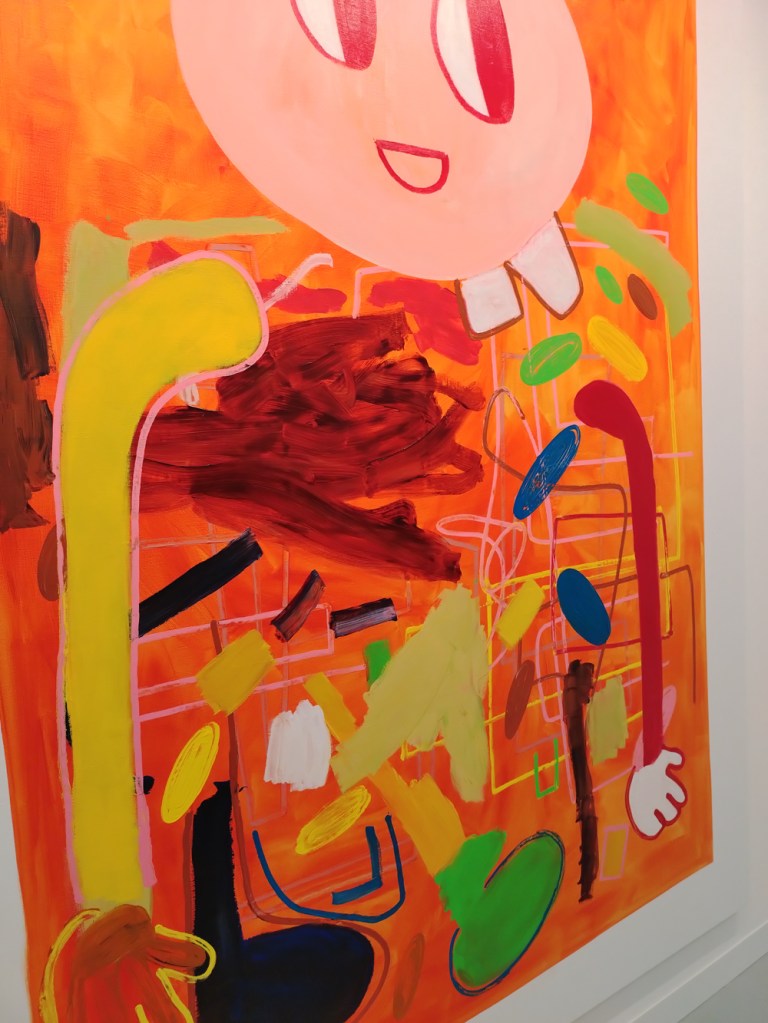 But there was good art, there was a rather radiantly red rather new Sterling Ruby painting spied early on, and almost as if they were mocking Gagosian’s Hirst let down, just beyond the Sterling Ruby painting a rather fine Jadé Fadojutimi piece, a rather big rather imposing piece called Plums Are Not Plums Until You Think About Plums And Realise There Are No Plums Here To be Seen, a big mix of acrylic, pastel, oil, oil bar on a larger than life 500x300cm canvas. Kind of liked the Ishi Glinsky piece for a moment as we walked past it – and you do a lot of just walking past, there is so much in here, it is kind of like speed dating without the time you get when you go speed dating. Did we really just past a neon piece telling us to “Be Amazing”? For gawd sake?! And a canvas covered in pop art style “Bangs!” that I might have been a little embarrassed to have presented in back in my six-form school days? It really is hit and miss in here this year.