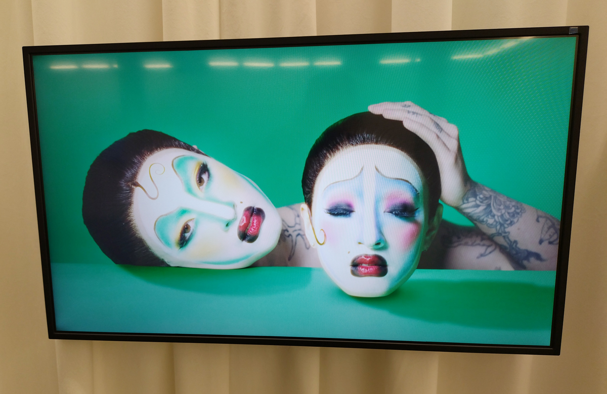 Two new art shows along the Hackney Road right at the end of October and if the truth be told, neither of them demanded a clambering towards the keyboard to urgently bash out words. Canadian born artist Sin Wai Kin‘s portraits at the strangely named Soft Opening gallery, a rather minimal show in the rather substantial gallery and on for a couple of months as well, you kind of wonder why it needs to be on for so long? I expected more, I’m kind of thinking I could just view this on YouTube and yes I know were dealing with that debate about galleries and digital art and gallery wall space and the environment in which you view art, a debate that usually goes on around the corner at Annka Kultys Gallery and I hear all the arguments about how digital art on a monitor hung like a more traditional painting in as valid and maybe even more so (I hear it, I don’t agree with it), but hey, debate aside, it just kind of left me cold, it left me thinking so what? The exhibition left me feeling unengaged and yes, I know the image is slowly moving if you hang around long enough and well, I just expected something more, I expected something, oh I don’t know, just something… Yes, I know I’m just a tired old painter, I can get that this is “the artist’s exploration of storytelling as a means to interrogate binaries and create fantasy narratives, which interrupt normative processes of desire, identification, and objectification. Drawing on personal experiences of existing beyond categories, Sin’s practice pivots around performance, moving image, writing and print to question idealised images, constructed identities and binary conceptions of consciousness” but all I saw was five or six TV sized digital screens hung on the gallery wall and some “nice” enough images that really didn’t make me want to engage or investigate that much further that that initial couple of minutes looking at each one.,.
