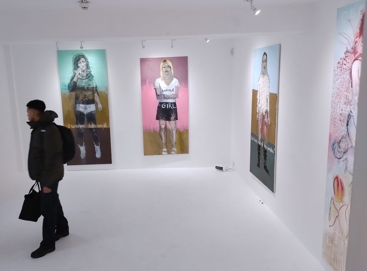 Gina Birch, No One’s Little Girl at Gallery 46, Whitechapel, East London, December 2023 – Waited for the right moment to go see this one, the last very painterly Gina Birch show at this same rather beautiful space back during Frieze Week in October 2022 was rewarding in a rather defiantly strong punk-fuelled way (a little more than just punk-fuelled actually, there’s far more to Gina Birch than just her punk rock past). I imagine the opening night was busy, I imagine the days when talks or performances have been going on have been busy, Gina has a growing reputation as a serious painter, she is of course well known and much loved as a key part of challenging feminist punk band The Raincoats.