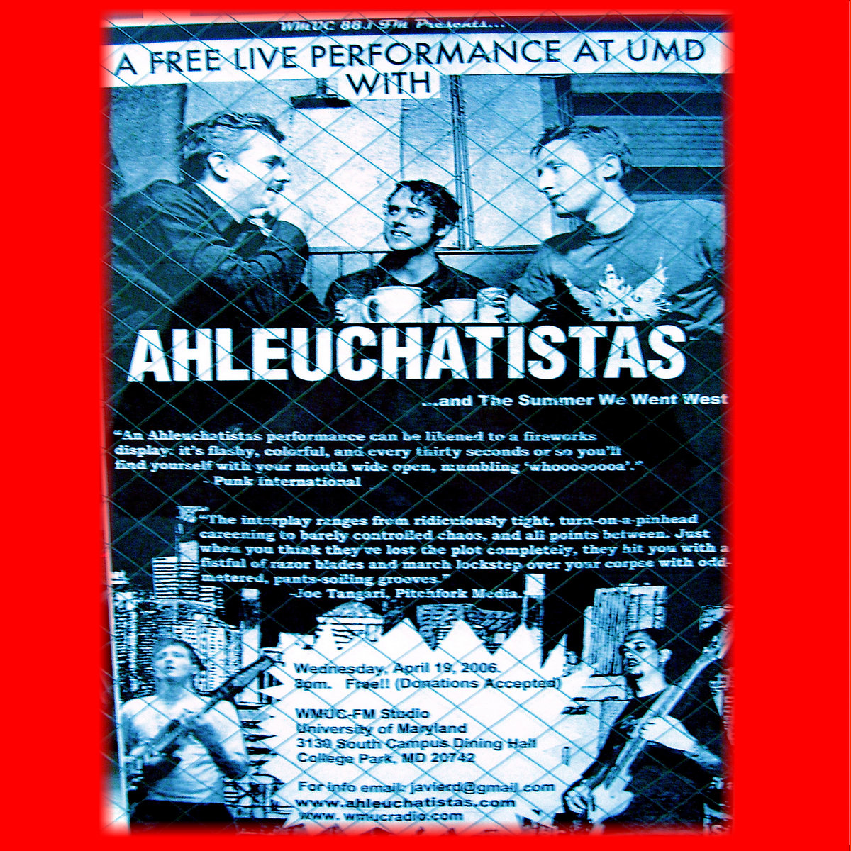 Things started moving very fast; their amazing shows were finally gaining them the attention they 100% deserved. And Cuneiform had a really good promo team in those days, led by Joyce (now heading The Music Outpost–Publicity), and that helped them too. Javier Diaz, who set up the 2006 WUMC show, came on board around this time, first as an intern and then as promo team staff. I don’t remember much about the tour that the poster included in this package came from, but Ahleuchatistas were definitely leaving the East coast for the first time. Was that the same tour where they played SXSW and even made it to California? I don’t remember.