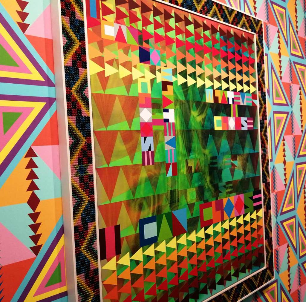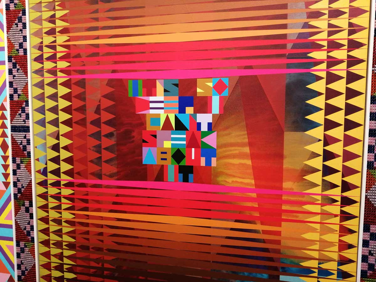 ⁠”The artist is renowned for his use of geometric abstraction, inspired by North American Indigenous aesthetics and craft. Gibson incorporates text in his own version of Victorian era Native-made objects, which were originally created to appeal to the taste and aesthetics of the period. By embracing these objects that were once viewed as kitsch, Gibson acknowledges their significance and contemporary resonance. Find more here