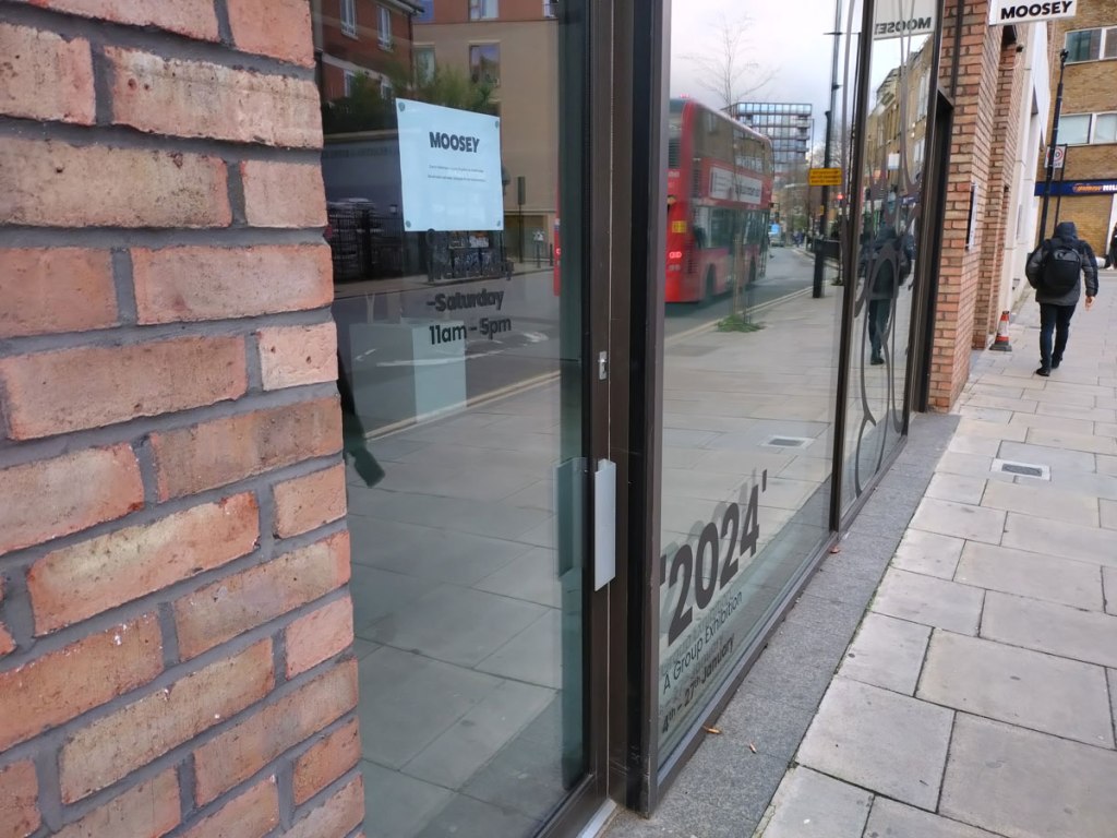 It does feel like art hasn’t quite made it into 2024 yet,went to see the new group show at Moosey’s Hoxton space today, it supposedly opened last Thursday, two days in and they’ve got a sign on their big glass door that reads due to maintenance issues the gallery is closed today or something like that, kind of sums up the six days that have made up 2024 so far, they promise to be back next week, maybe that’s when art starts in terms of London? Maybe next week, or this week now, for this is the Monday of the second week of the year.
