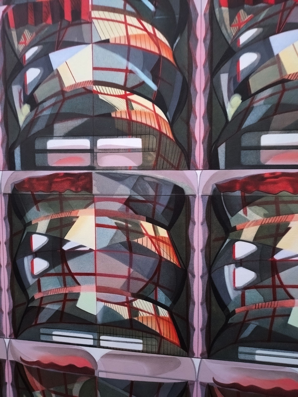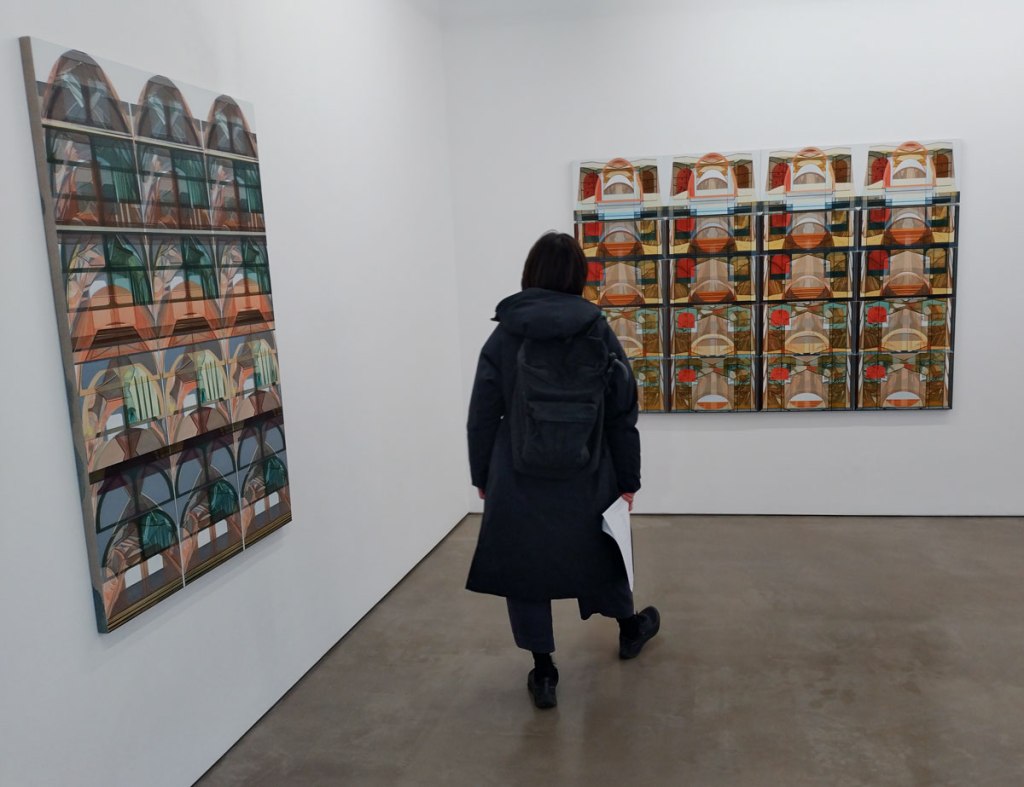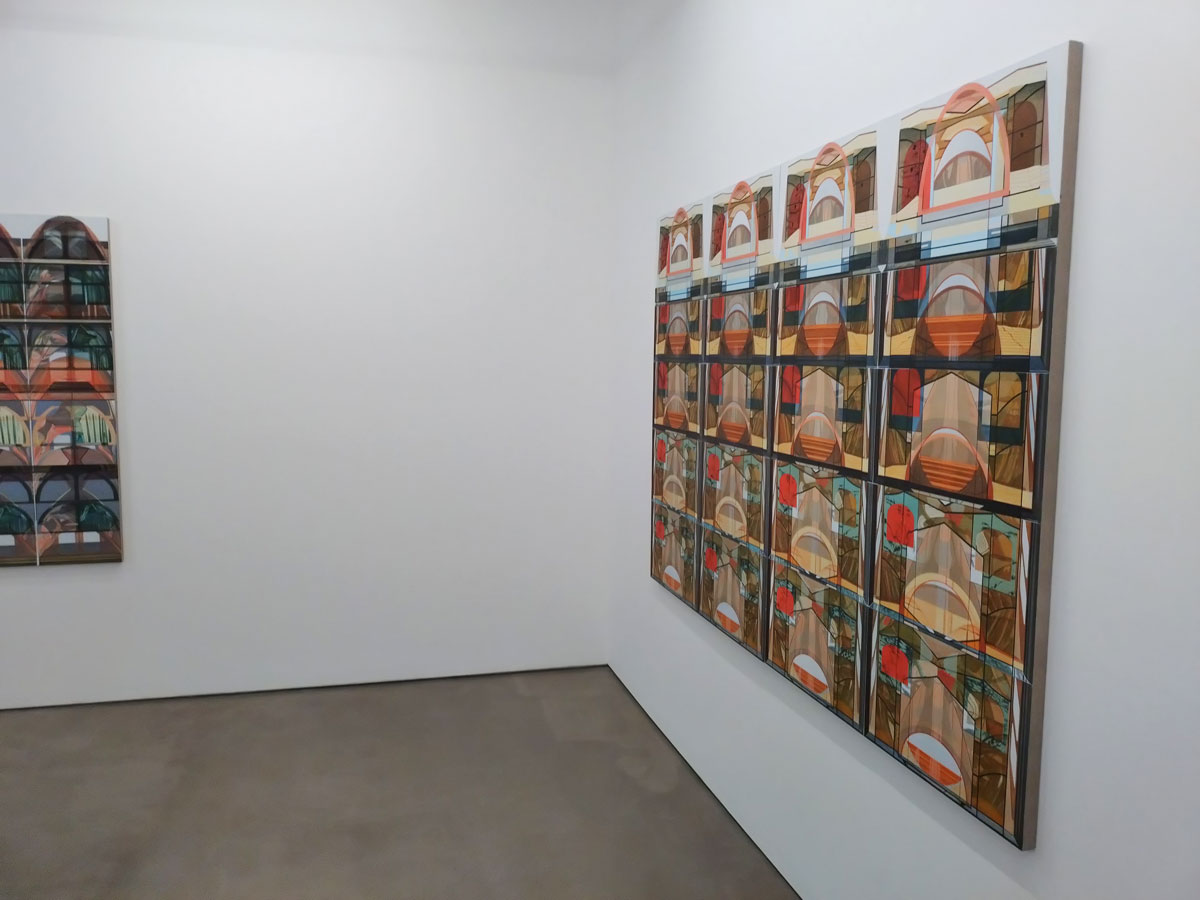 I saw architecture investigated, architecture as repeat, architecture as pattern, I didn’t see fractal-like flavours and yes we are dancing around the buildings again and I really wasn’t feeling a need to decode anything rather than just enjoy the shapes, the repeats, the stained glass of the tents, the almost textile designs and when you do look further into the structure, the painterly movement within the layers of the work, the almost abstraction of it all. These are pieces that draw you in, that demand your time, you contemplation, your enjoyment and ultimately the challenge of Michael Andrew Page and his art. I rather liked this show, not part of Condo but it made the exploring on Condo (and a subsequent return) worth it. (sw)