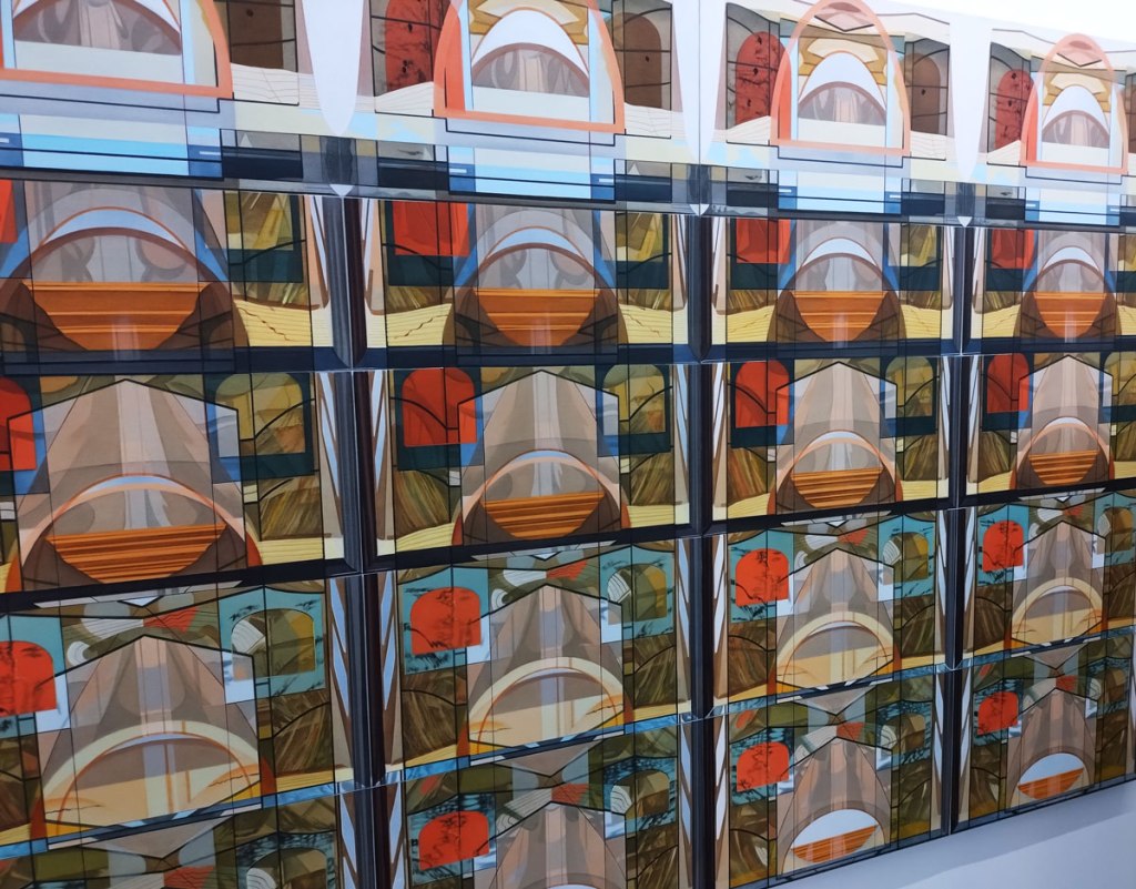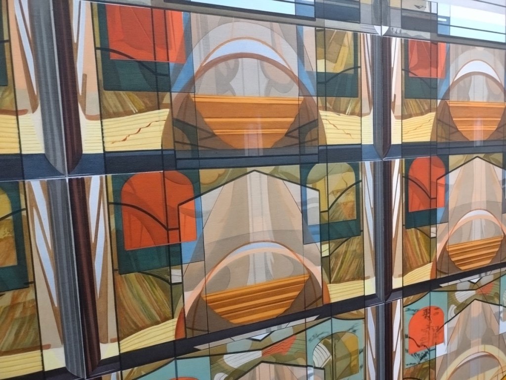 The Michael Andrew Page exhibition is, as that guy from No Parking might say, ‘intriguing’, and yes that can be a catch-all cop-out of a thing to say, but in this case it really is intriguing. Tents as stained glass? It isn’t immediately obvious, but then when it does suddenly click then it very much is.