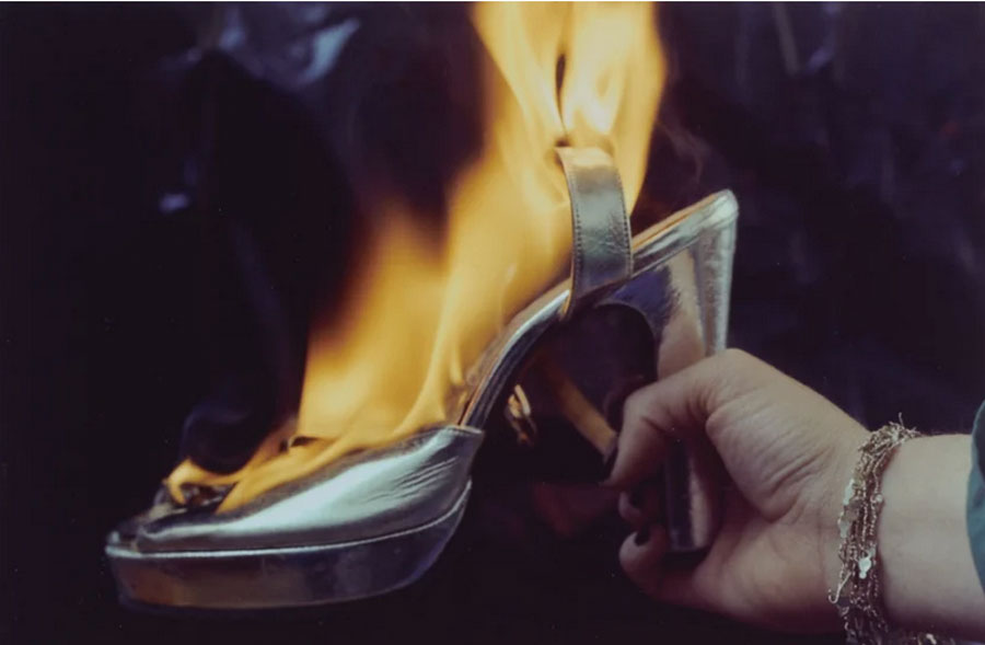 Typically featuring red nail varnished hands performing various actions, the works demand that we read the unfolding actions from a woman protagonists’ perspective; a radical rejoinder to a visual culture built on the male gaze. They are however anything but didactic, leaving room for visceral response and multiple interpretations. Images show stiletto shoes on fire, a wall being demolished, and grease covered hands caressing motor parts, in what can be read as incisive political critiques of misogyny, capitalism’s deployment of gender as a facet of consumer society, but also as an exploration of the deep fears and anxieties that underwrite embattled relationships between men and women, and women’s nascent self-realisation”.