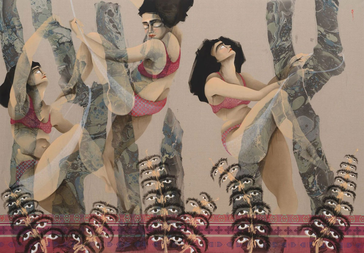 1: Hayv Kahraman – She has no name at Pilar Corrias – 12th April until  25th May 2024 – – This one feels a little more important than most of the others. “Pilar Corrias is delighted to present She has no name, a solo exhibition of paintings and works on paper by Hayv Kahraman at its Conduit Street gallery. Reflecting on her early experiences as an Iraqi refugee in Sweden, Kahraman’s new body of work examines the ways in which colonial practices in the field of botany continue to perpetuate hierarchical structures and gendered metaphors within the natural world and, by extension, sociopolitical contexts”.