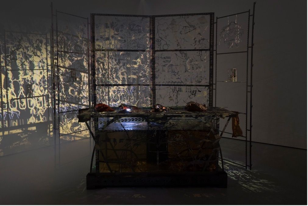 “Rooted in her research around prometheus narratives in gothic fiction and sci-fi, her latest body of work combines an assortment of mechanical and organic materials taking inspiration from how biomimicry and biotechnology in architecture blurs the lines between living and non-living. The title references Brill’s interest in the dual seduction and fear around transformative technologies, as amber lights can be both a warning and a calming, protective presence. Amber has further significance as the resin holds the non-living in stasis, not allowing organisms to decompose, leading to mythologies around it holding the essence of life. Brill uses microscopic images of ancient plant fragments and fossilised insects found inside amber in the designs of her sculptures as well as incorporating pine resin and amber in the materials.