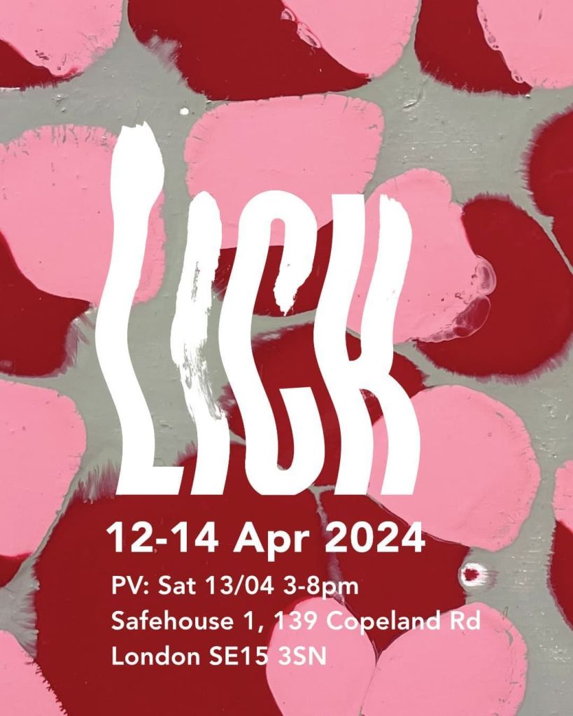 5: Lick at Safehouse 1 & 2 – 12th until 14th April 2024 – A pop-up group show of new work by twenty-two TURPS and MASS alumni. “Held in a derelict Victorian building, LICK invites art-lovers to taste and savour the content of the artworks in a pop-up show. Visitors to LICK will discover new work by 22 acclaimed international artists, painters and sculptors. The exhibiting artists – a collective from Turps Art School, London have arranged this group show to celebrate the diversity of contemporary painting and sculptural practice”. Never quite worked out Turps (and their fees) but they do seem to come up with some interetesting art/artists and Safehouse is a rather wonderful space. “Don’t miss it, Lick it! A mouth-watering collection of new work from highly rated talent to watch. Stop dribbling, we’ll see you there” is what they say.  Artists involved:  Vivienne Baker, Joanne Boyle, Alison Berry, Hermione Carline Hunter, Eugenia Cuellar, Peter Driver, Jason Gregory, Janine Hall, Caitlin Heffernan, Giuseppe Iozzi, Nick Ivins, Beata Kozlowska, CD Lewis, Blandine Martin, Elaine McCracken, Jane Merriman, Zelga Miller, Susan Montgomery, Sarah Praill, Helen Scalway, Djuro Selec, Victoria Snazell. here’s their Instagram feed.